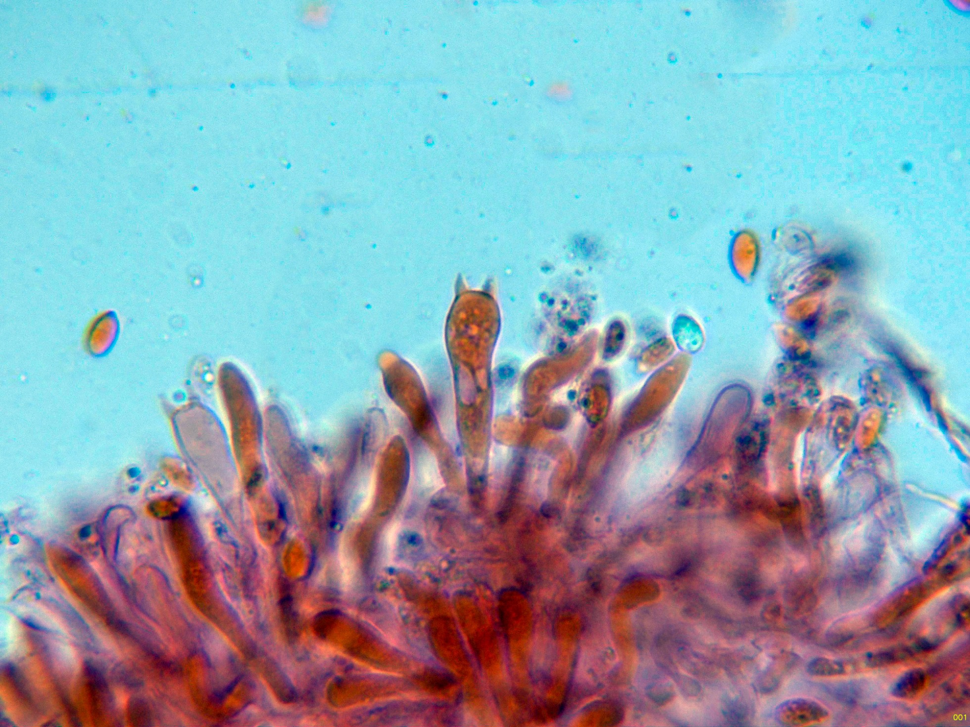 Mycetinis scorodonius (Fr.) A.W. Wilson & Desjardin. Microscopía.