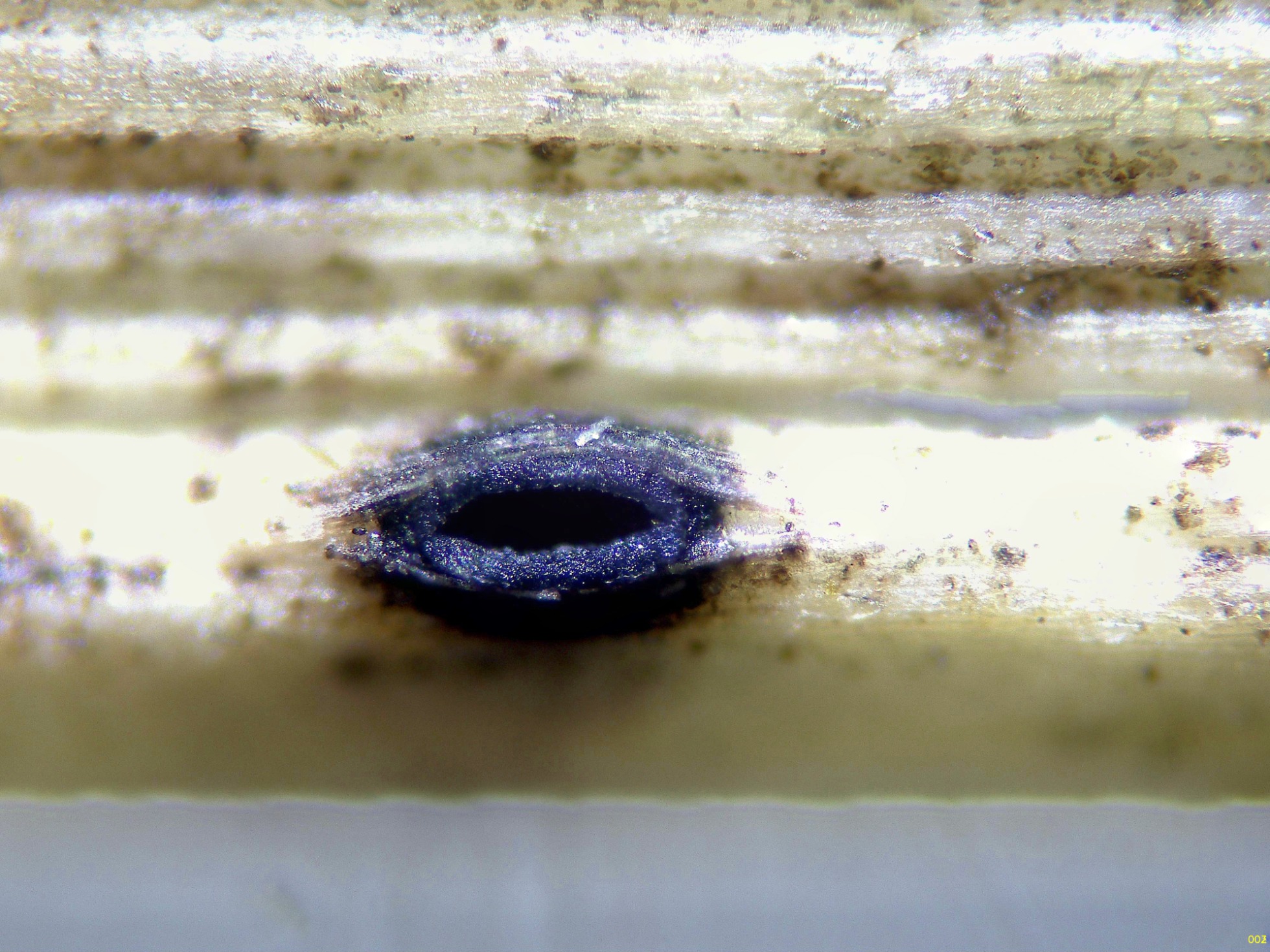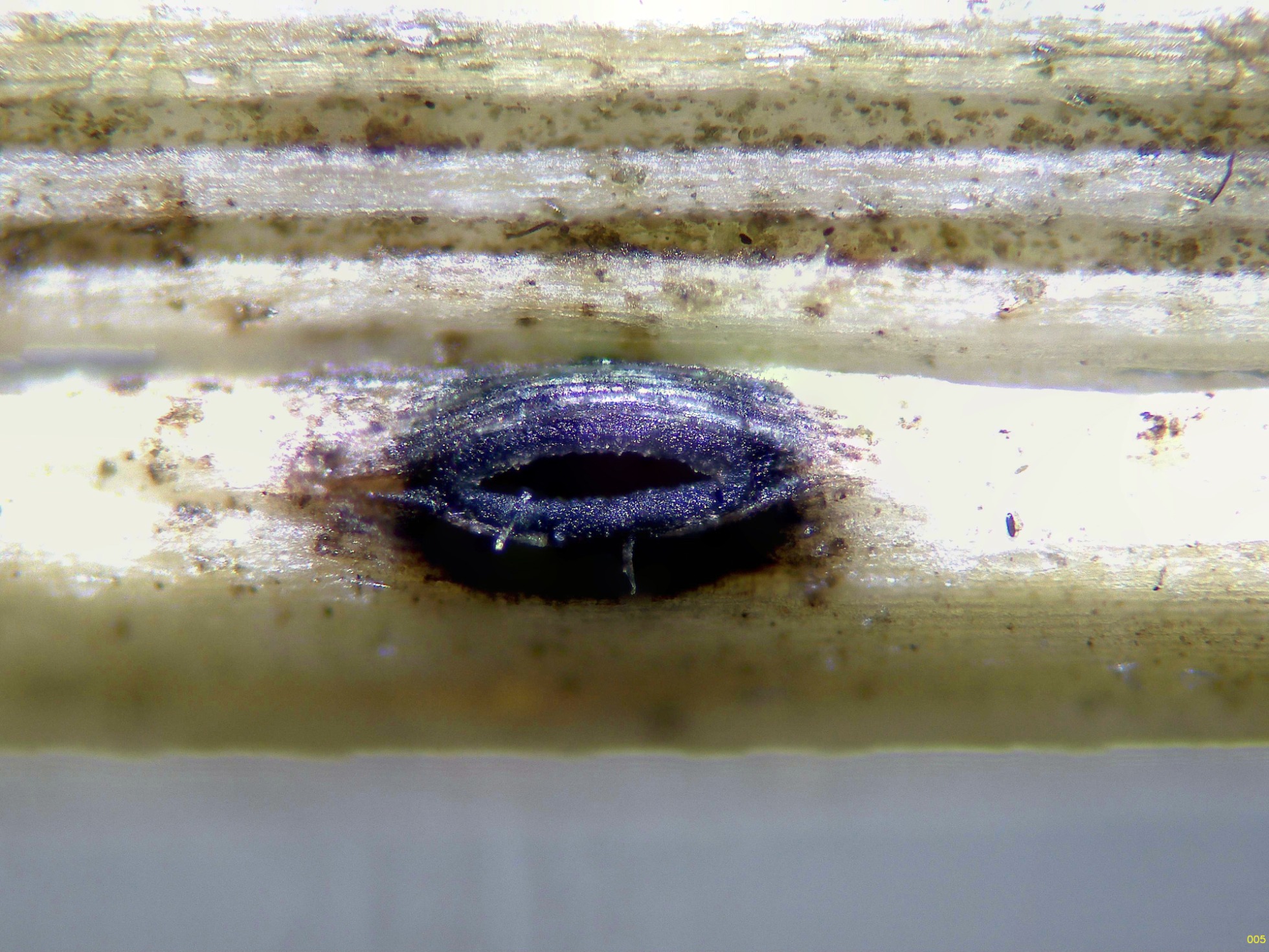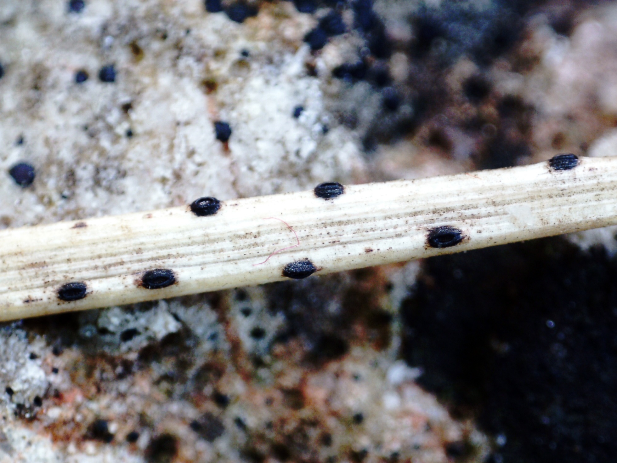 Un nuevo Lophodermium para mí, localizado y fotografiado el 27 de octubre pasado, en esta ocasión sabre unos tallos en descomposición de la hierba del suelo que sirve de pasto para el ganado, el: