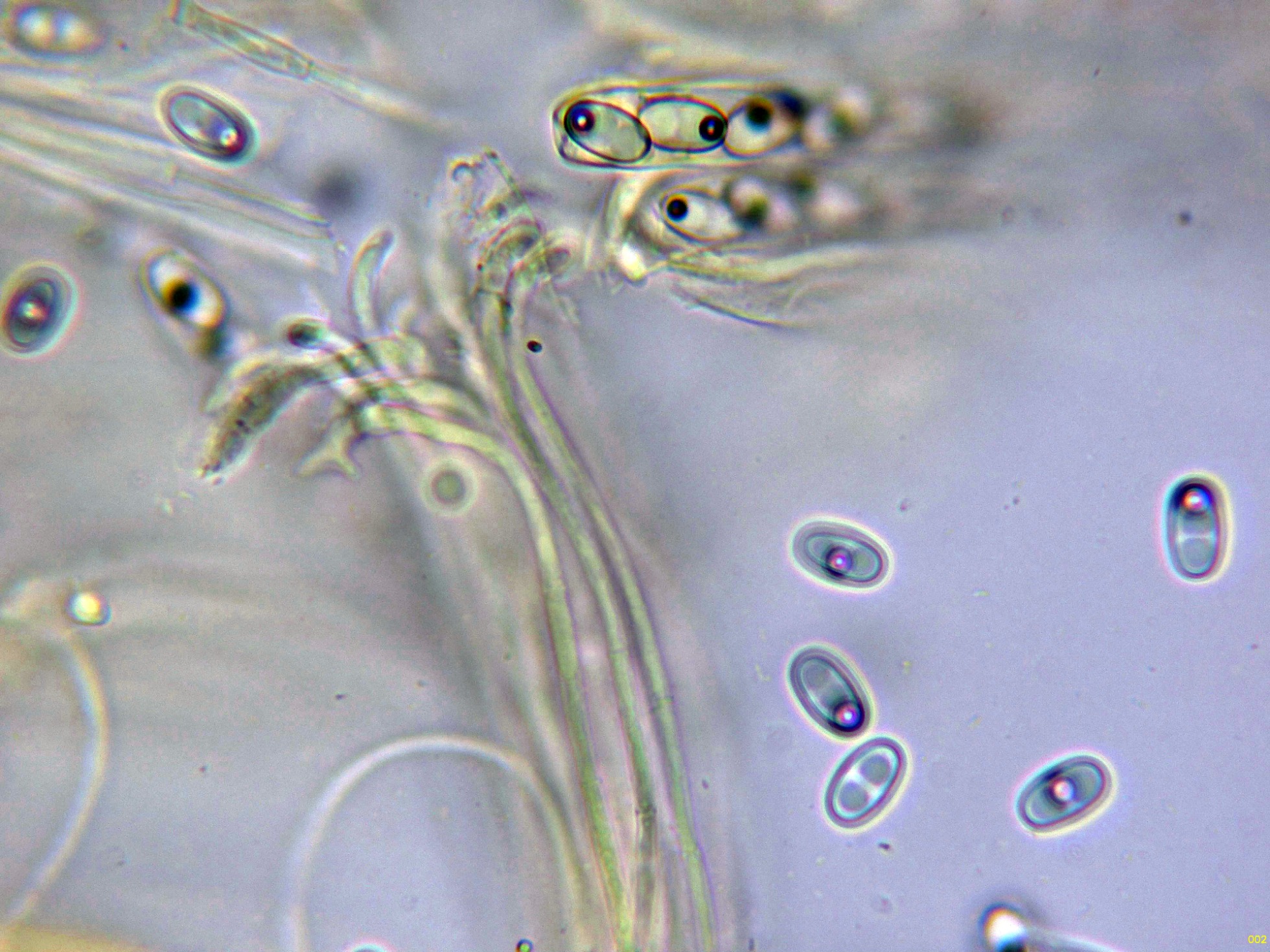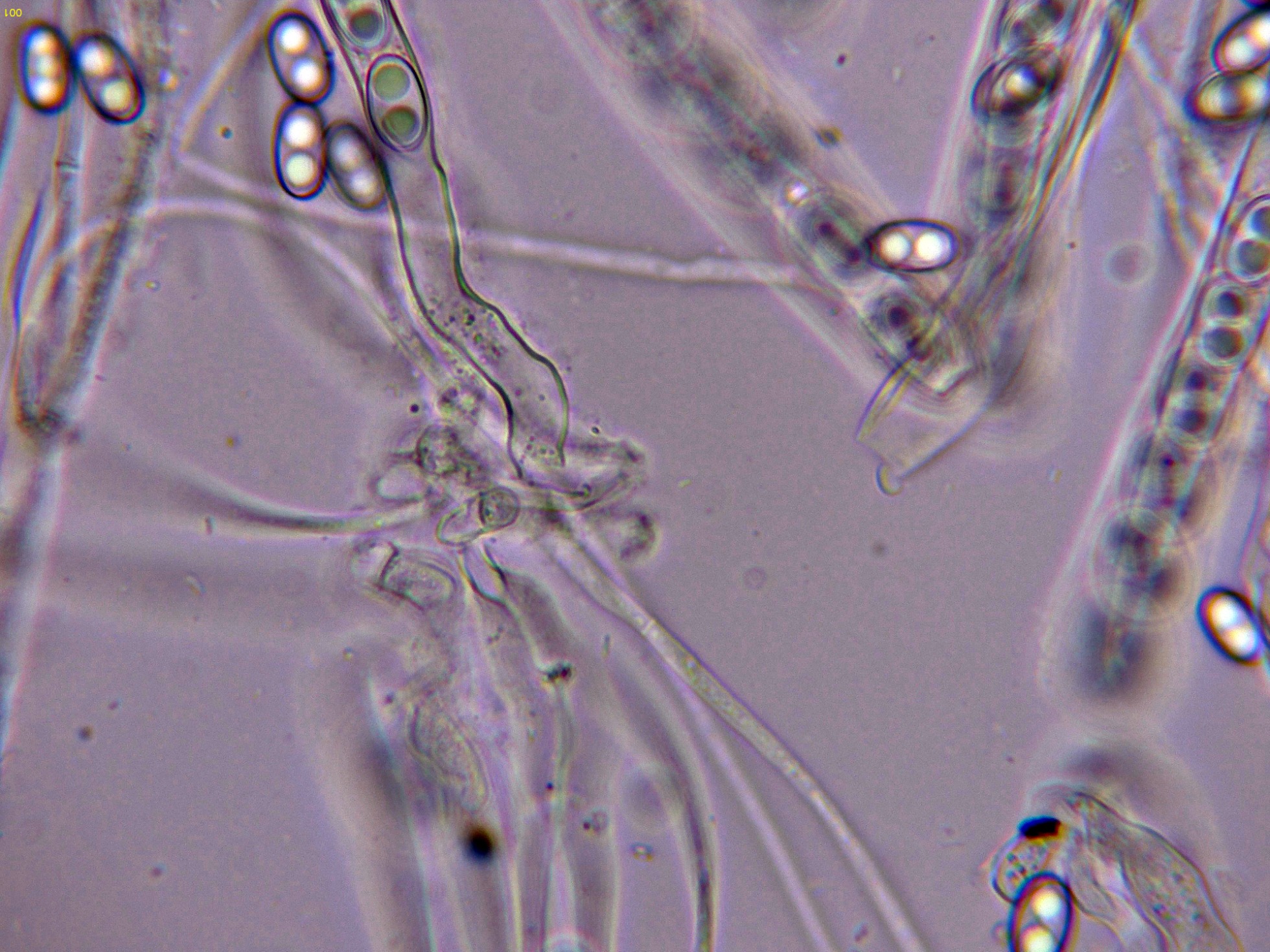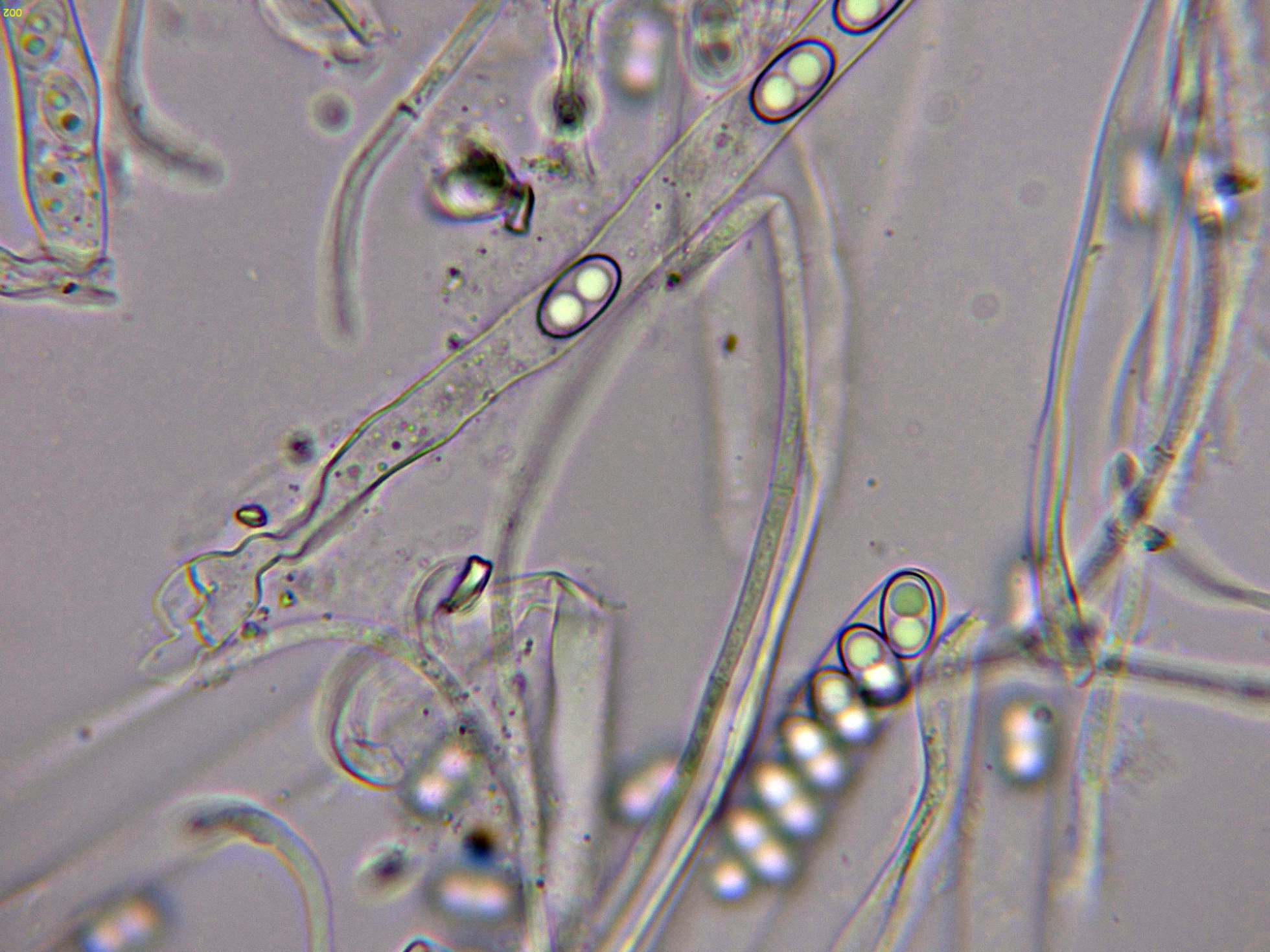Las hifas del excípulo en agua: