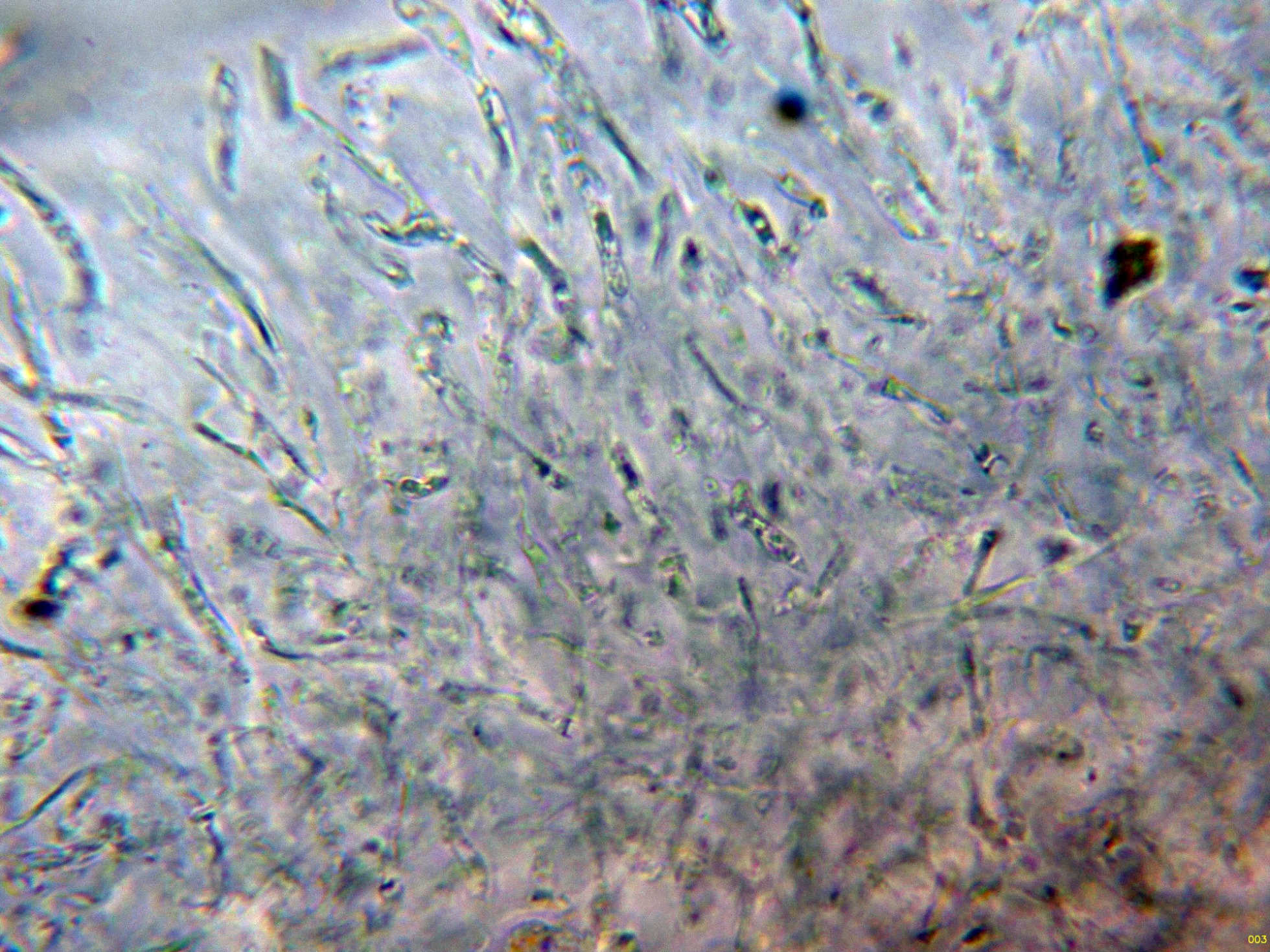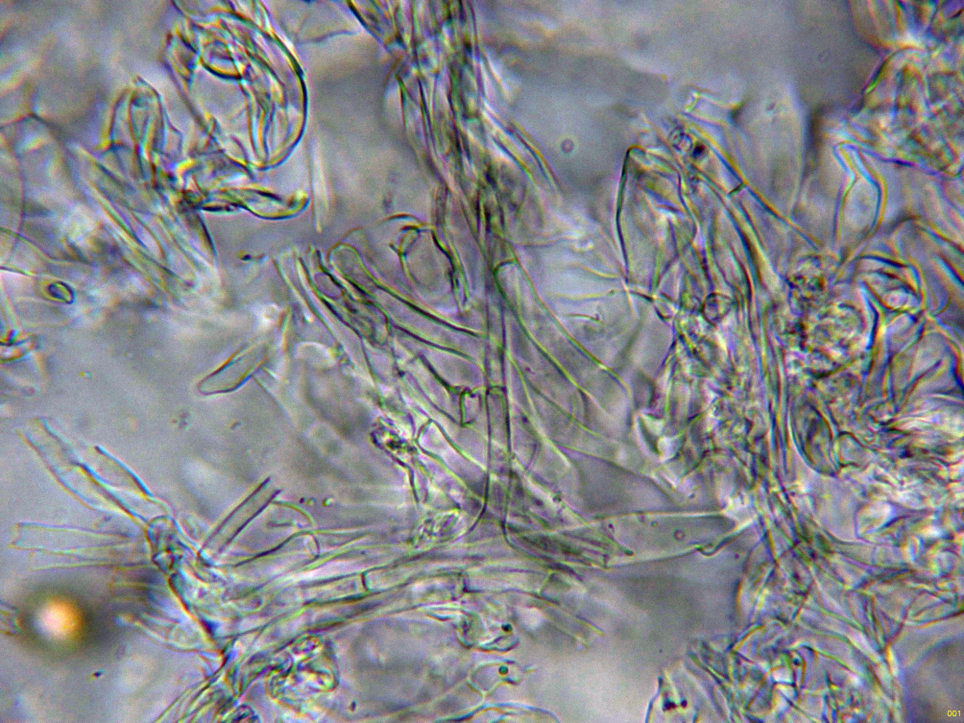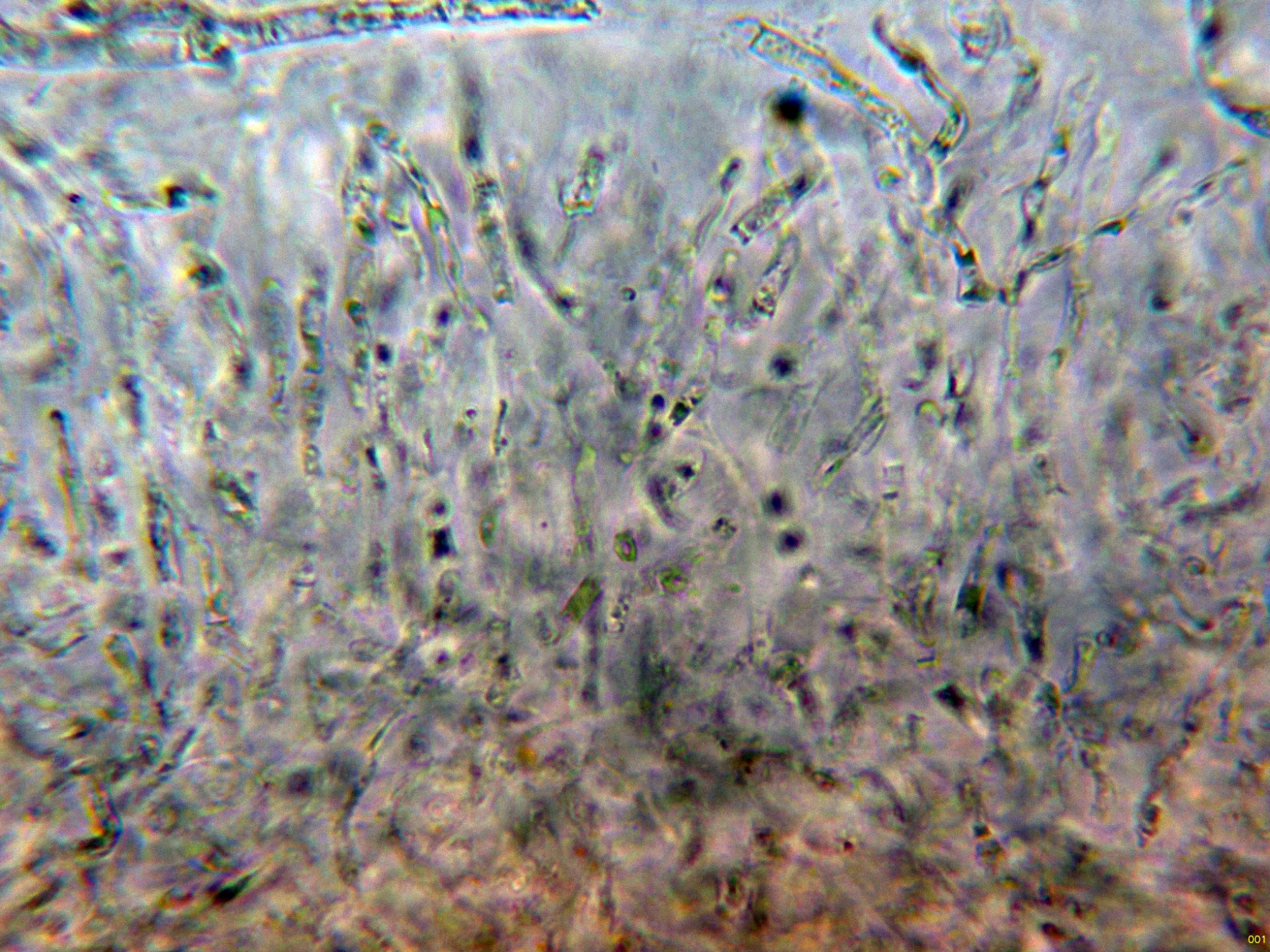 Suprapellis ligeramente gelificada, con hifas terminales pigmentadas y septadas a modo de dermatocistidios:
