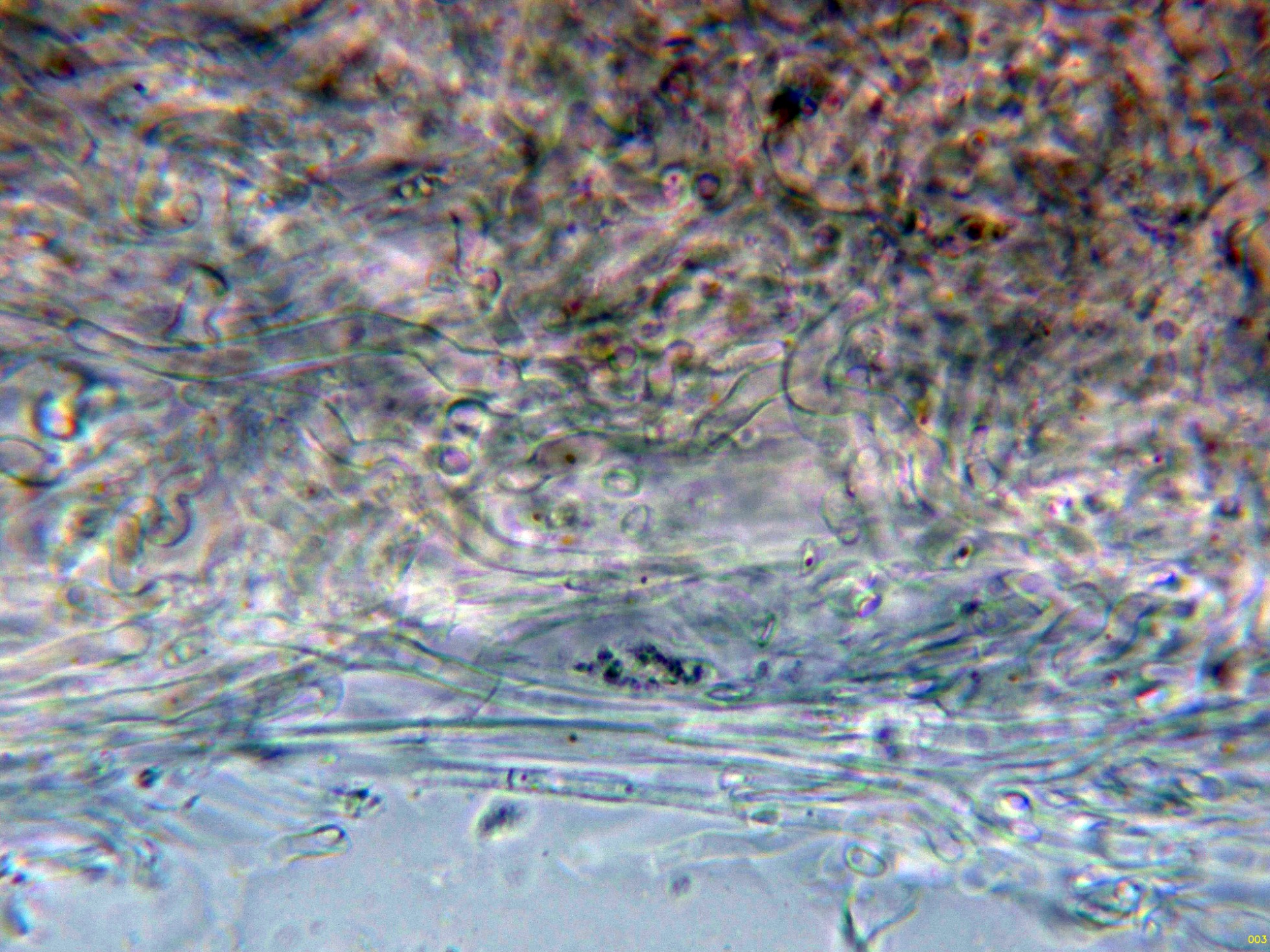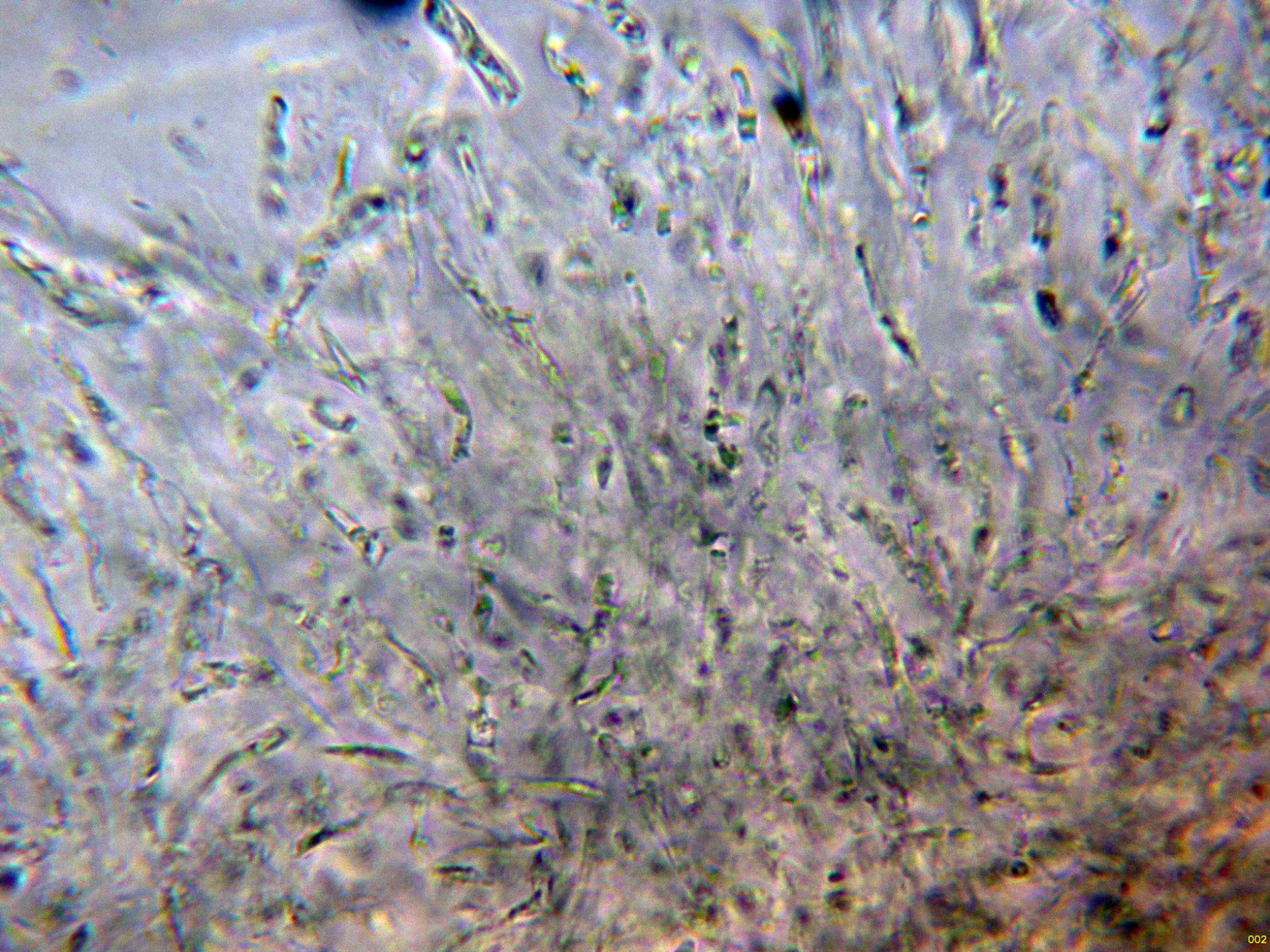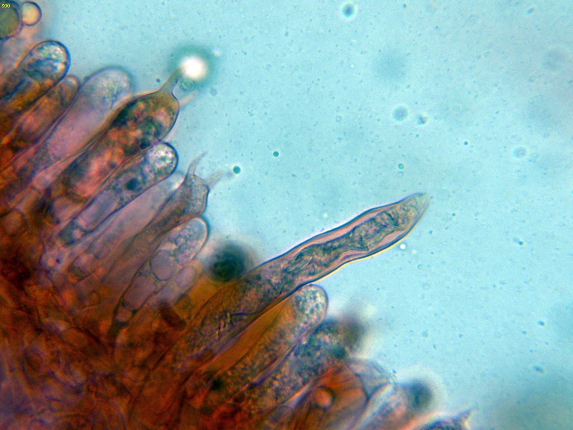 Suprapellis ligeramente gelificada, con hifas terminales pigmentadas y septadas a modo de dermatocistidios: