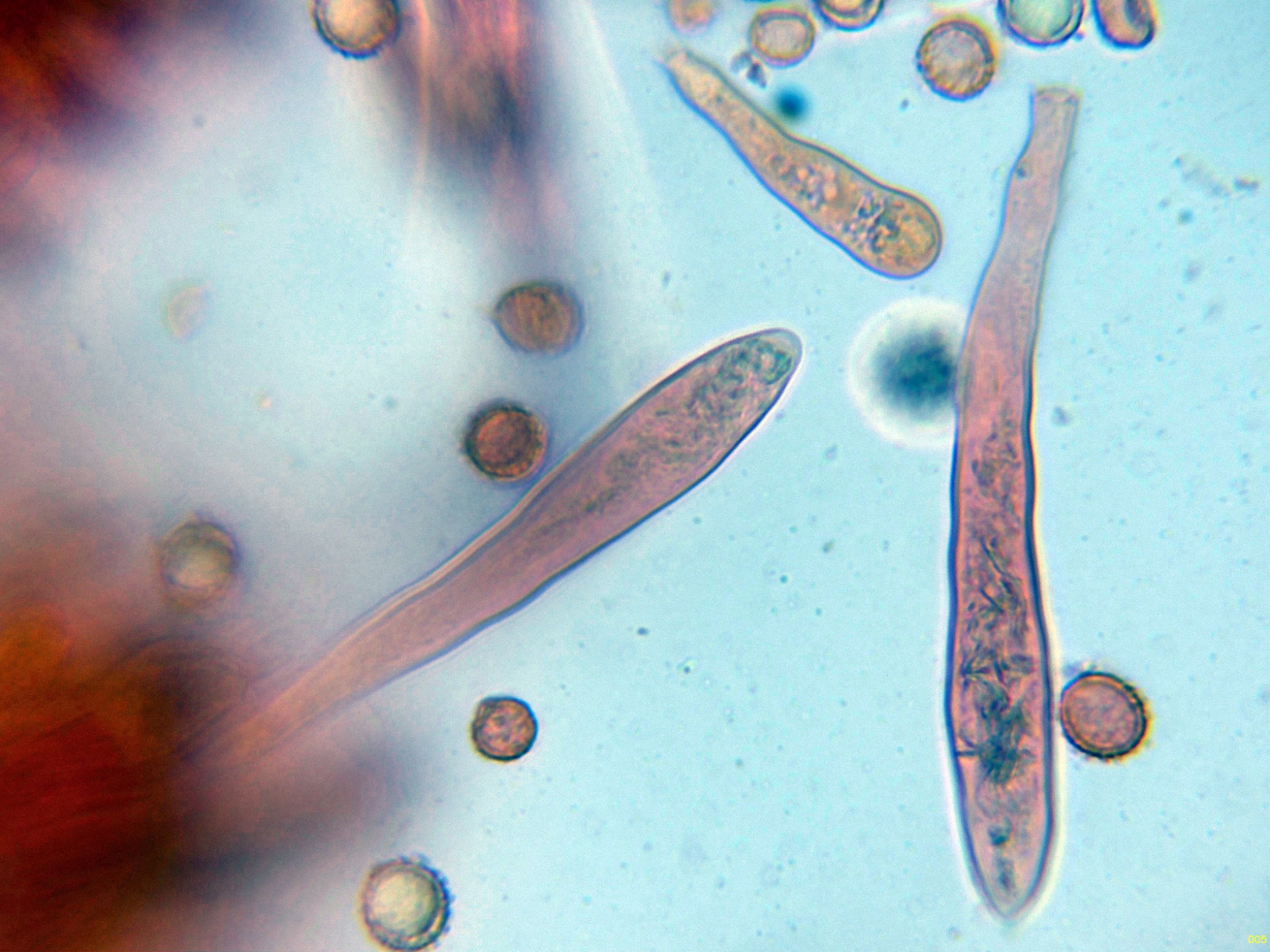Por debajo de estas ya se pueden observar abundantes esferocistos: