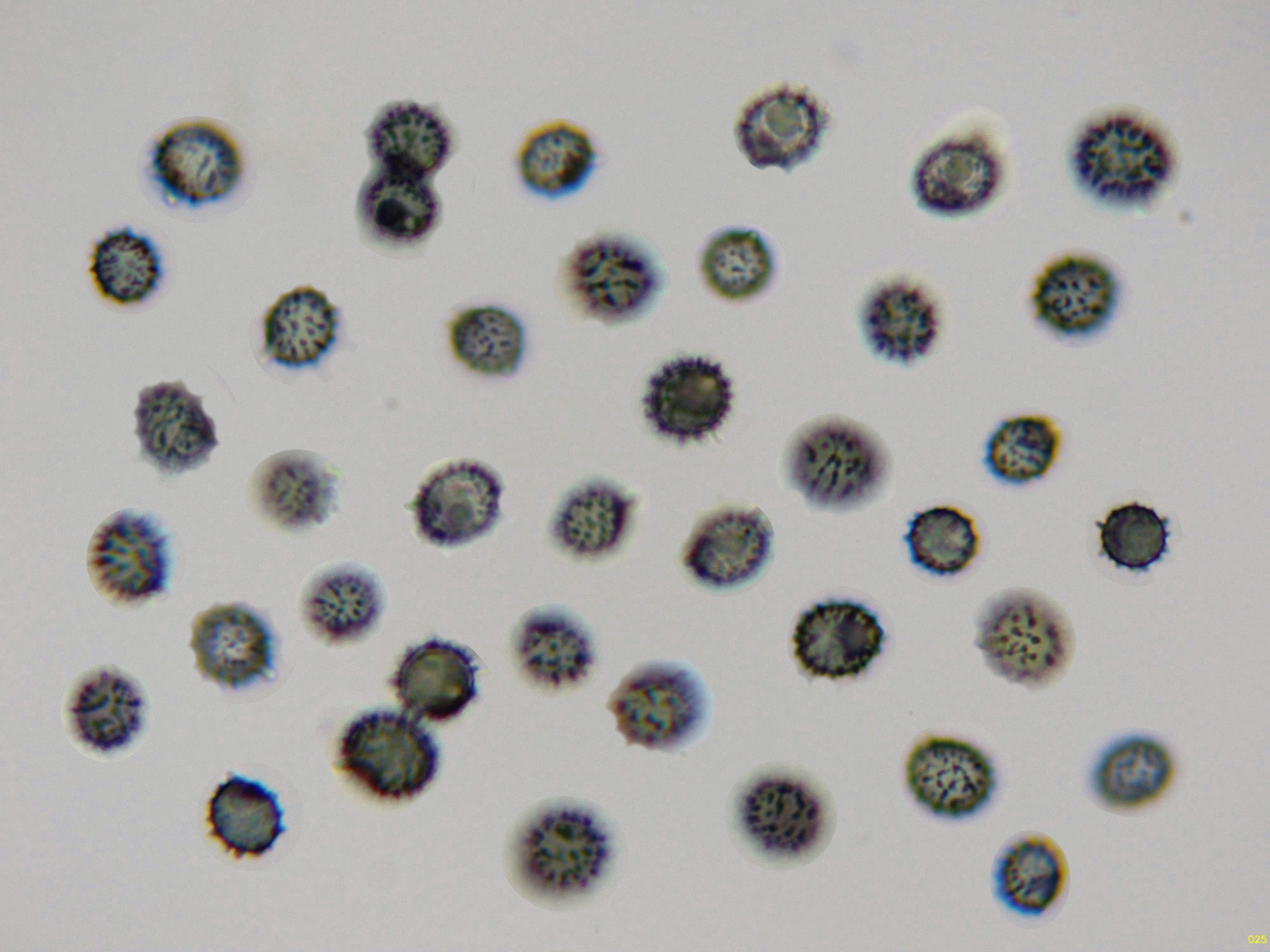 Estas esporas con unas medidas sin contar la ornamentación de: