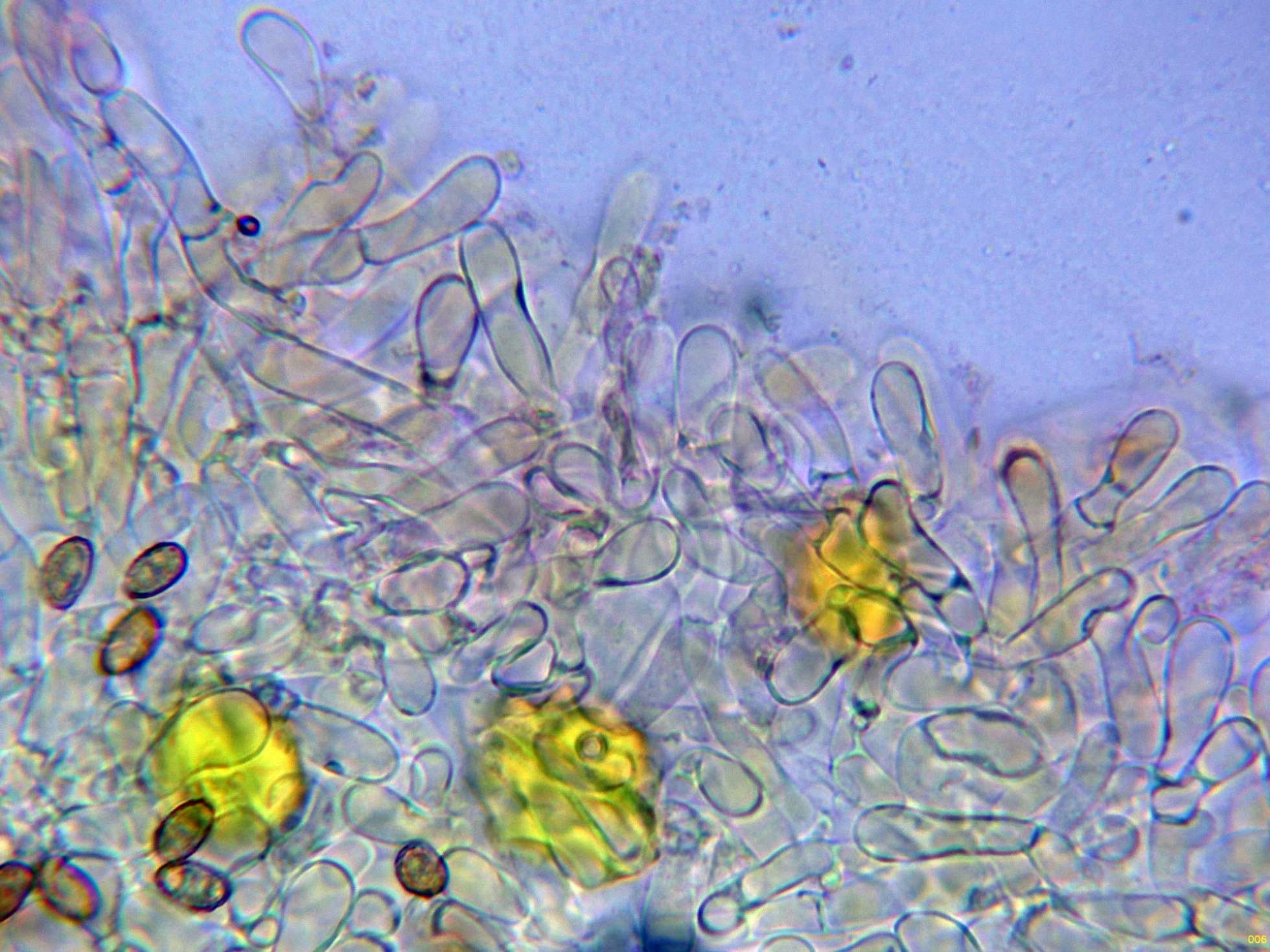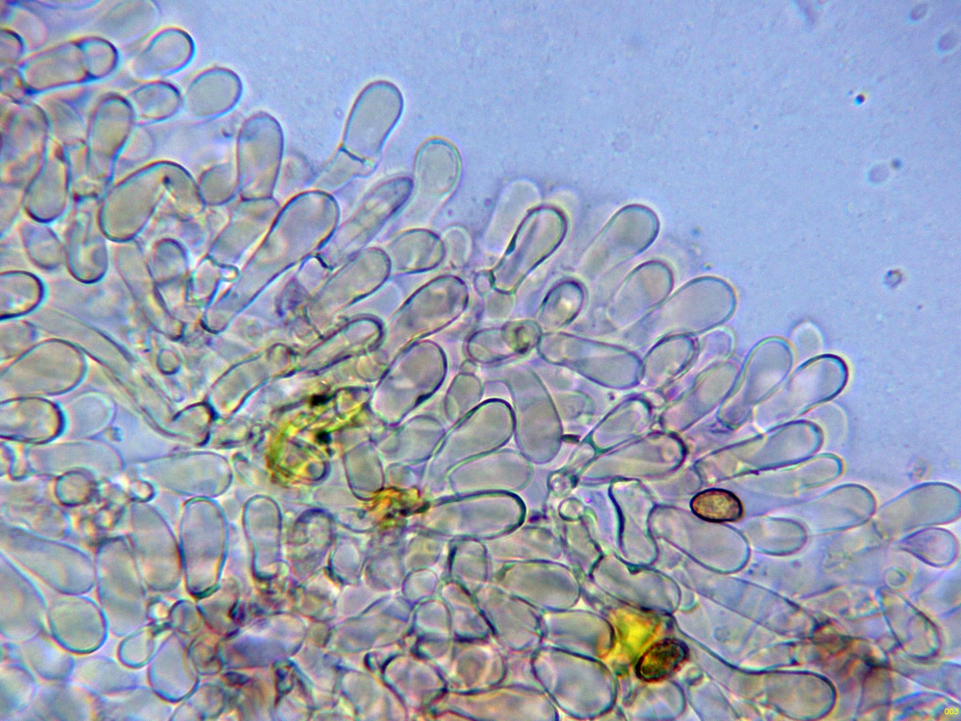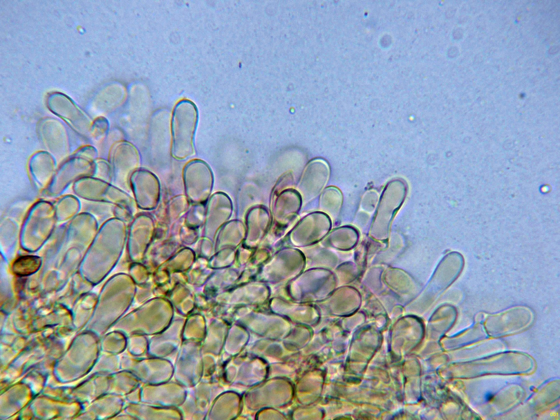 En la arista laminar a destacar una gran cantidad de hifas estériles, con un tamaño muy parecido a los basidios: