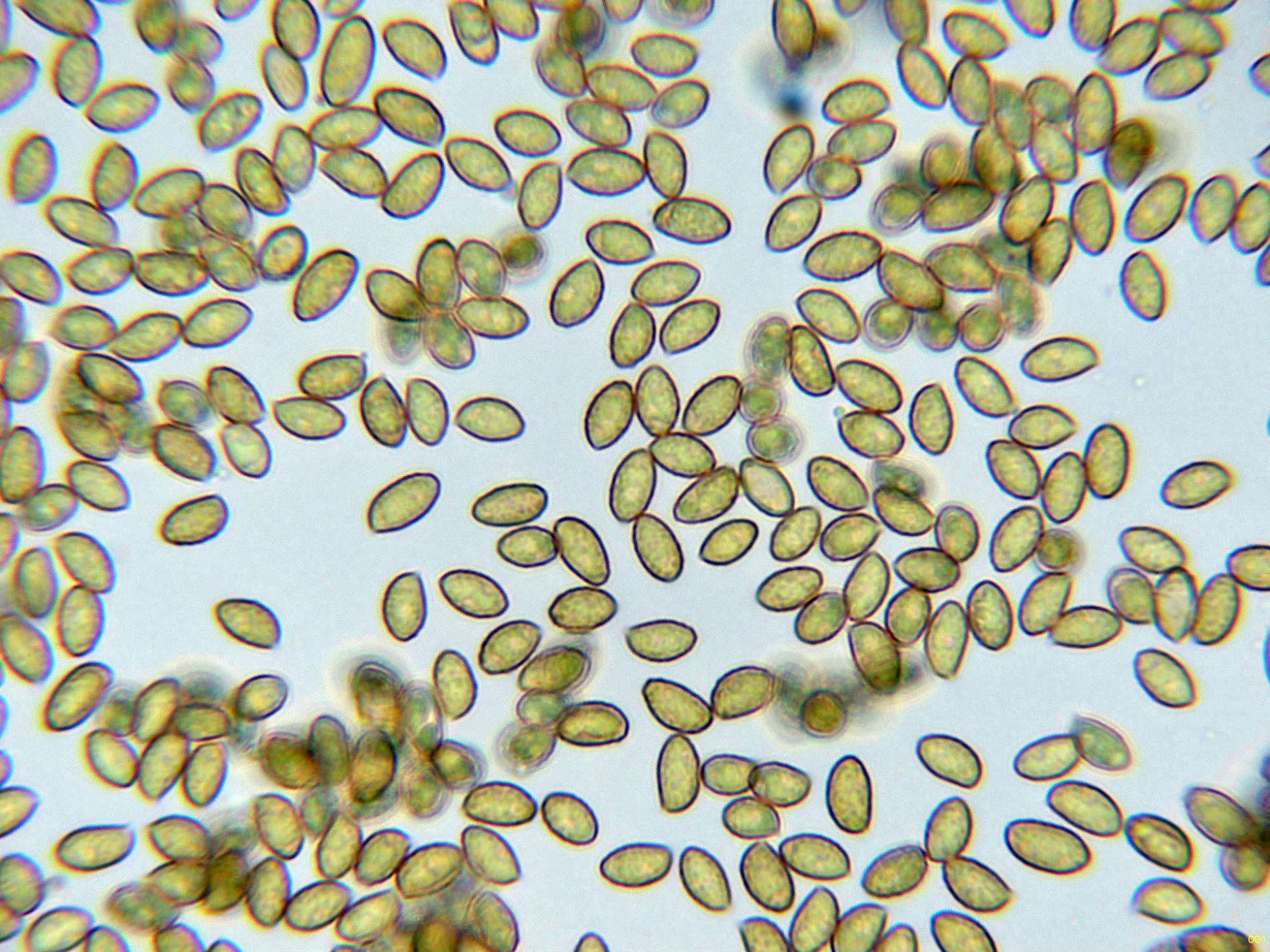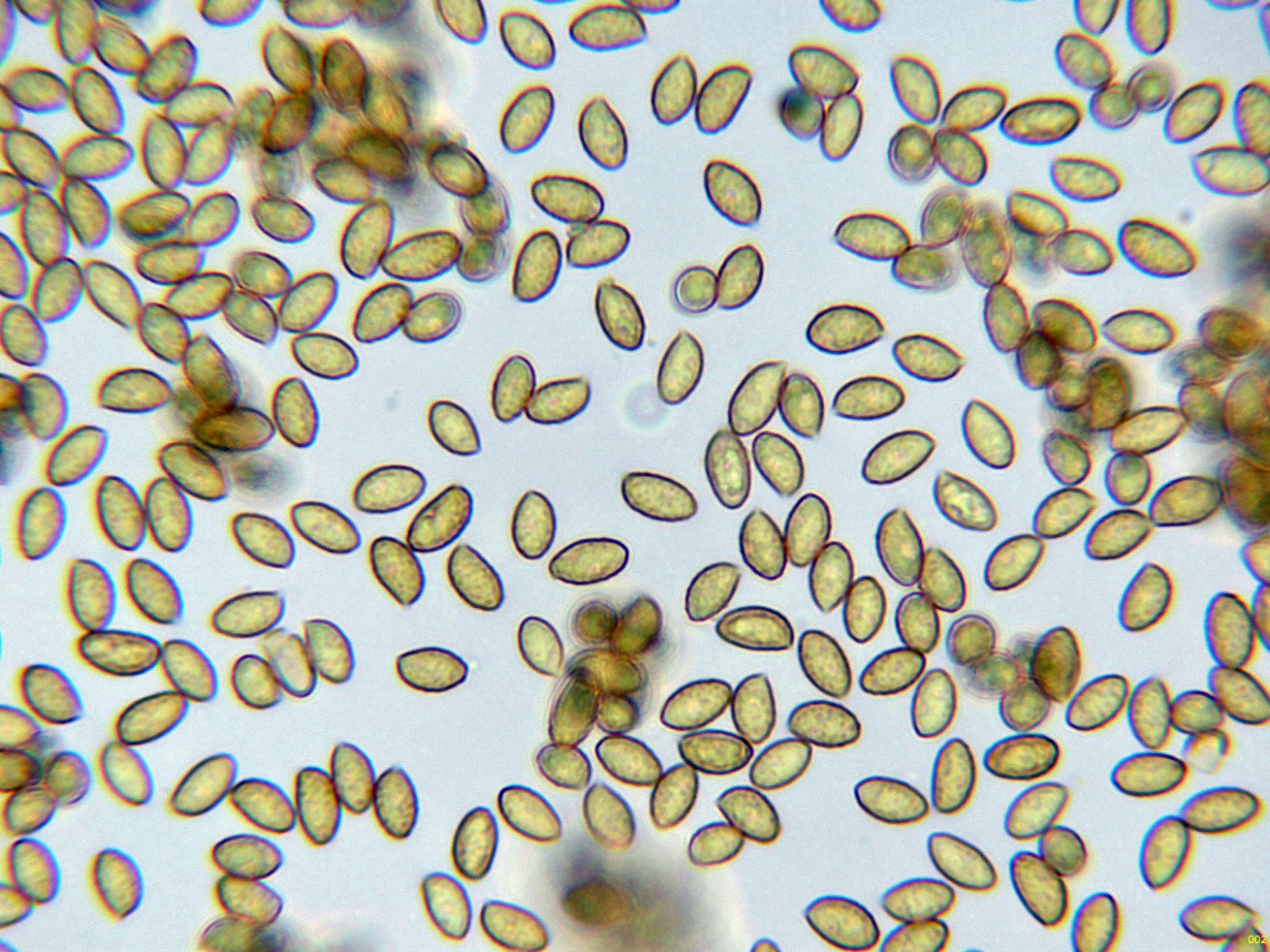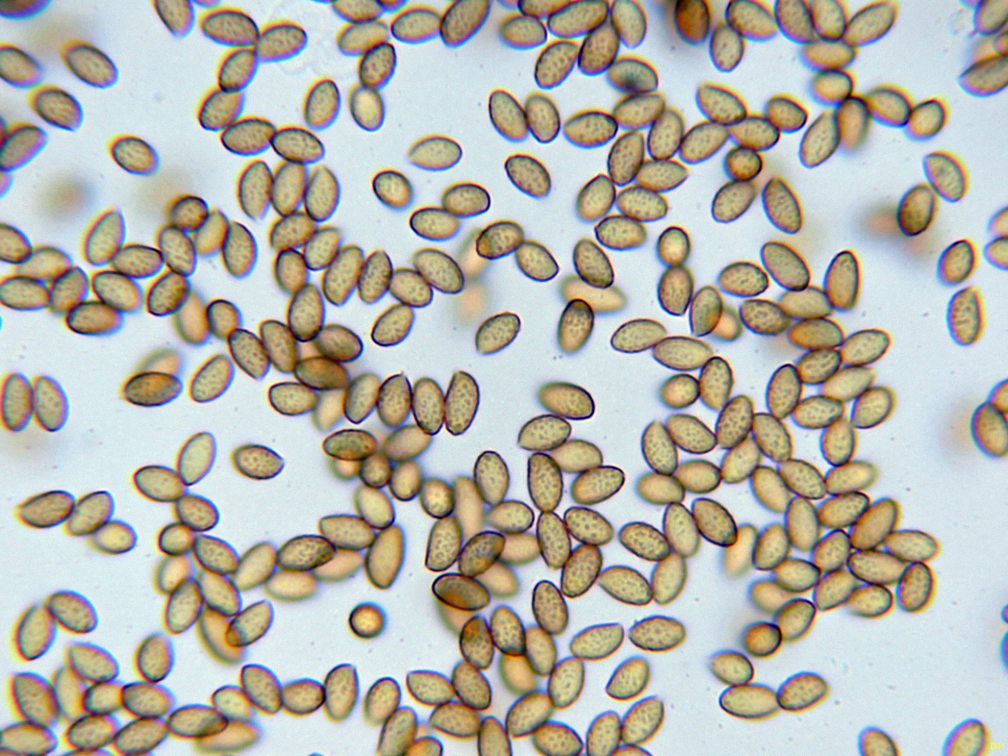 Y por último las esporas en reactivo de Melzer, sin apenas reacción o con tan solo una muy ligera reacción dextrinoide, aunque en este medio se puede observar mejor la ornamentación: