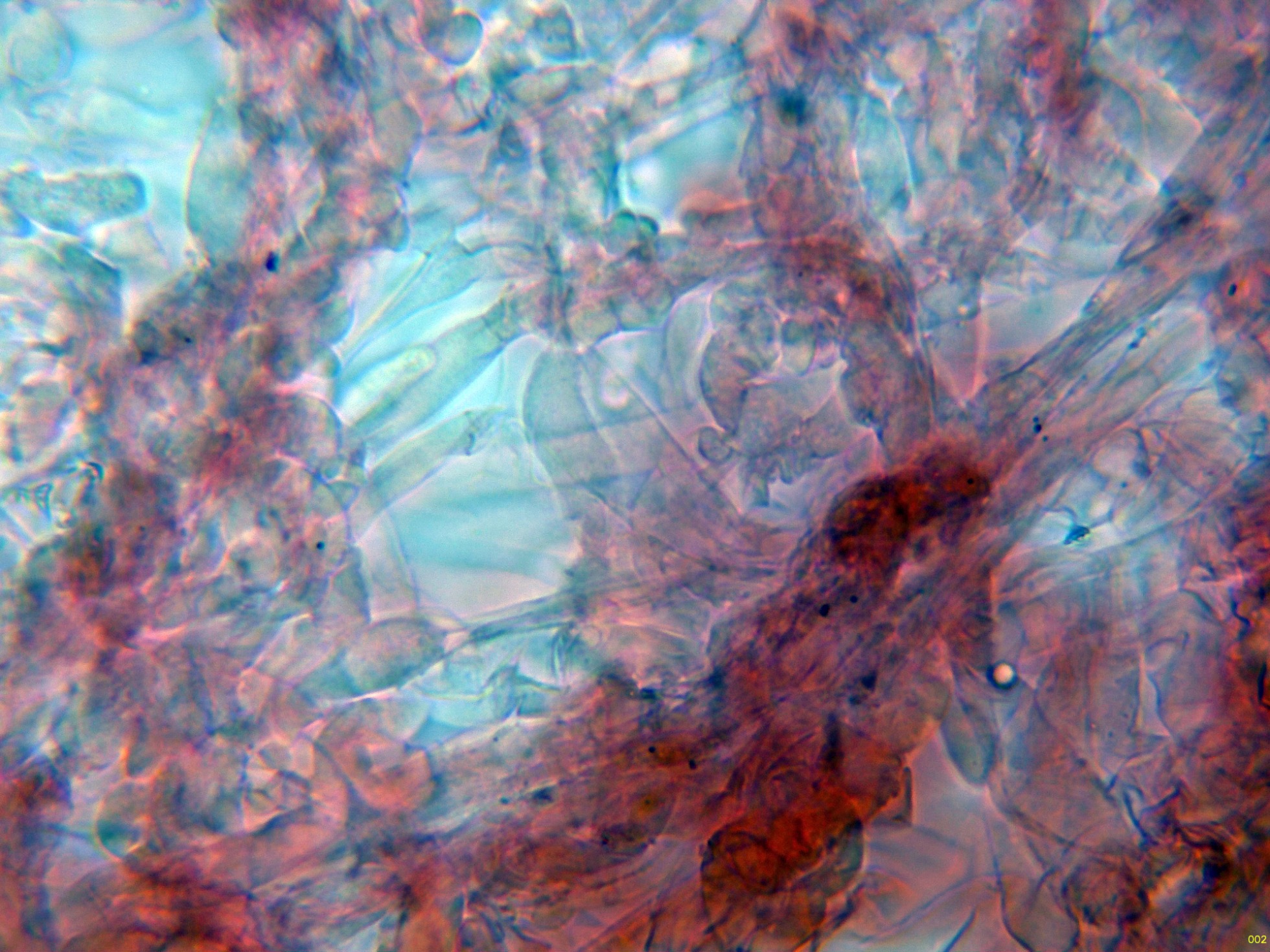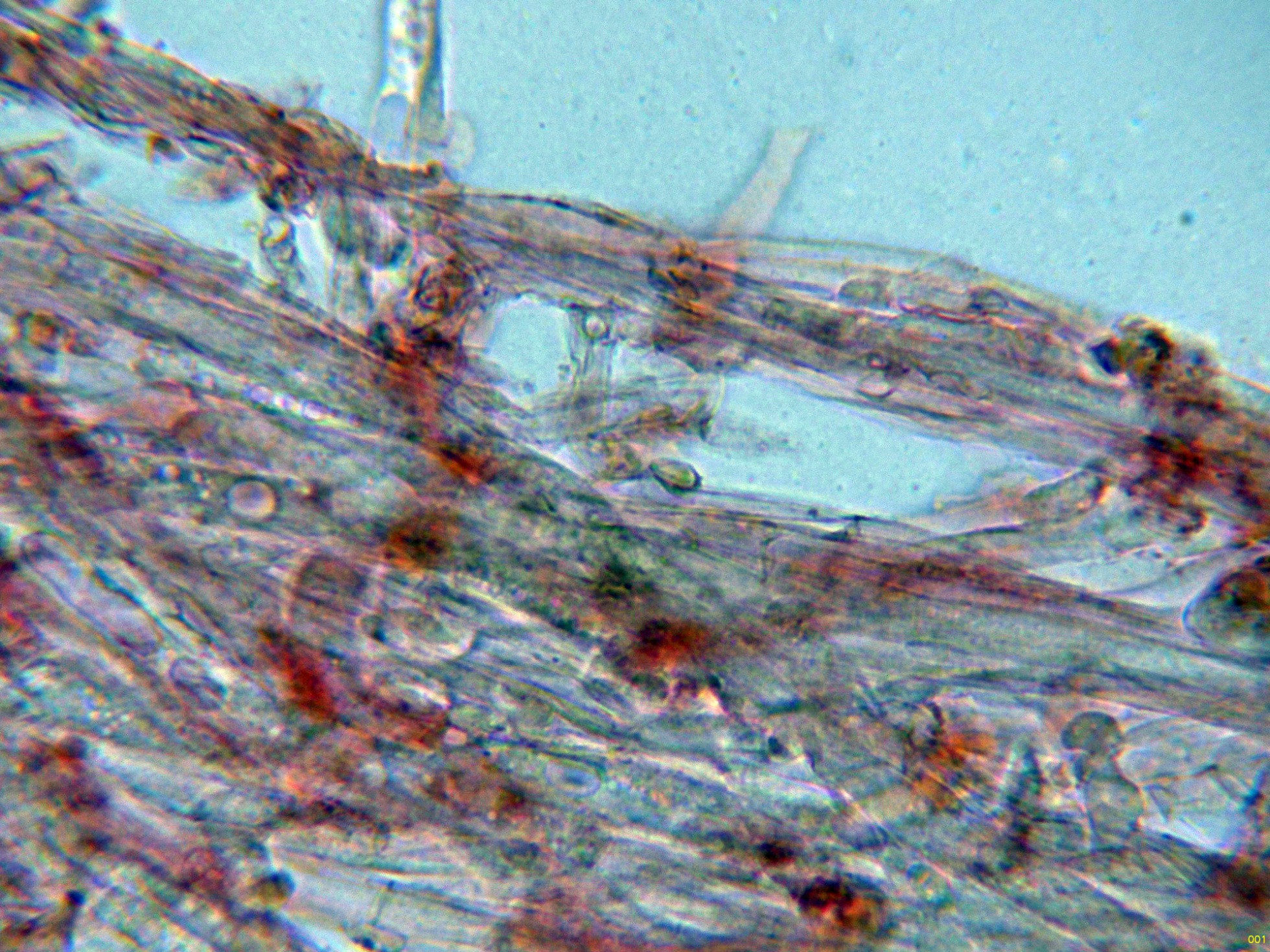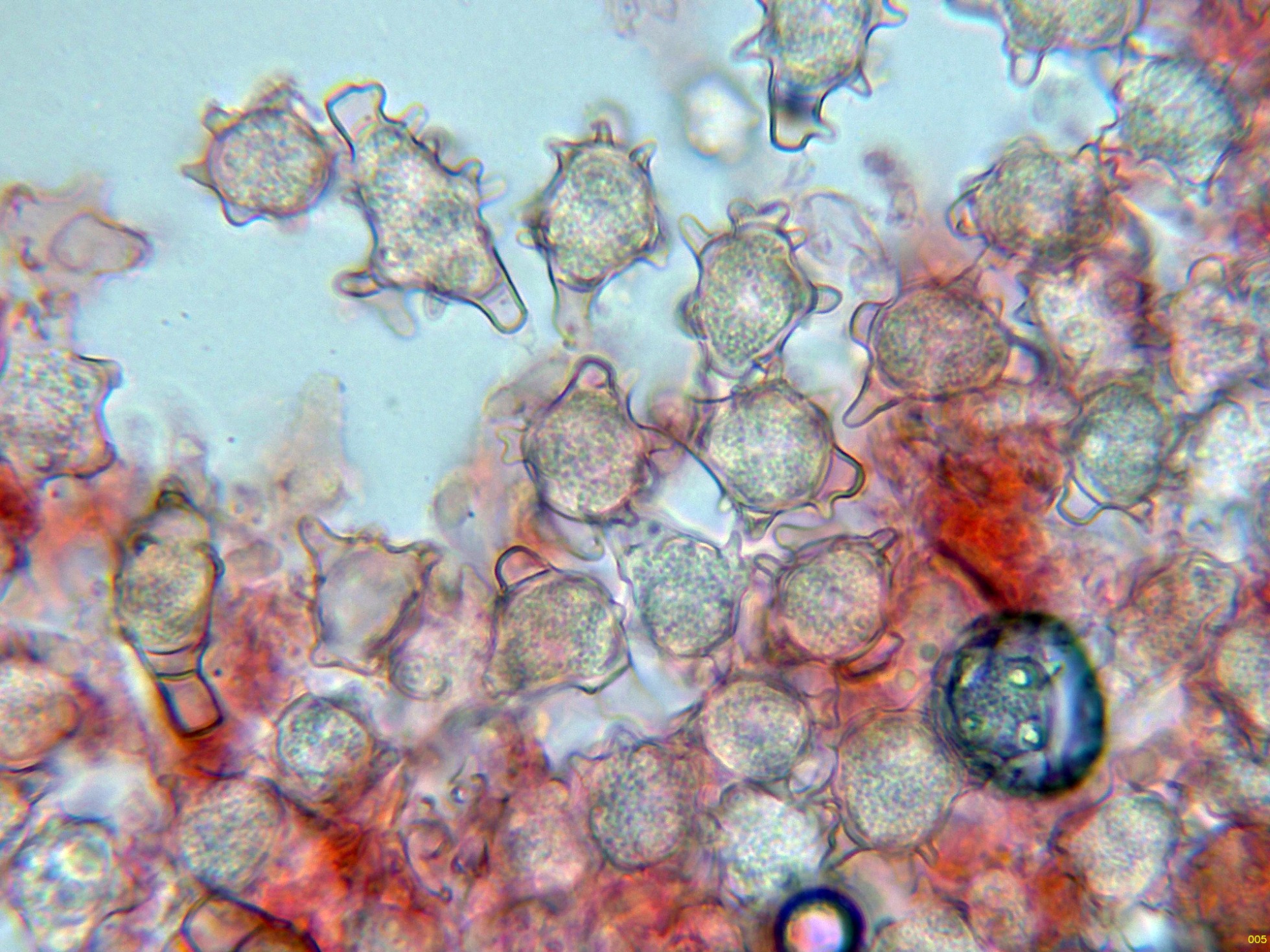 A pesar de tratarse de un basidiomiceto no se observan basidios como tales, con lo que estos basidios no serían funcionales y tampoco lo que serían las esporas, morfológicamente tampoco se parecen a esporas que puedan proceder de un basidio, sino que más bien se trataría de clamidosporas, que se originarían a partir de unas hifas terminales más parecidas a conidióforos.