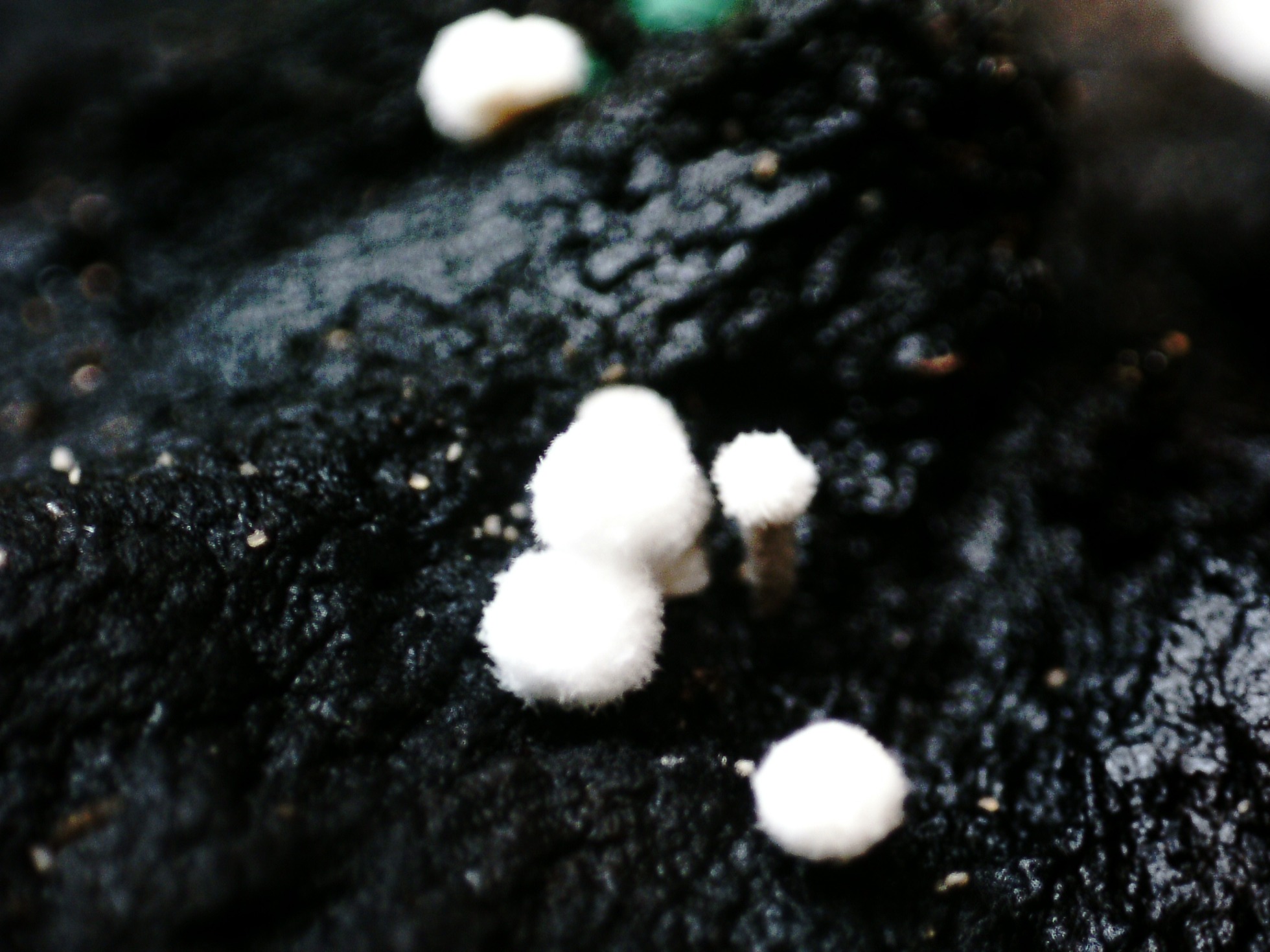 Un regalito que me envió Juan Andrés, admito que es una de las especies que tenía entre ceja y ceja, brotando sobre unos ejemplares de Russulas en descomposición, en distintas etapas de desarrollo, tenemos la: