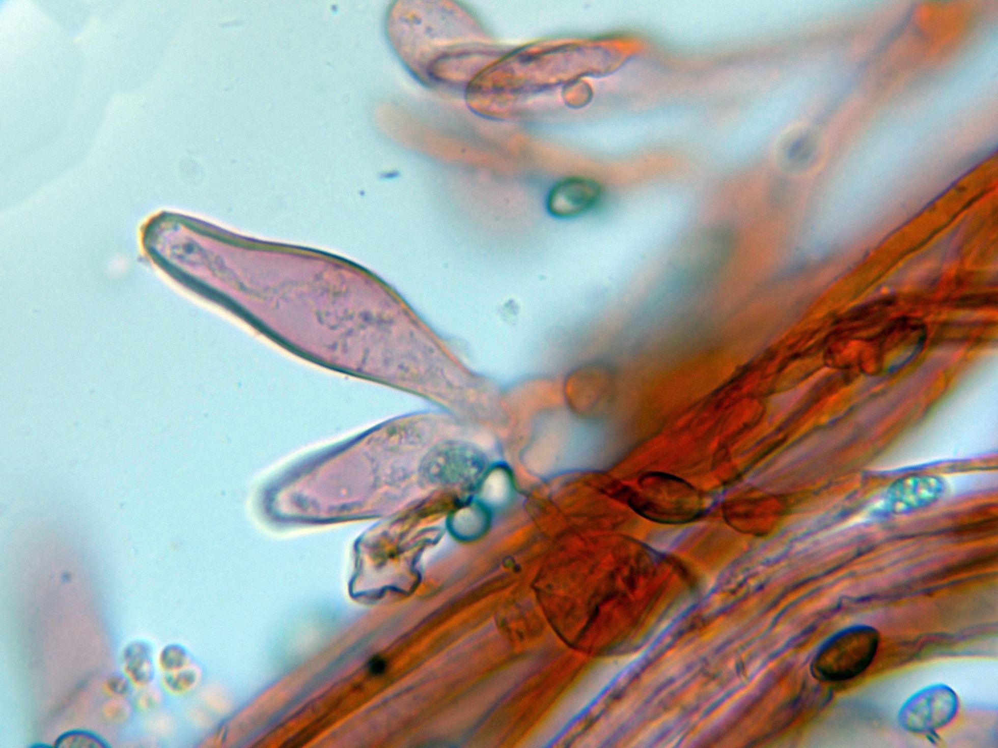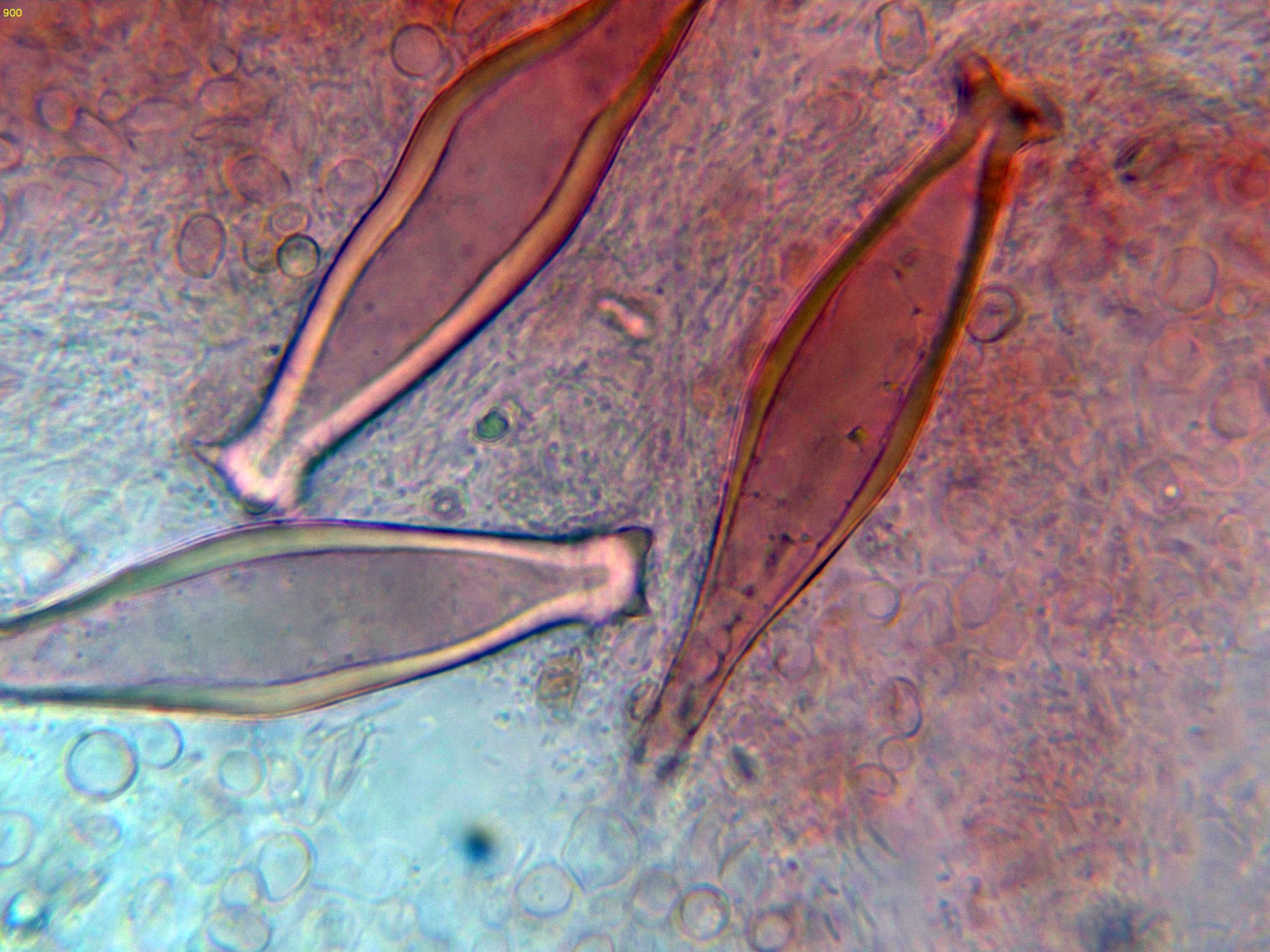 Pleurocistidios dispersos con una morfología parecida a los queilocistidios: