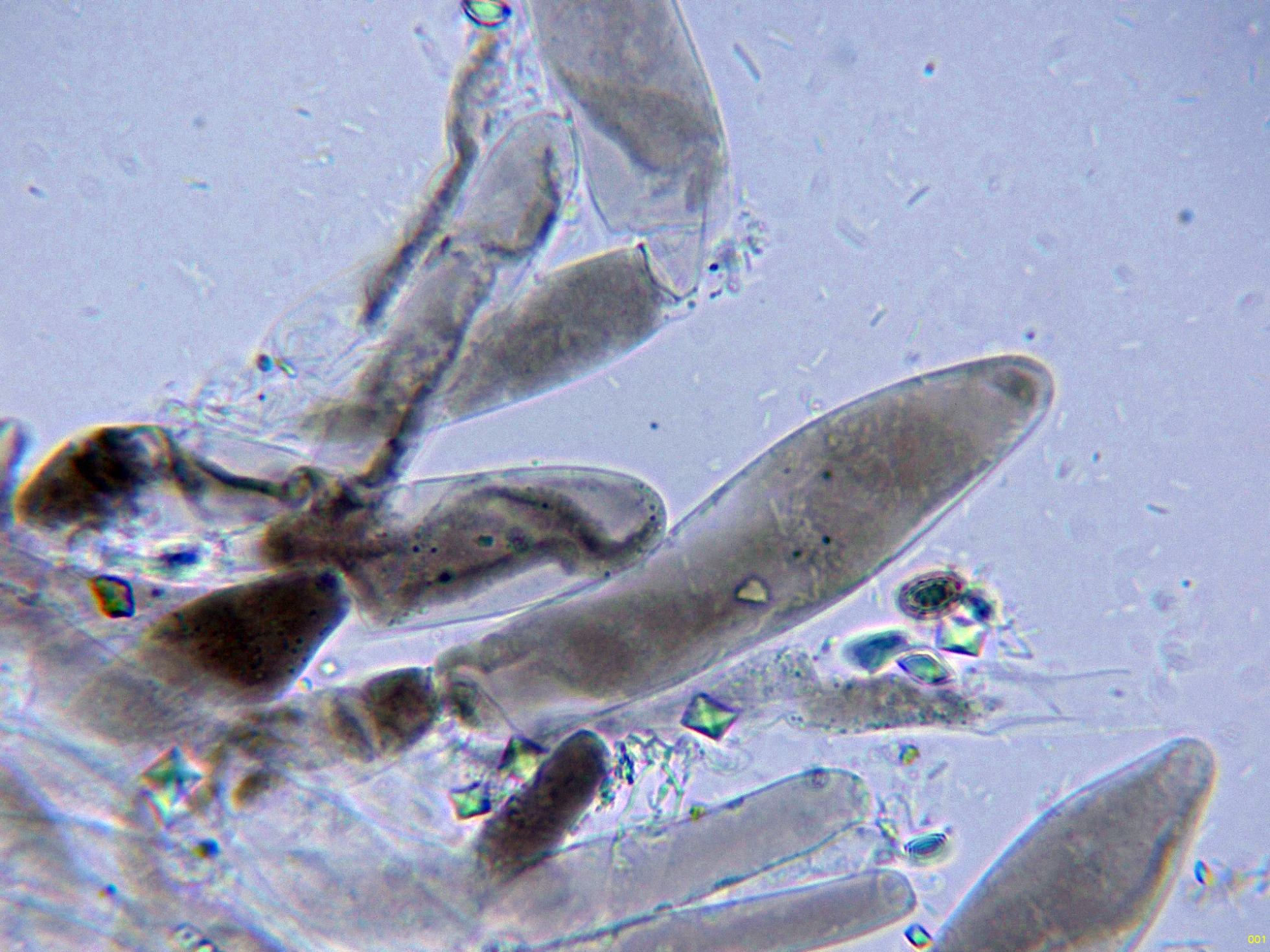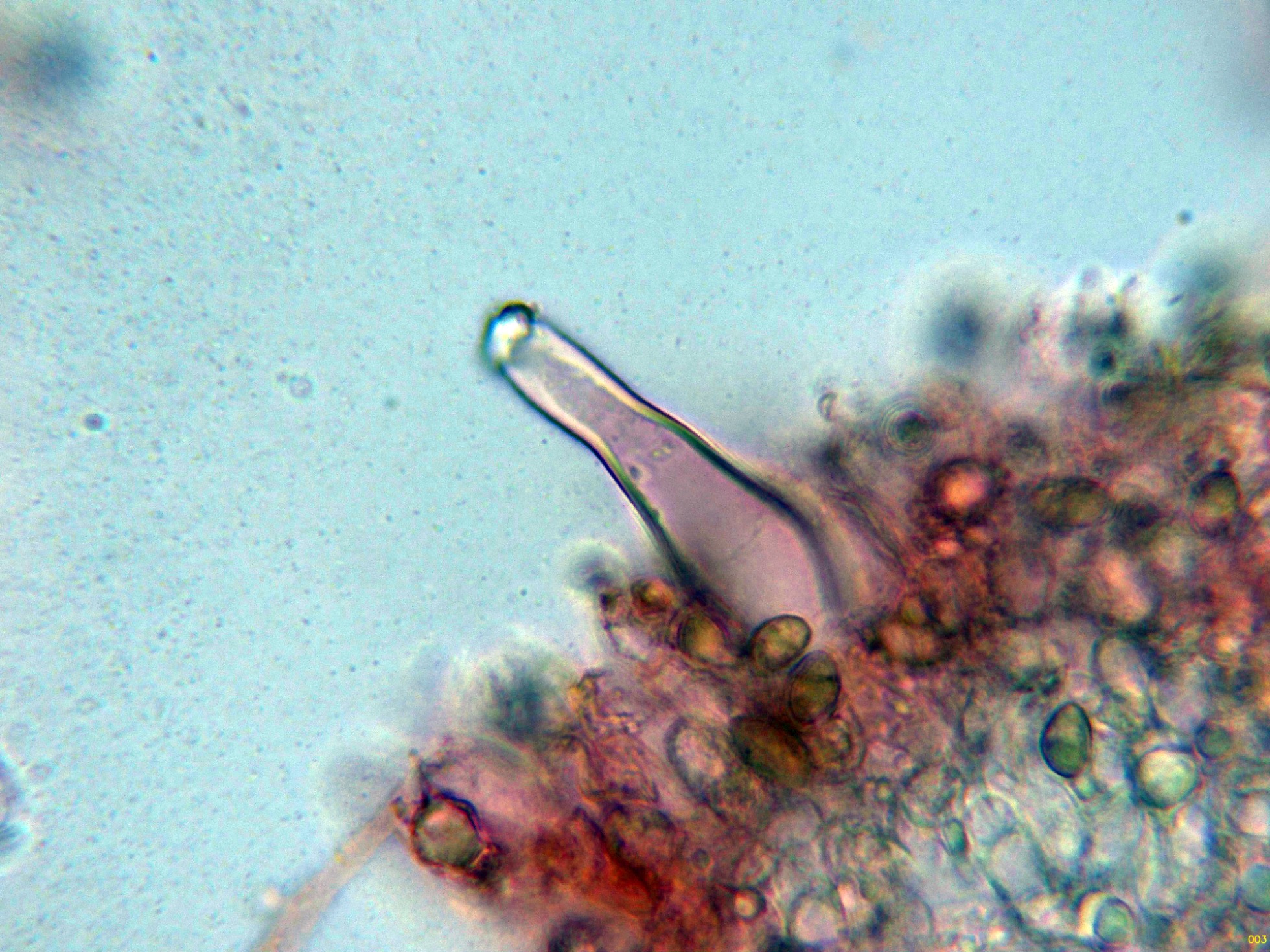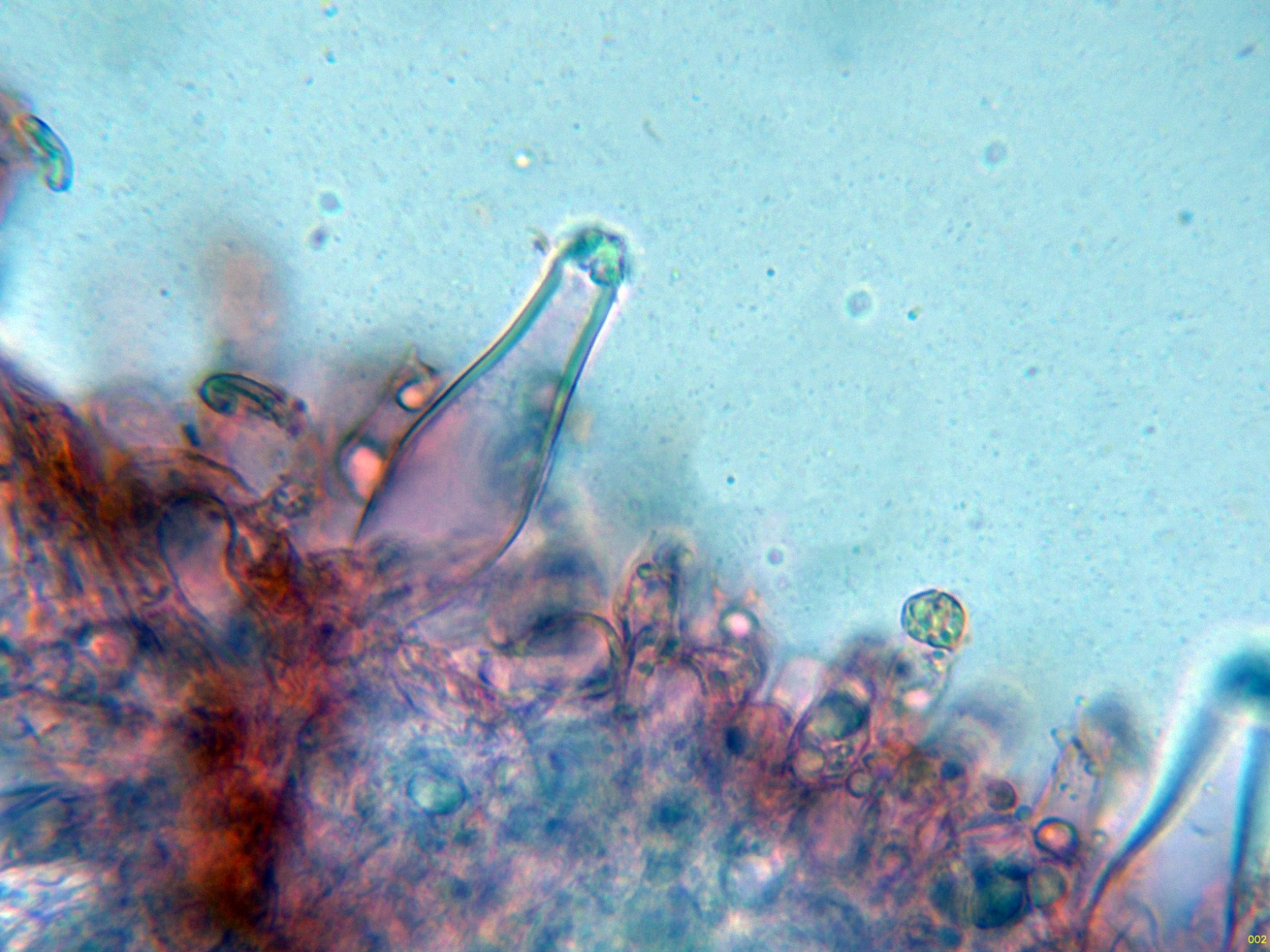Caulocistidios con cristalizaciones presentes en la parte alta del pie: