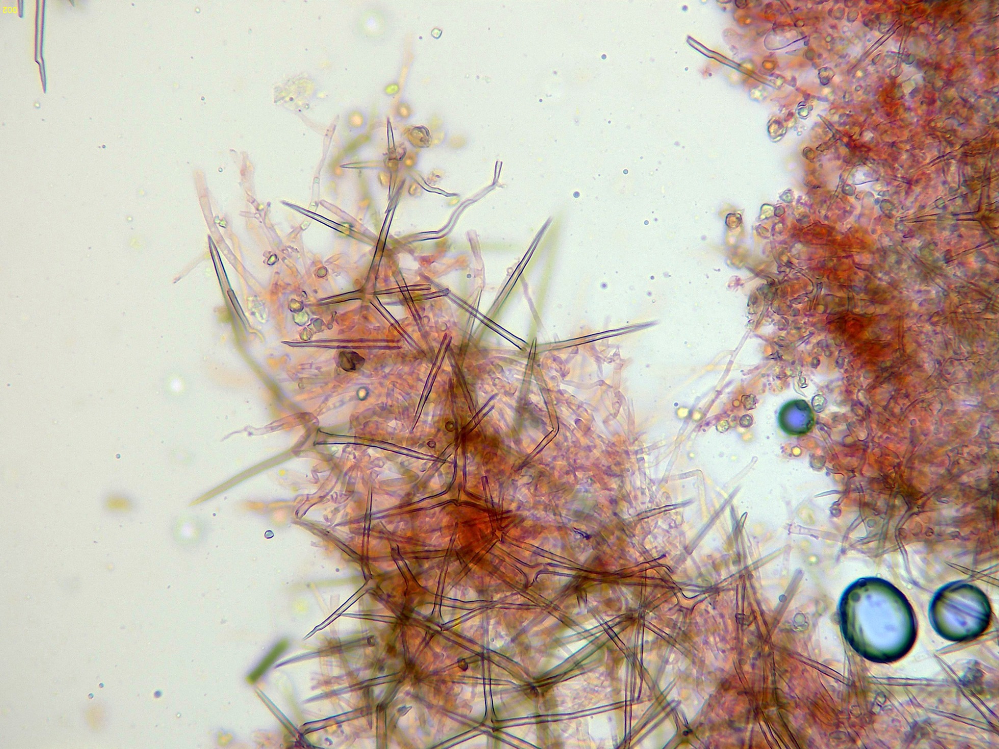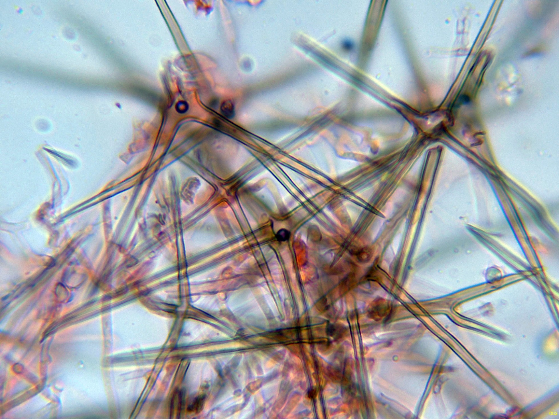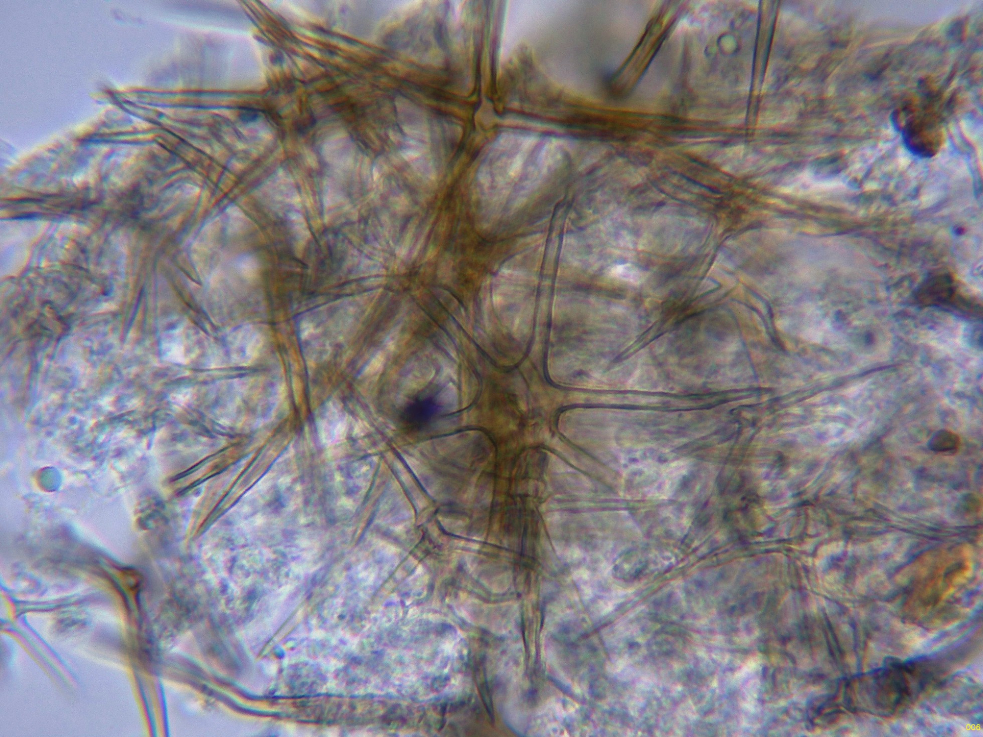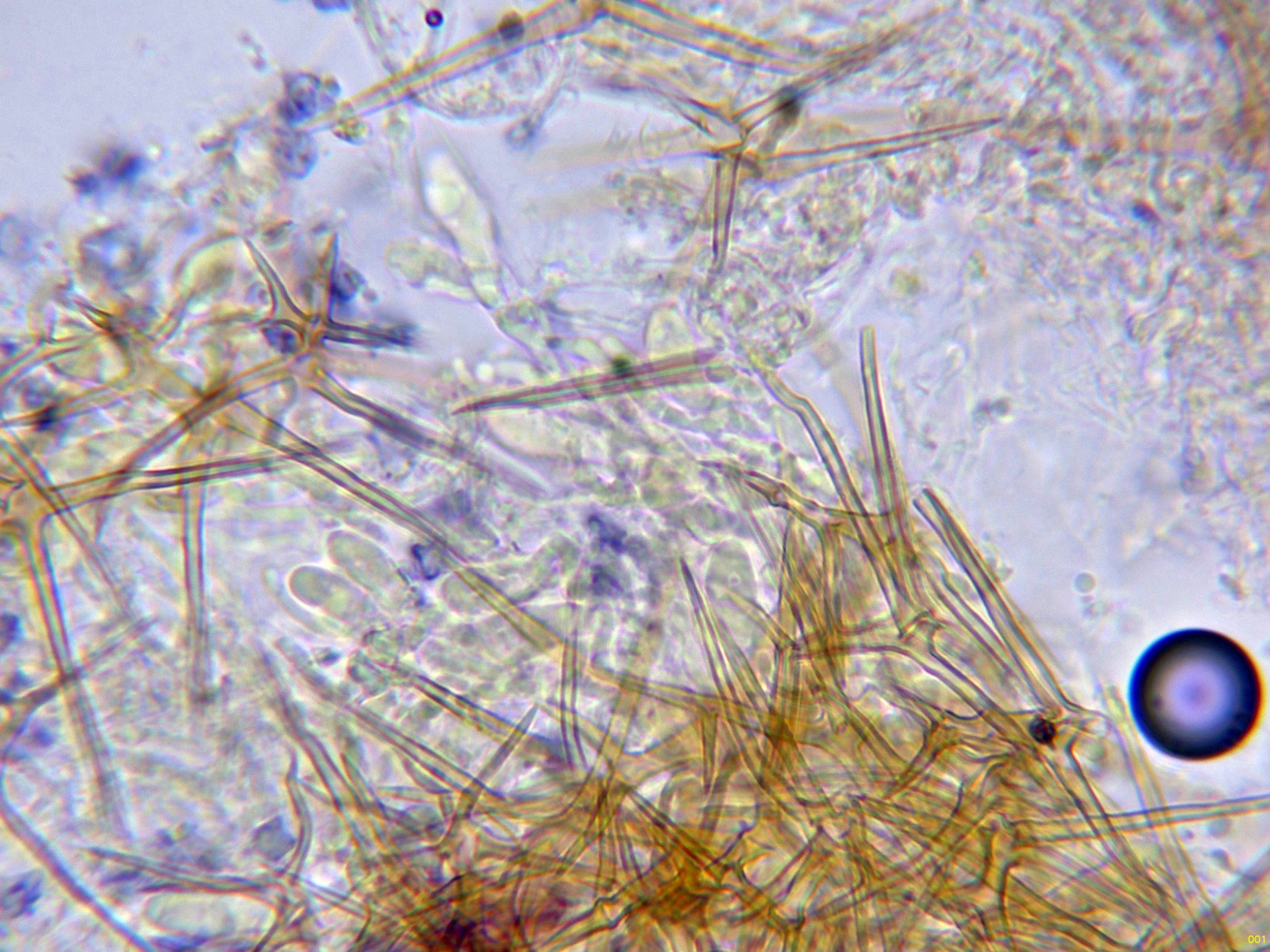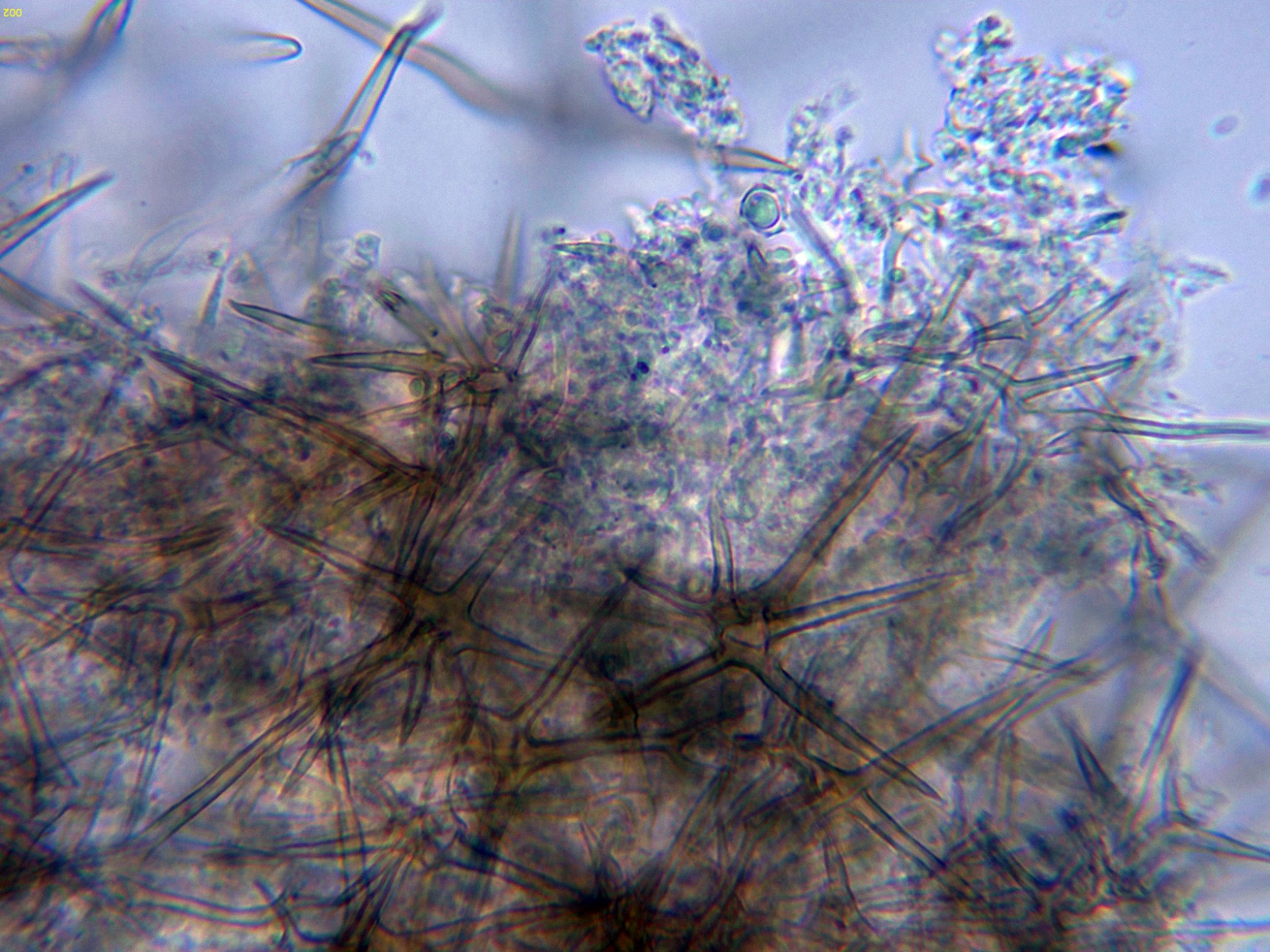 En el himenio abundantes asterohifidios con una morfología parecida a las asterosetas pero de un tamaño muy inferior: