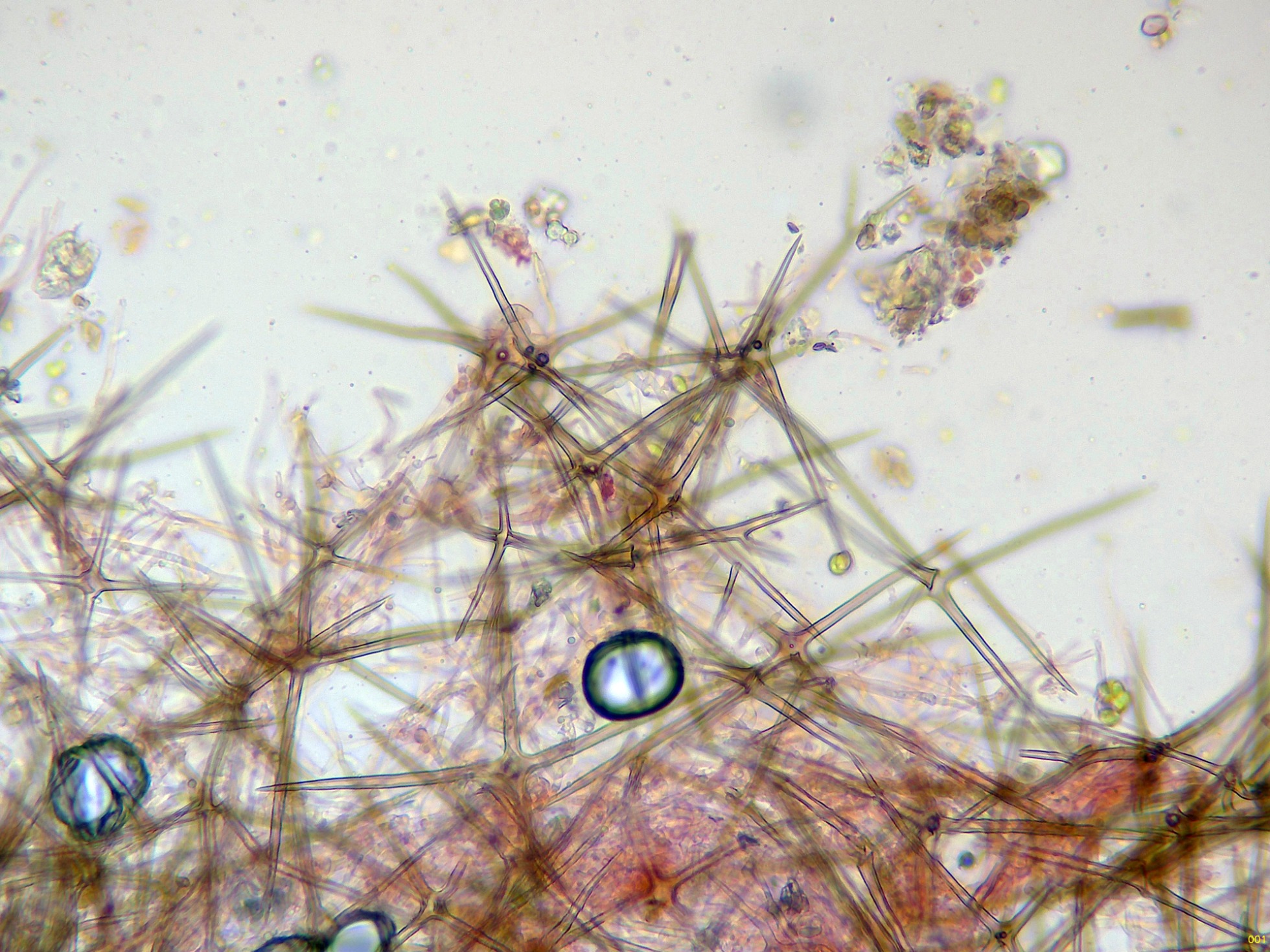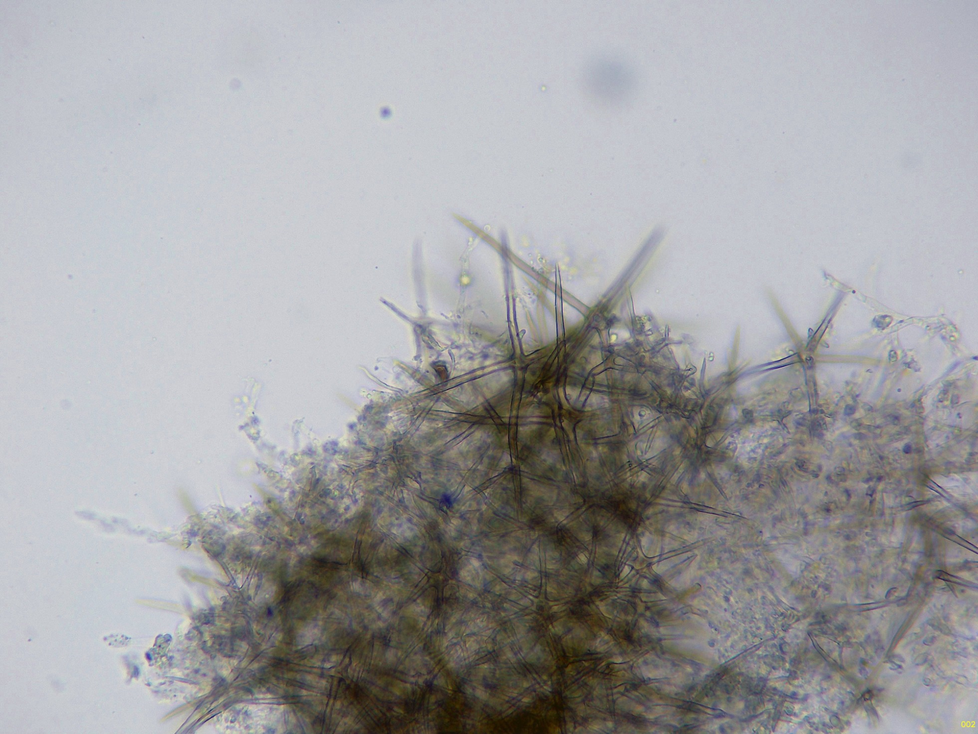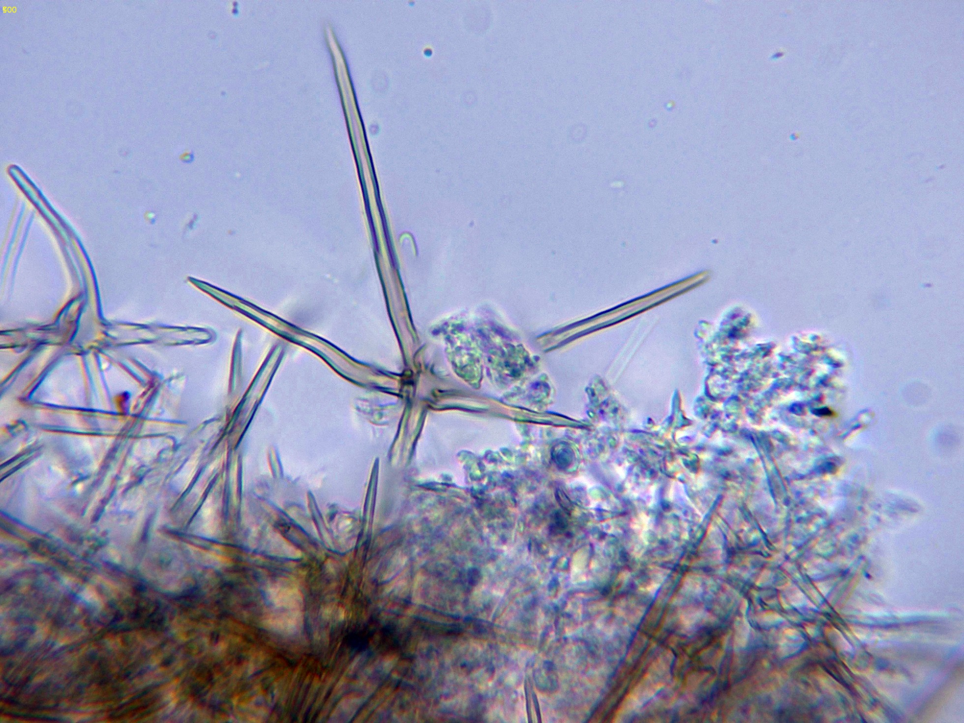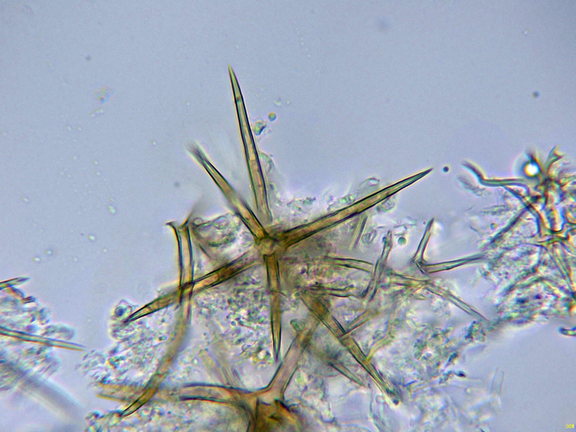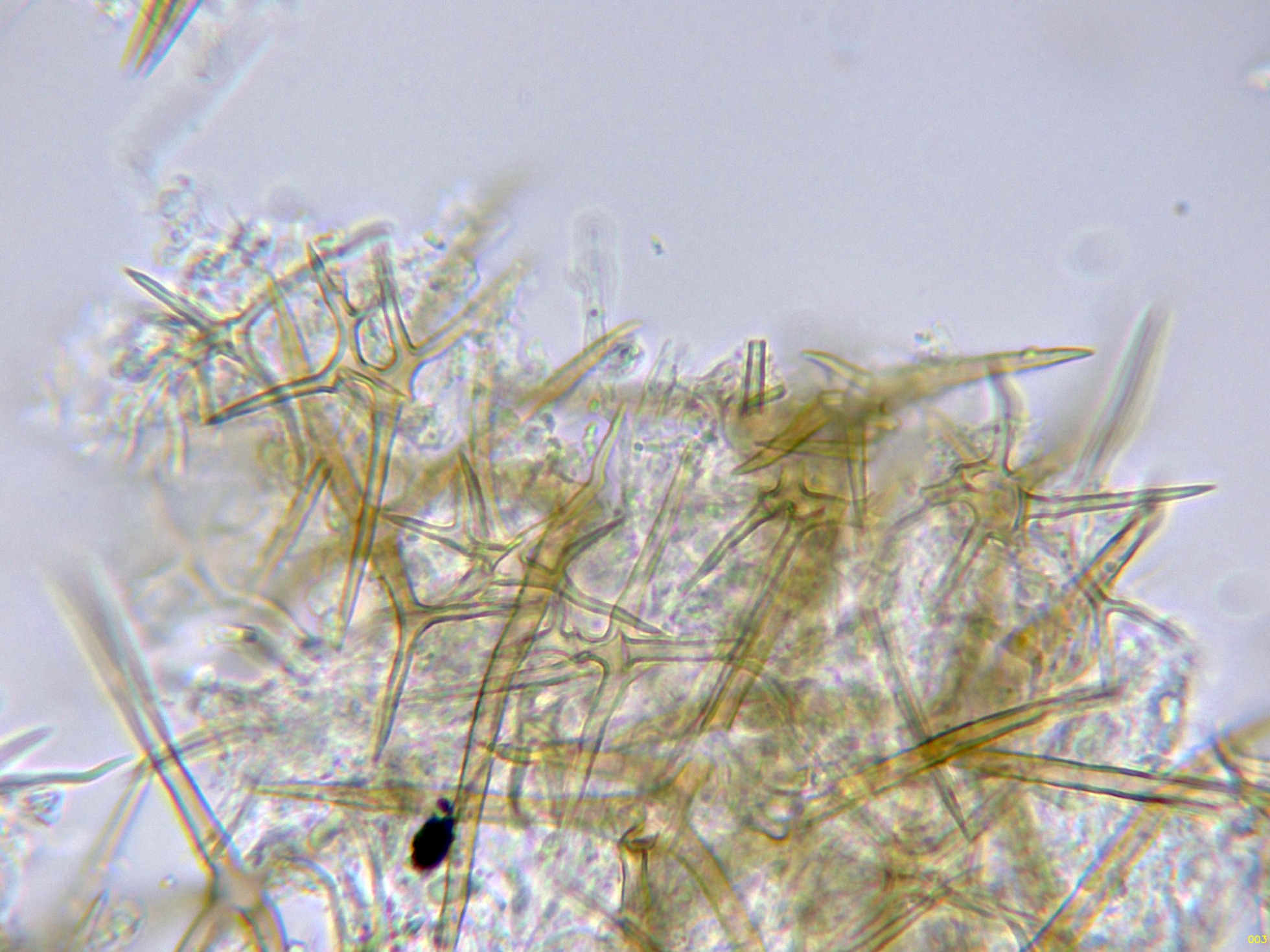 En el himenio abundantes asterohifidios con una morfología parecida a las asterosetas pero de un tamaño muy inferior: