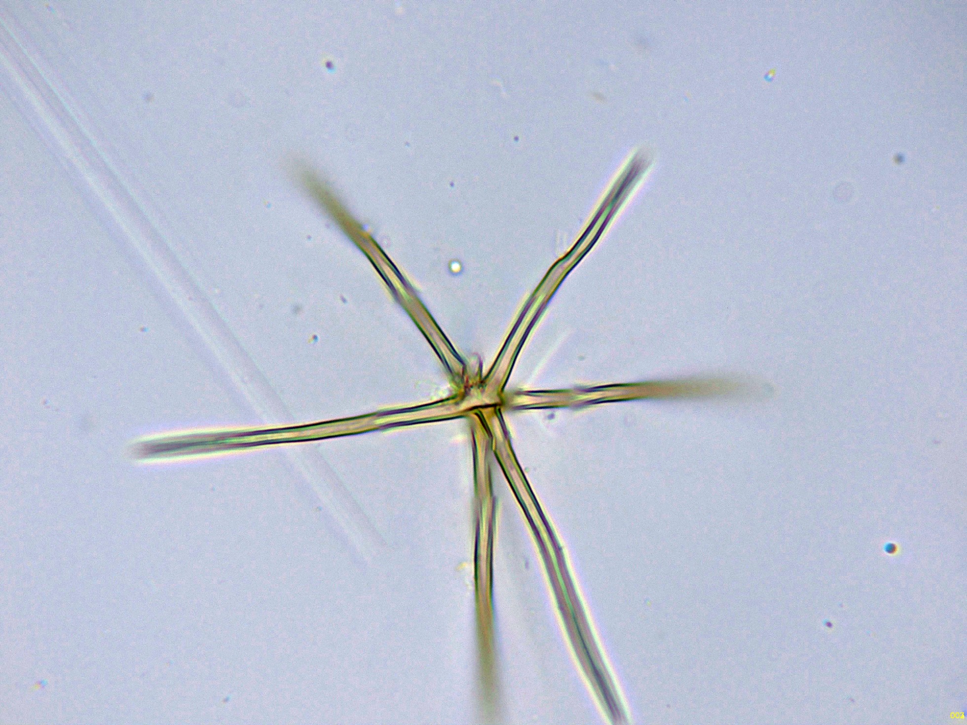 Aunque mayoritariamente estas asterosetas parecen presentar entre 3 y 4 brazos, esto se debería a que los brazos de las mismas se encontrarían en diferente plano, añado una asteroseta en agua con 6 brazos: