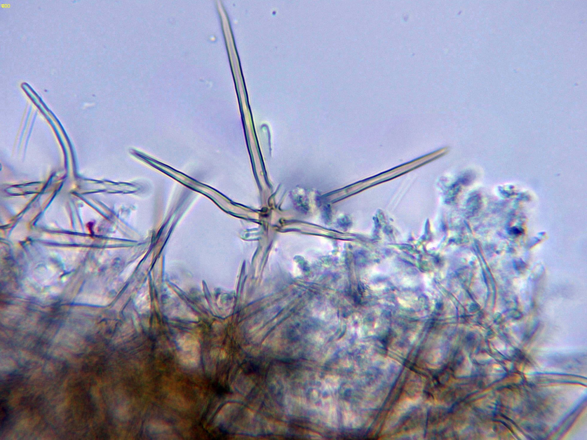 Superficie del basidioma a 20 aumentos: