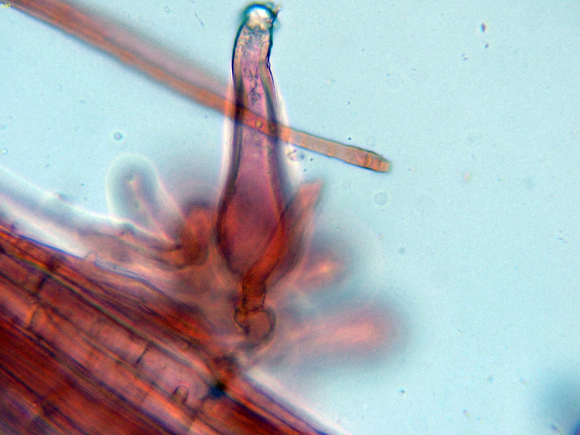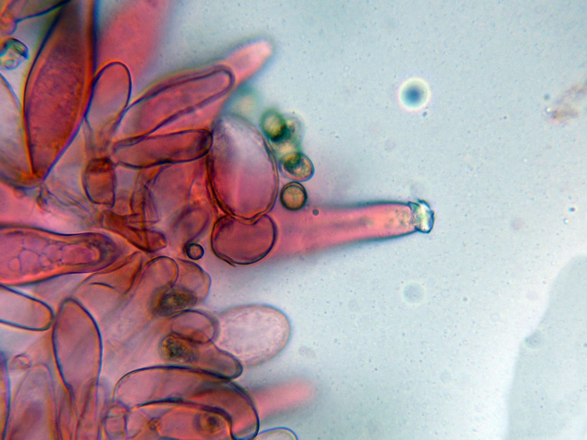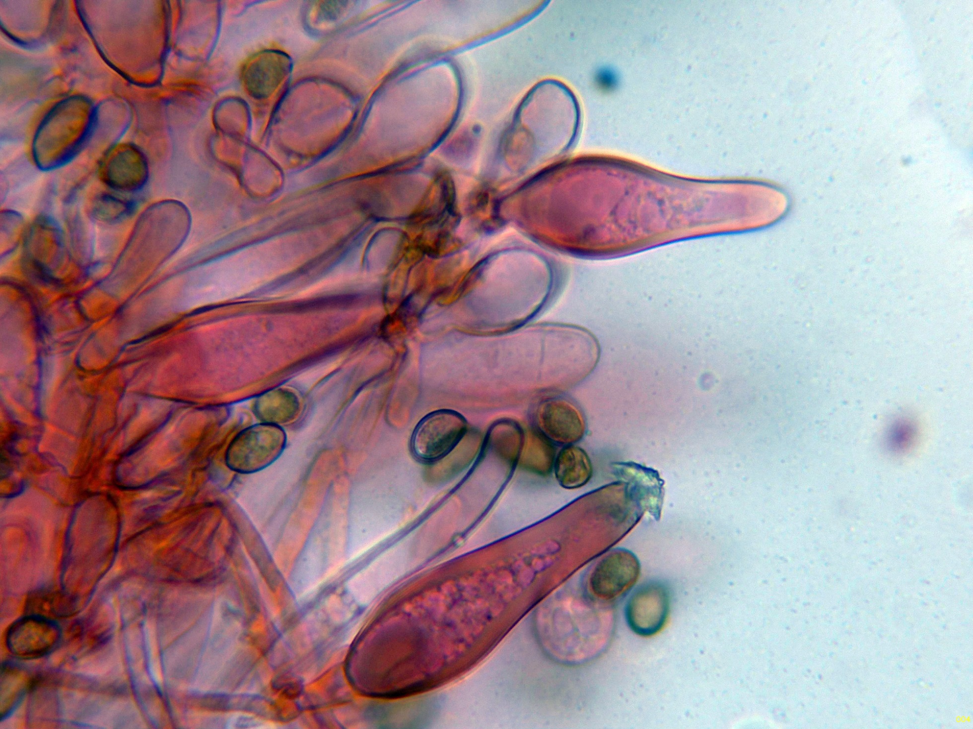 Pleurocistidios dispersos con una morfología parecida a los queilocistidios: