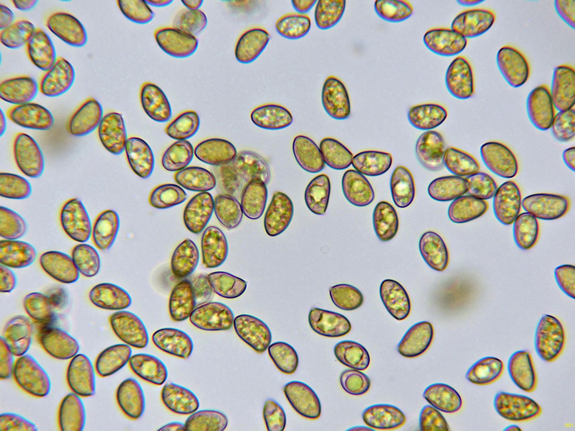 Determinación hecha siguiendo las Claves de Les Champignons de Suisse, que bajo coníferas, sombreo radialmente fibrilloso, pie bulboso, caulocistidios presentes por toda la superficie del pie y esporas con unas medidas de 8,6-11,7 x 5,2-6,9 µm. conducen a la Inocybe leiocephala propuesta, no obstante no me terminan de encajar las medidas de los queilocistidios ya que la misma fuente indica unas medidas para los queilocistidios de la Inocybe leiocephala de 60-80 x 15-22 µm., medidas bastante por encima de mis mediciones, es entonces cuando decido contrastar esta información con la de las Claves de Funga Nordica, en esta fuente citan unas medidas para los queilocistidios de la Inocybe leiocephala de 45-75 x 12-20 μm, en este caso ya mucho más acordes con mi propuesta ya que todas las medidas de mi estudio entran bien dentro de este rango, además de las medidas esporales, según Funga Nordica de 9-11 x 5.5-6.5 μm., medidas totalmente concordantes con mis mediciones.