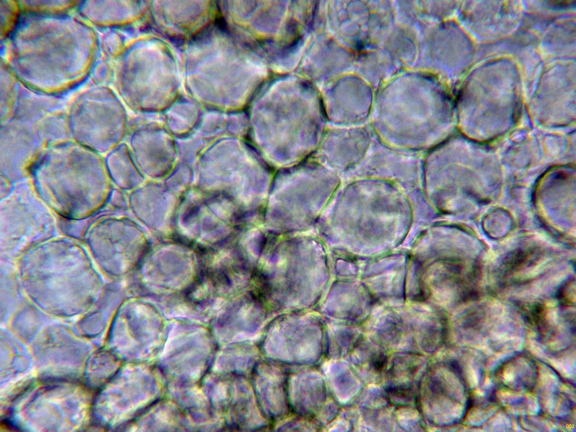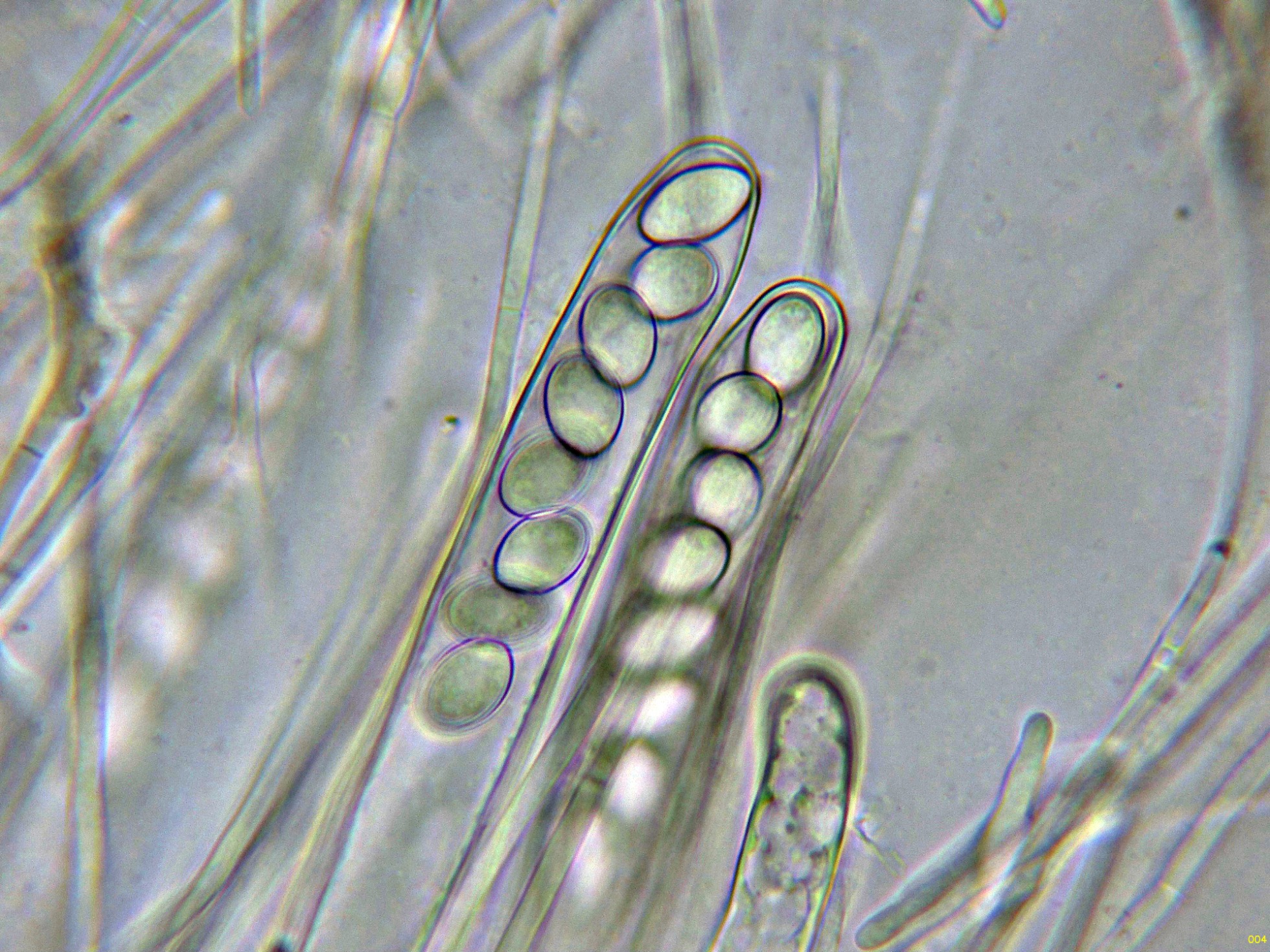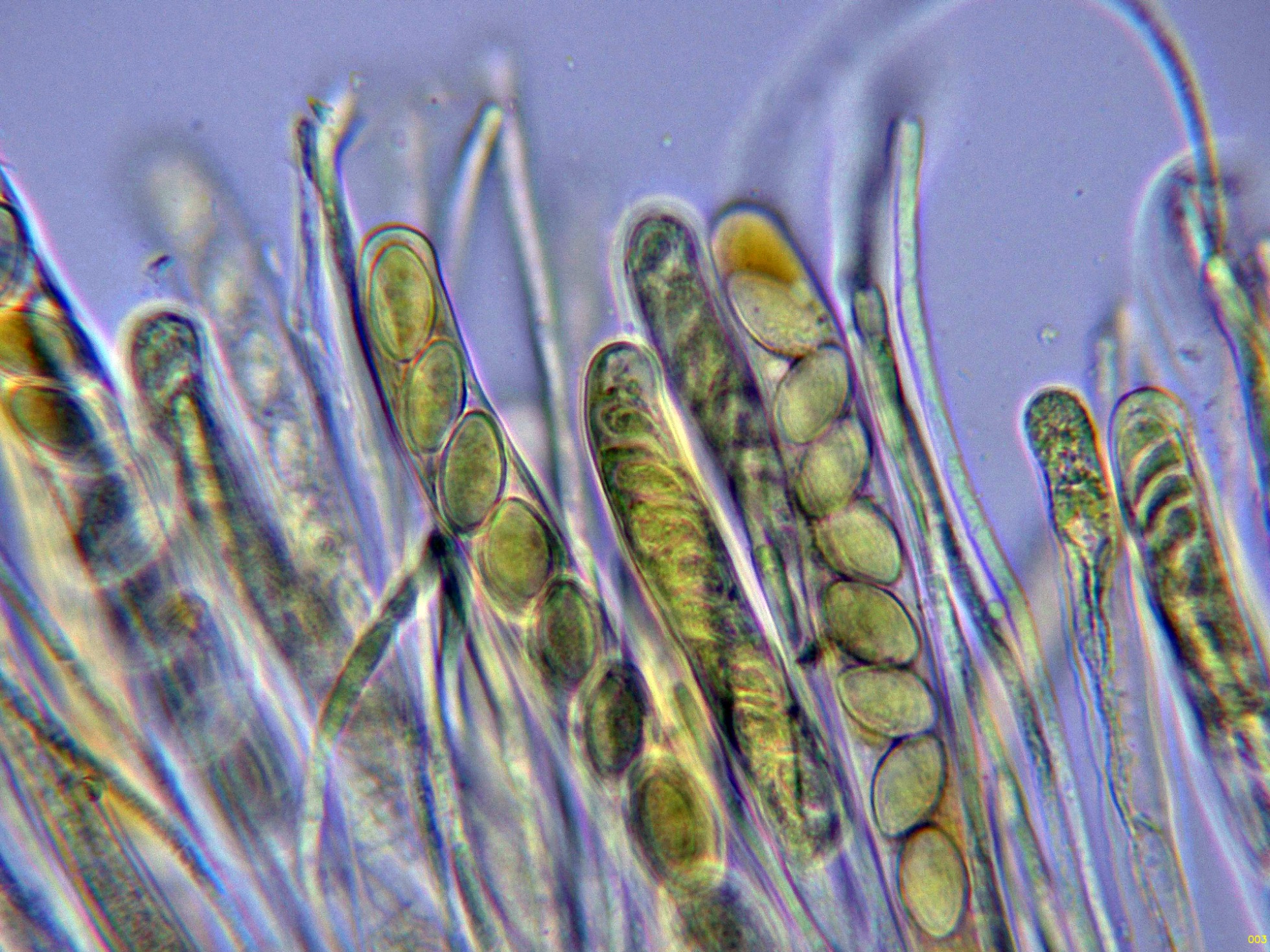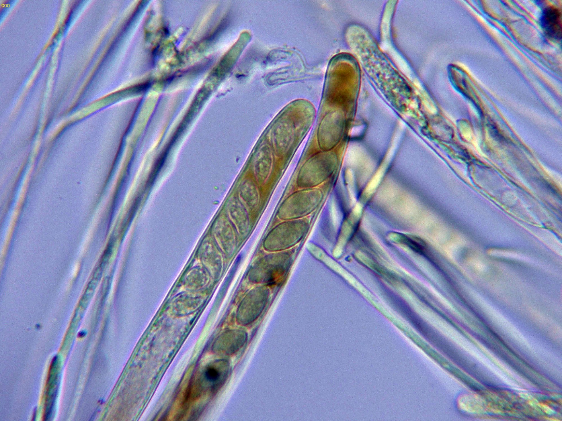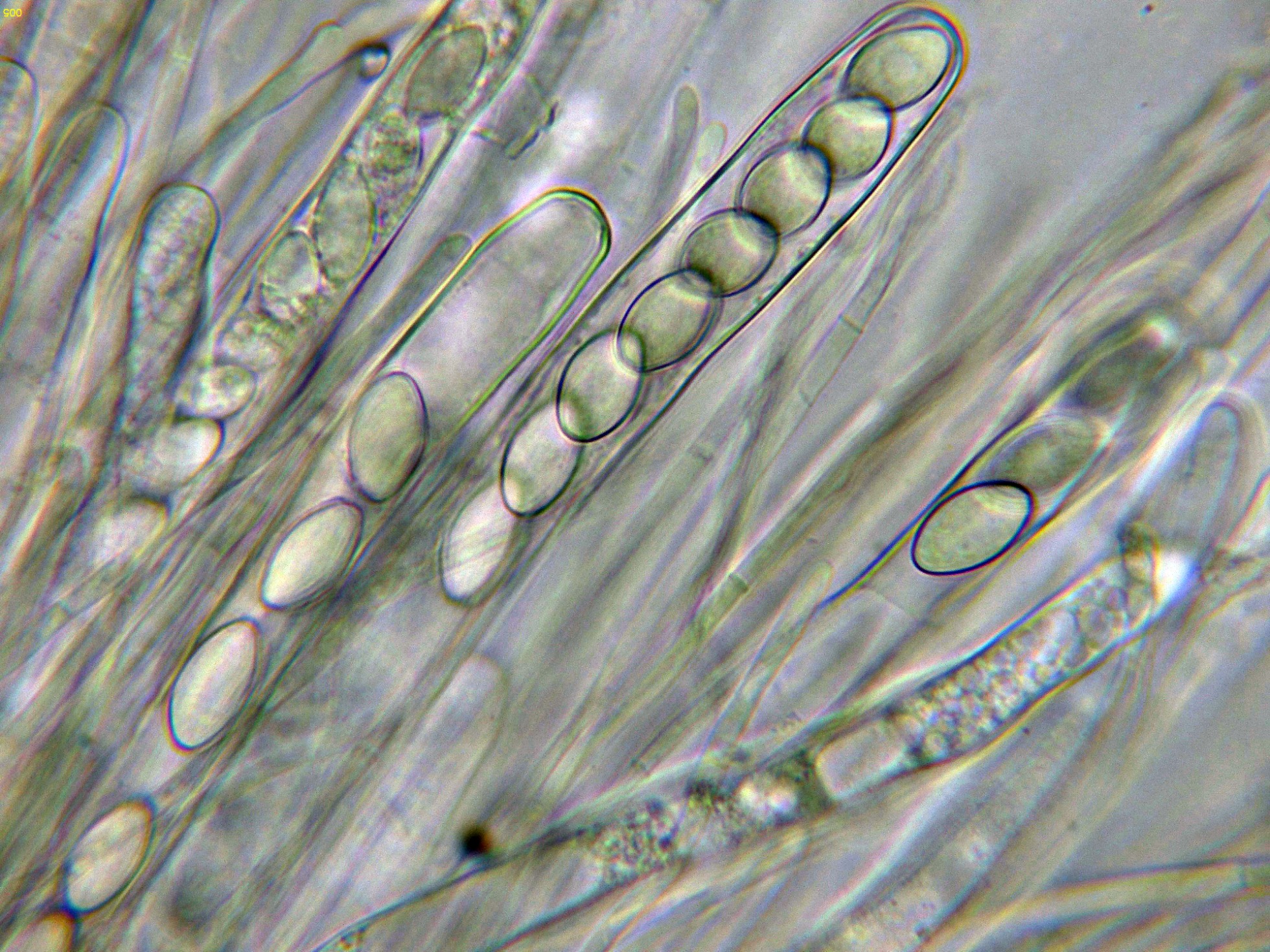 Los ascos en reactivo de Melzer a 1000 aumentos: