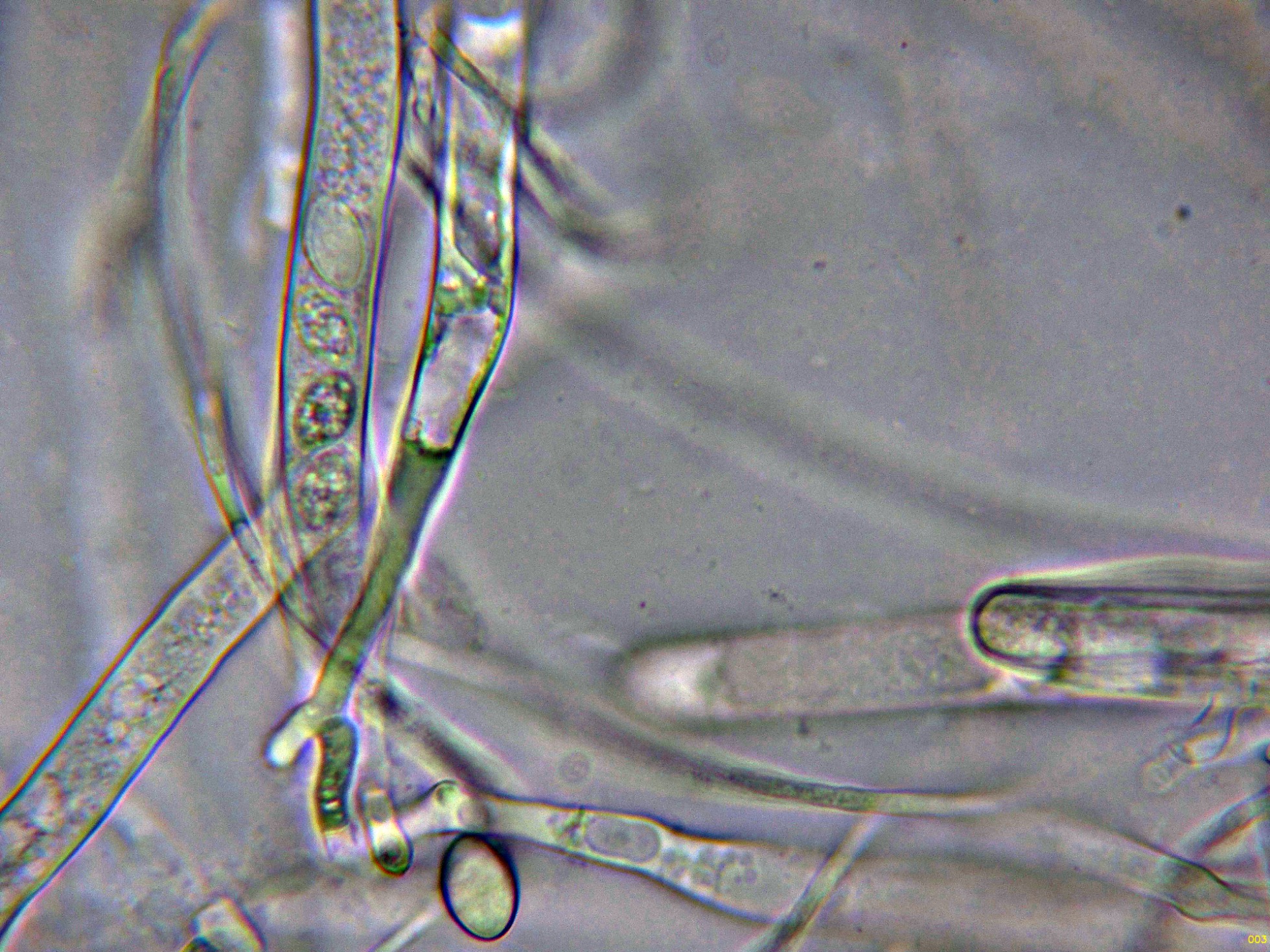 Las hifas del excípulo ectal, con morfología globosa en agua: