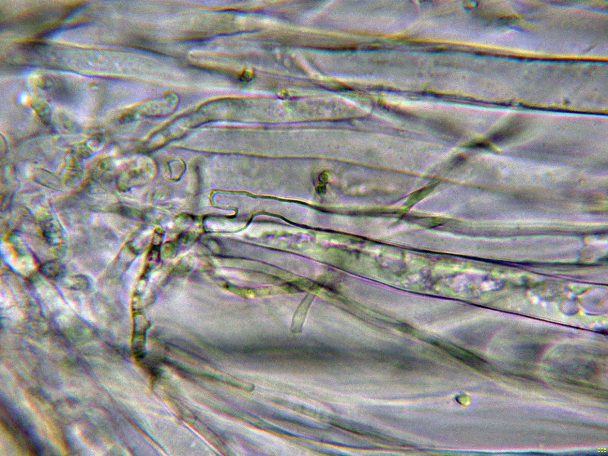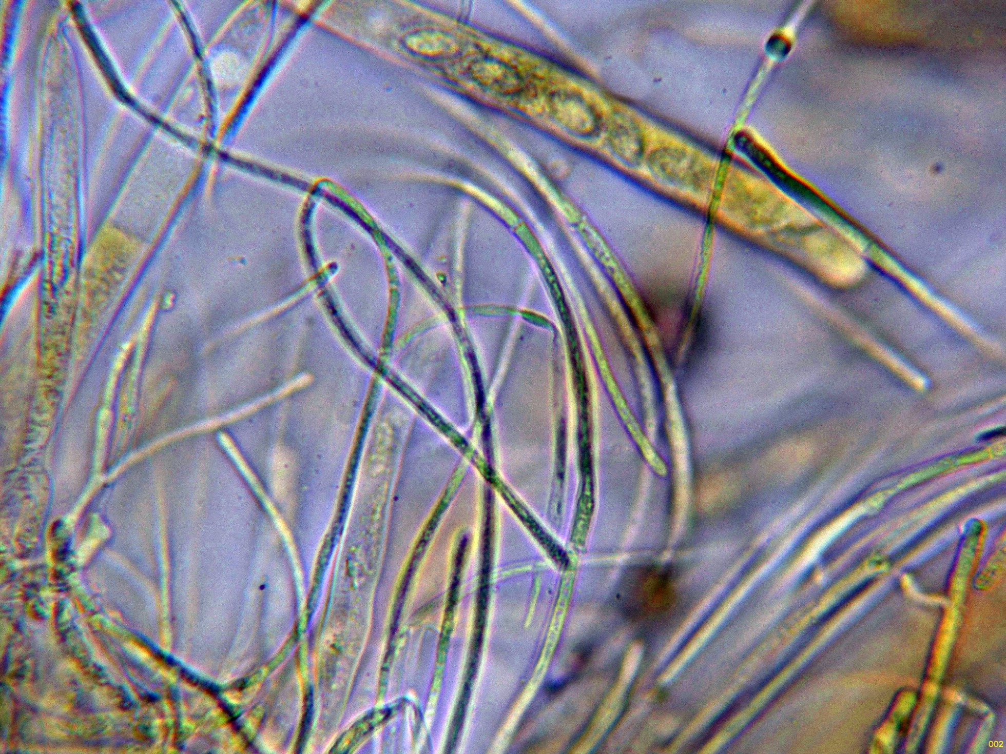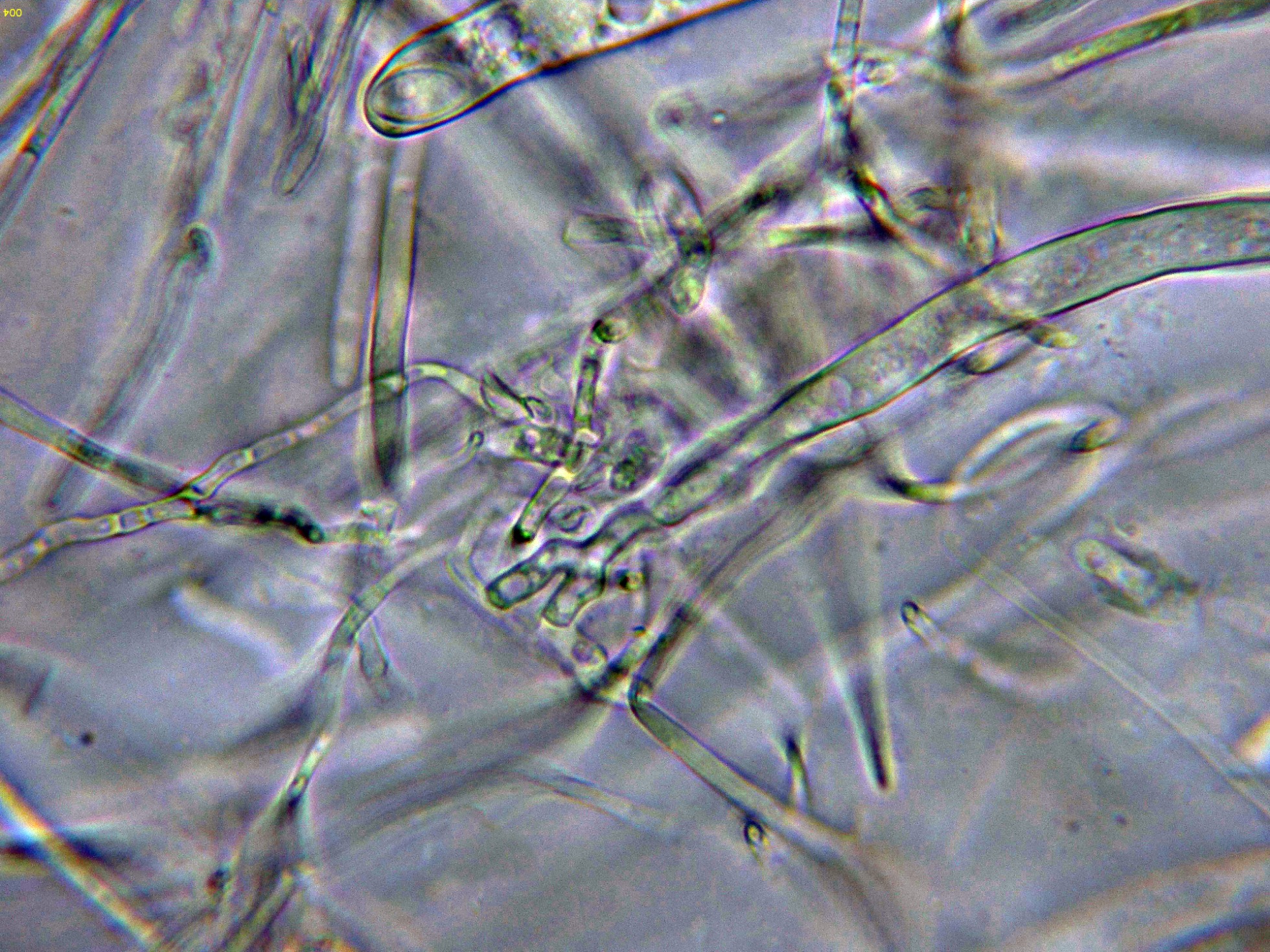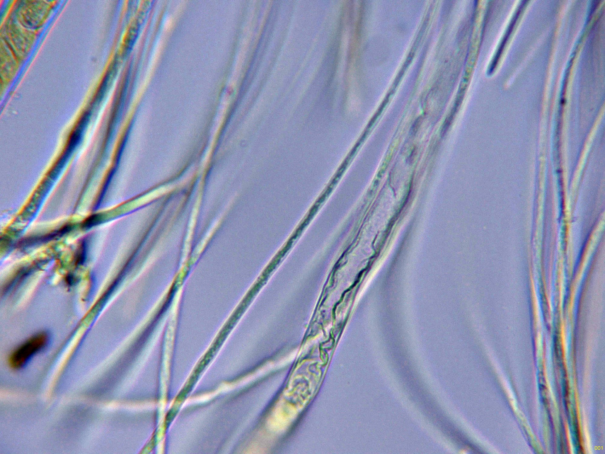 Las hifas del excípulo medular en agua: