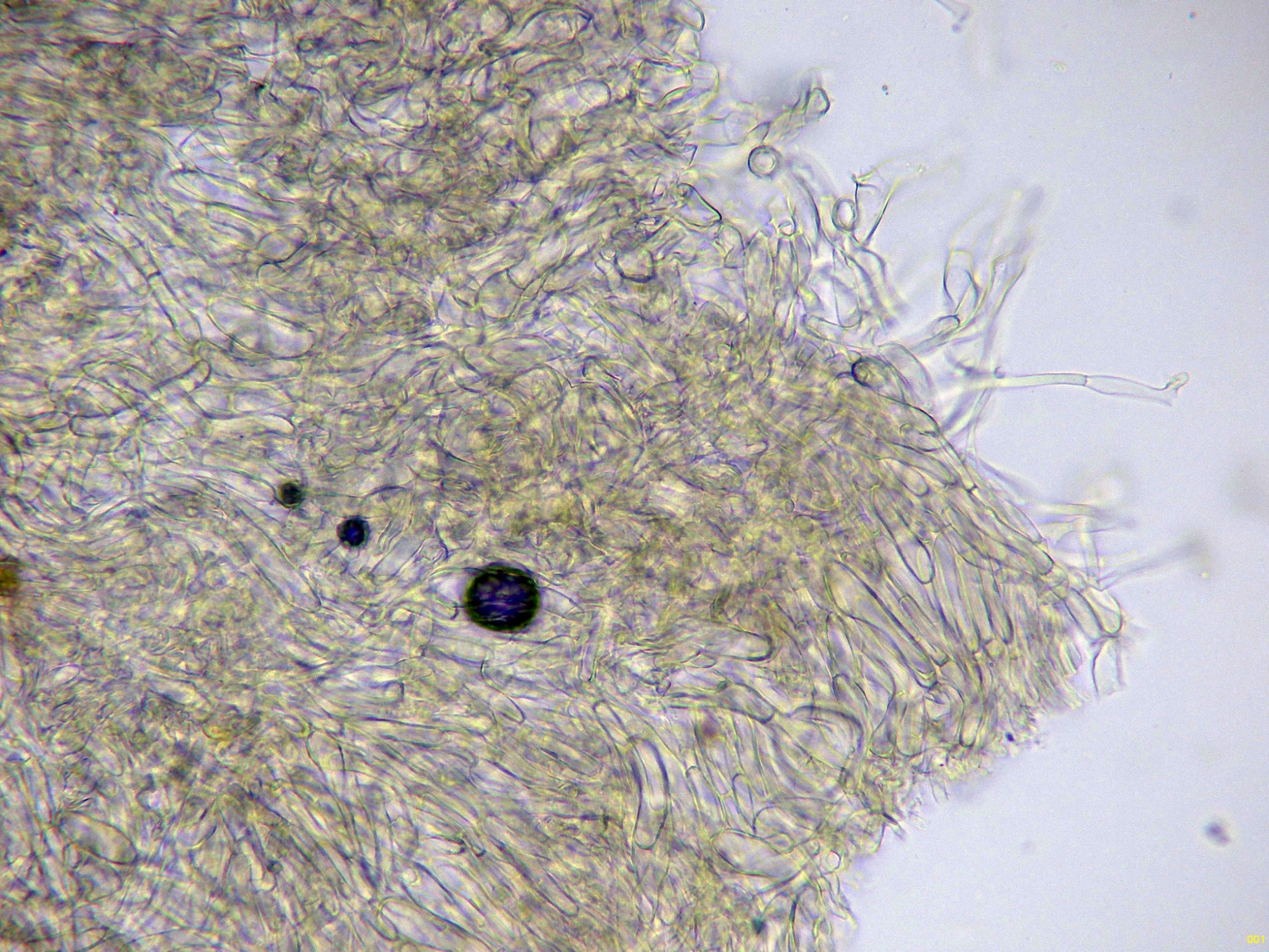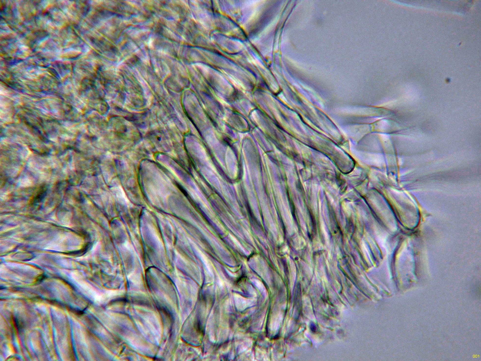 Las hifas del excípulo ectal en reactivo de Melzer: