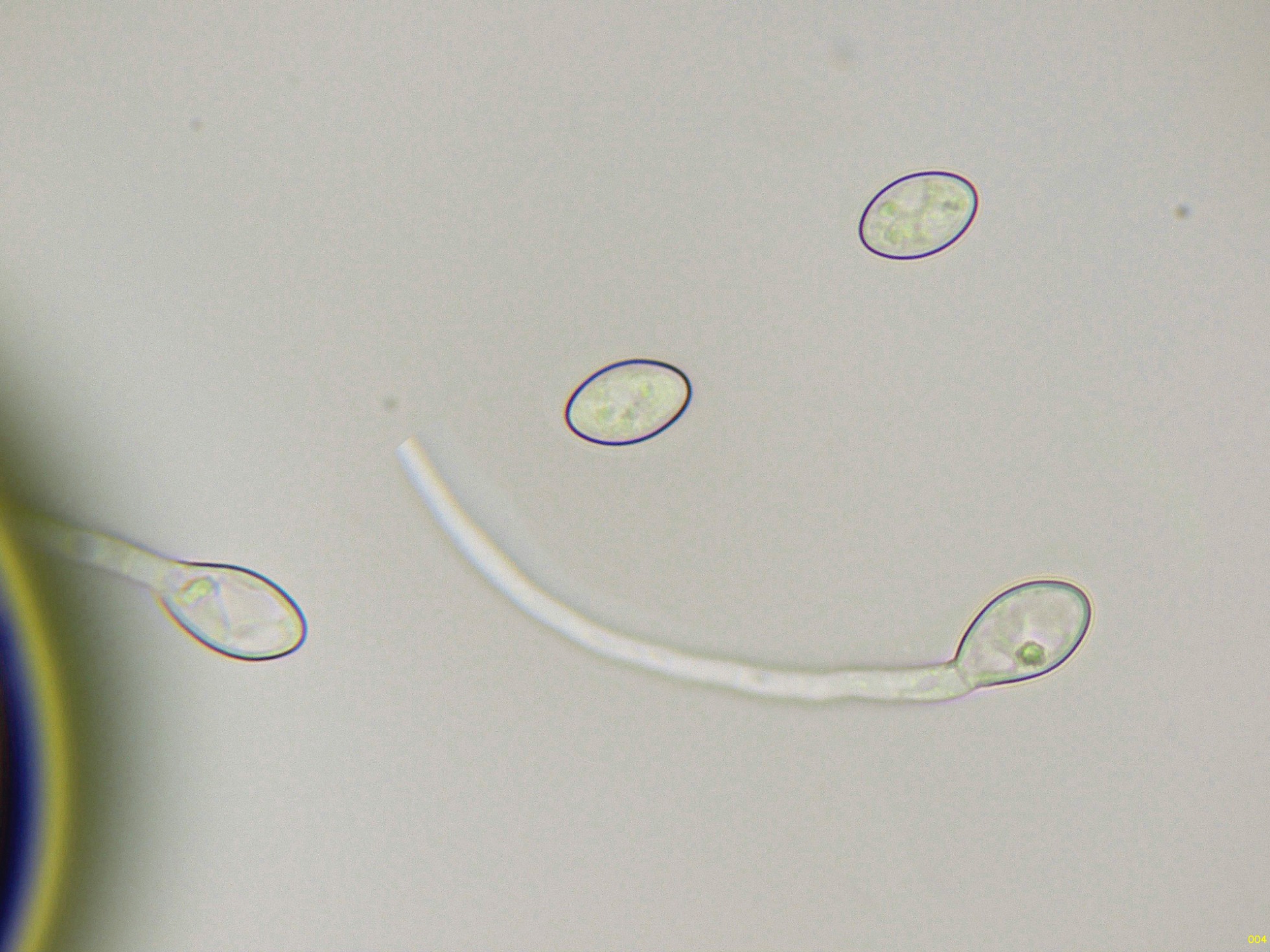 No pude obtener una buena cantidad de esporas por medio de la esporulación natural, solo unas pocas que al observarlas pude comprobar que ya estaban germinando: