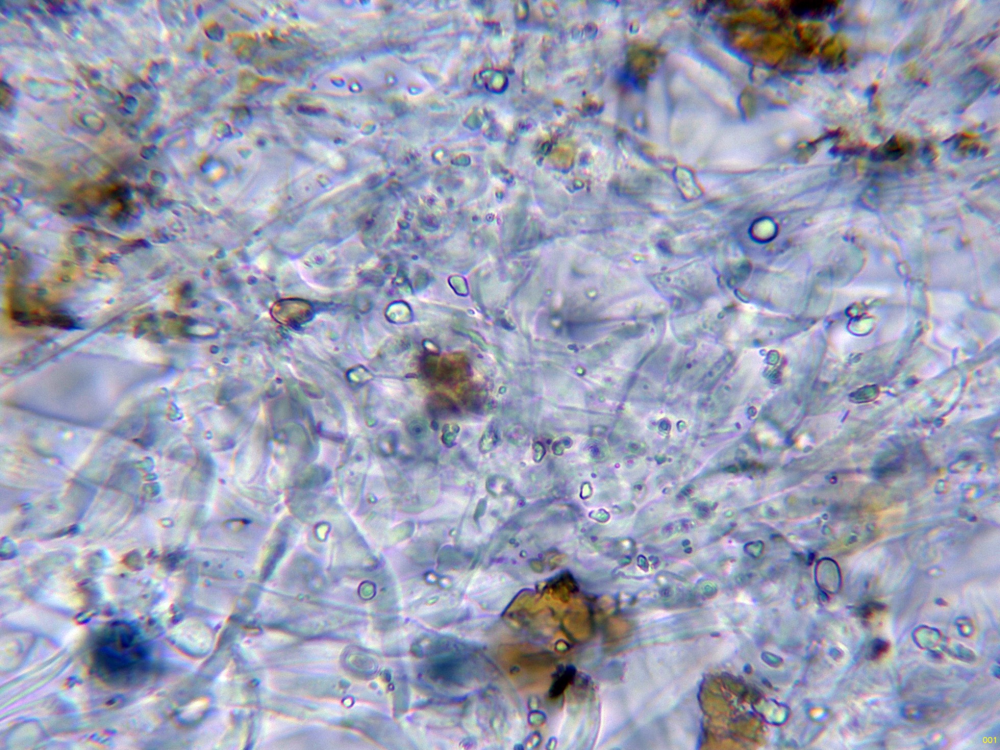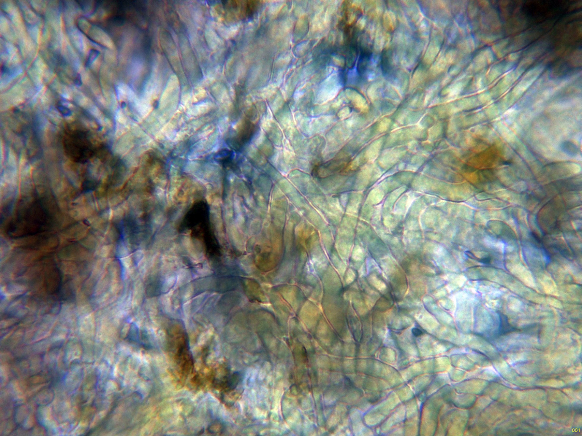 Las hifas de la subpellis en agua, estas hifas ya más hialinas: