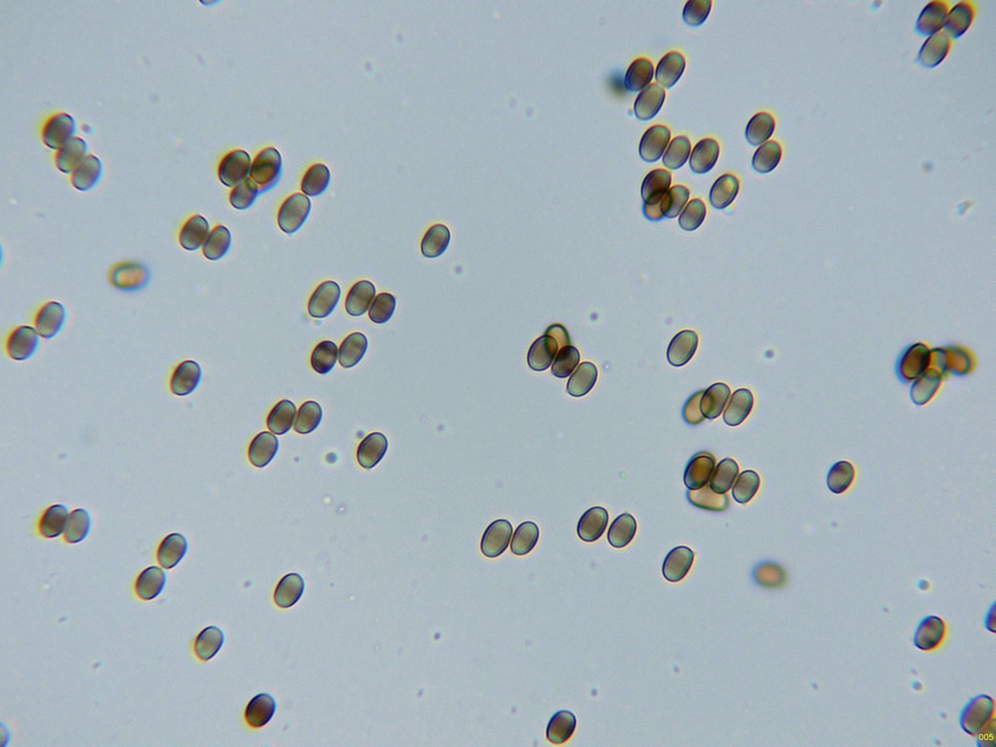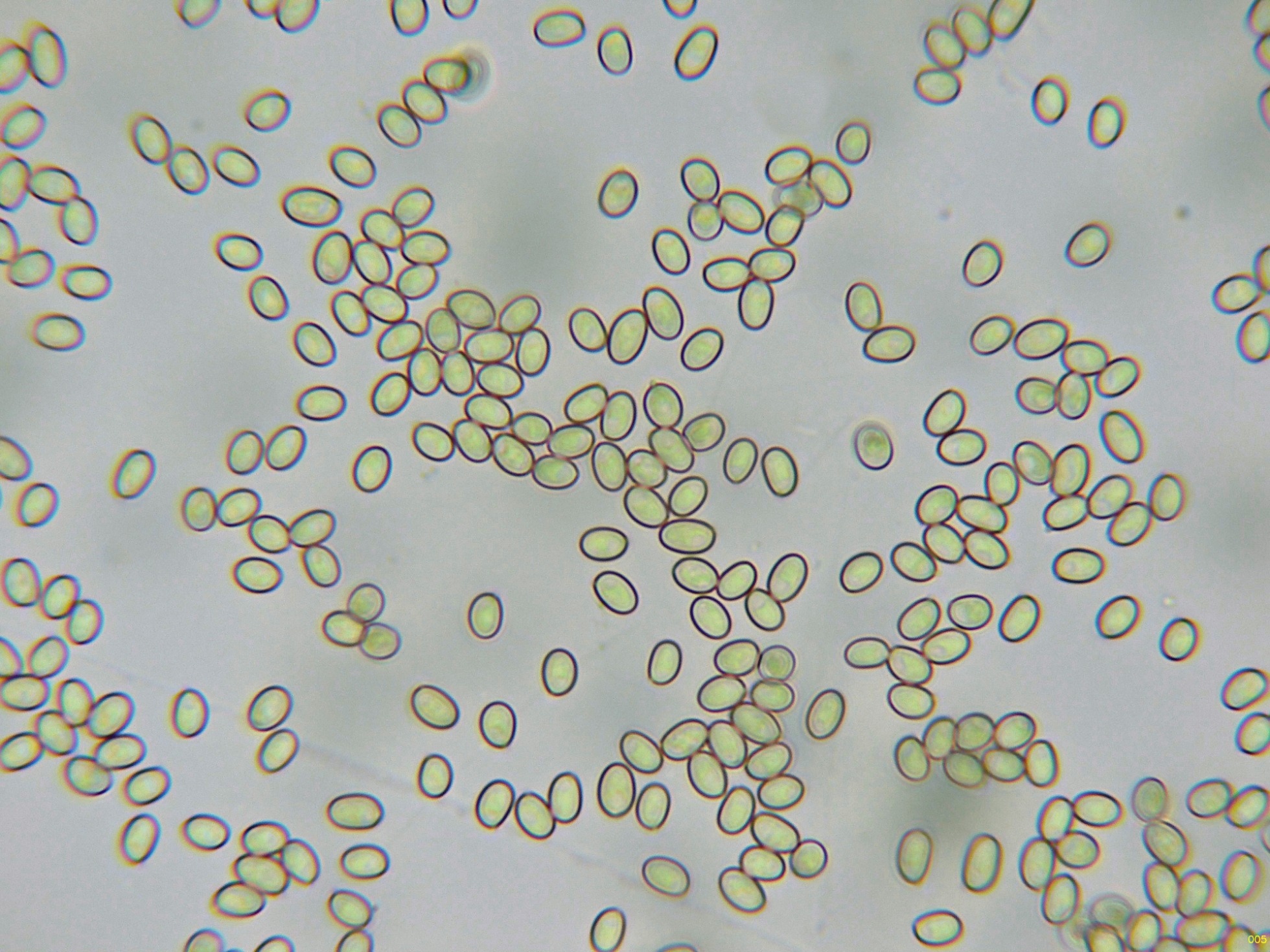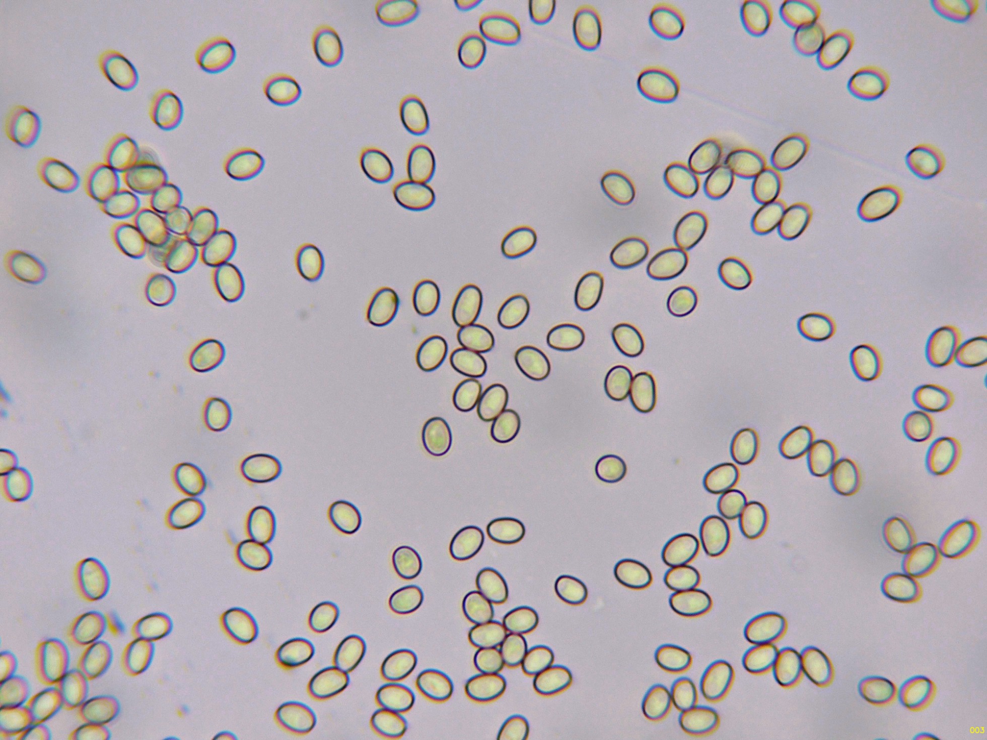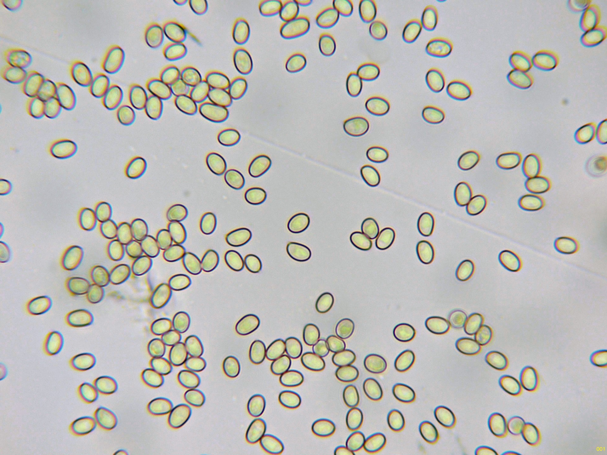 Las esporas en Reactivo de Melzer, con un comportamiento dextrinoide: