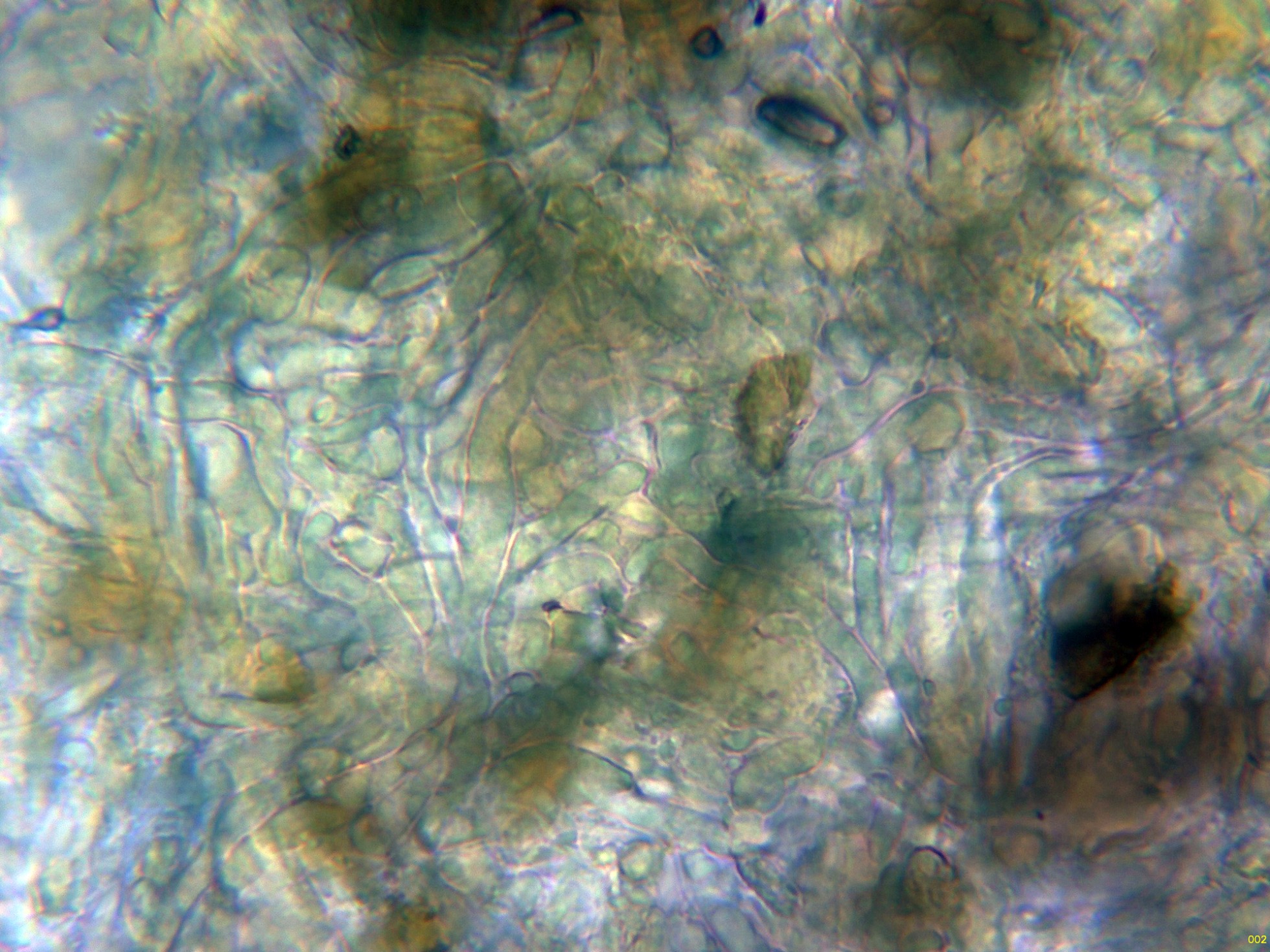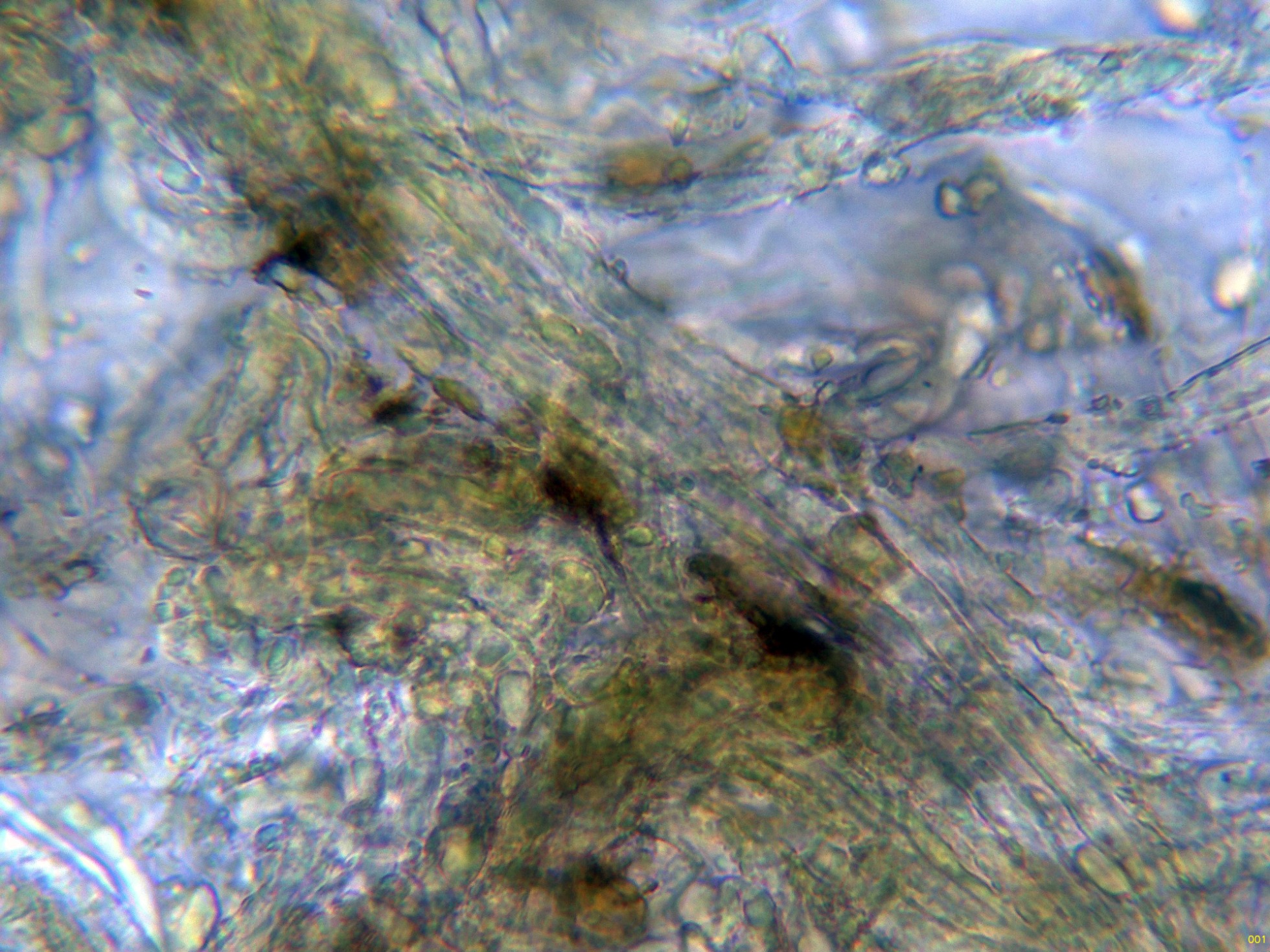 Las hifas de la suprapellis en agua con pigmento intracelular ocráceo: