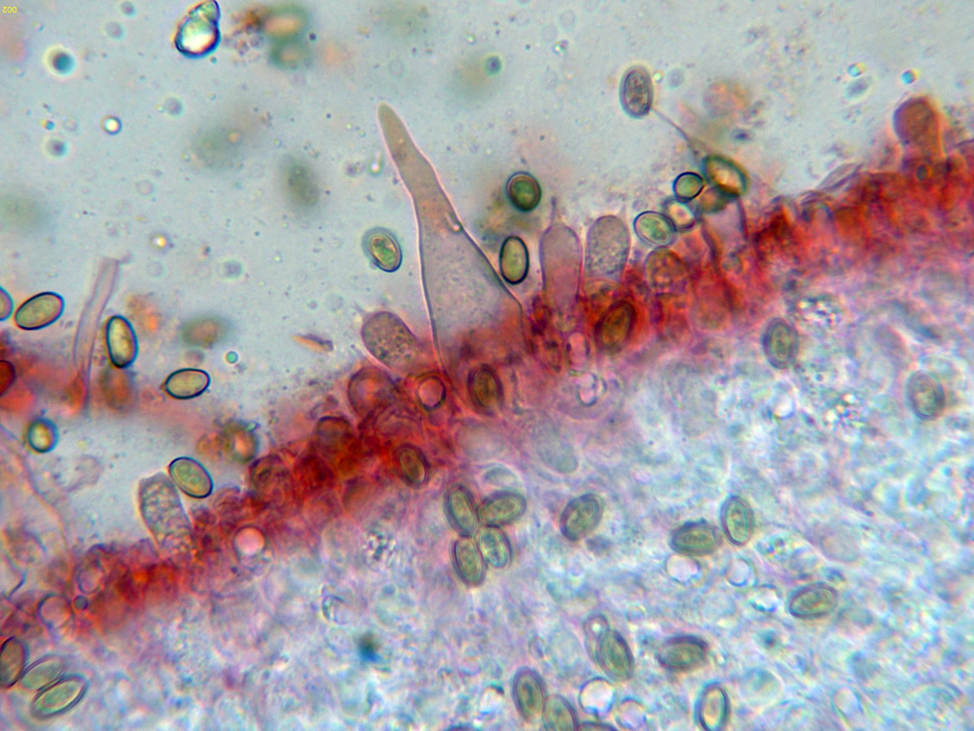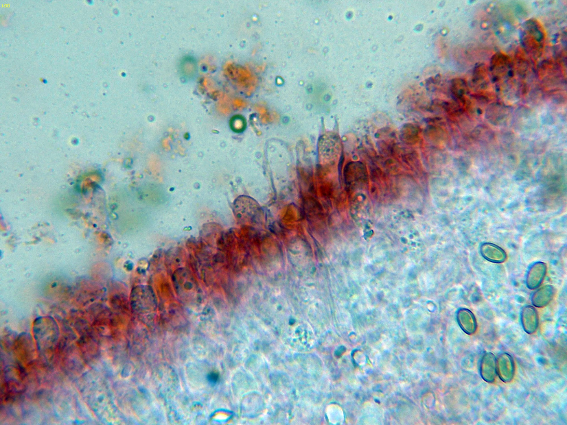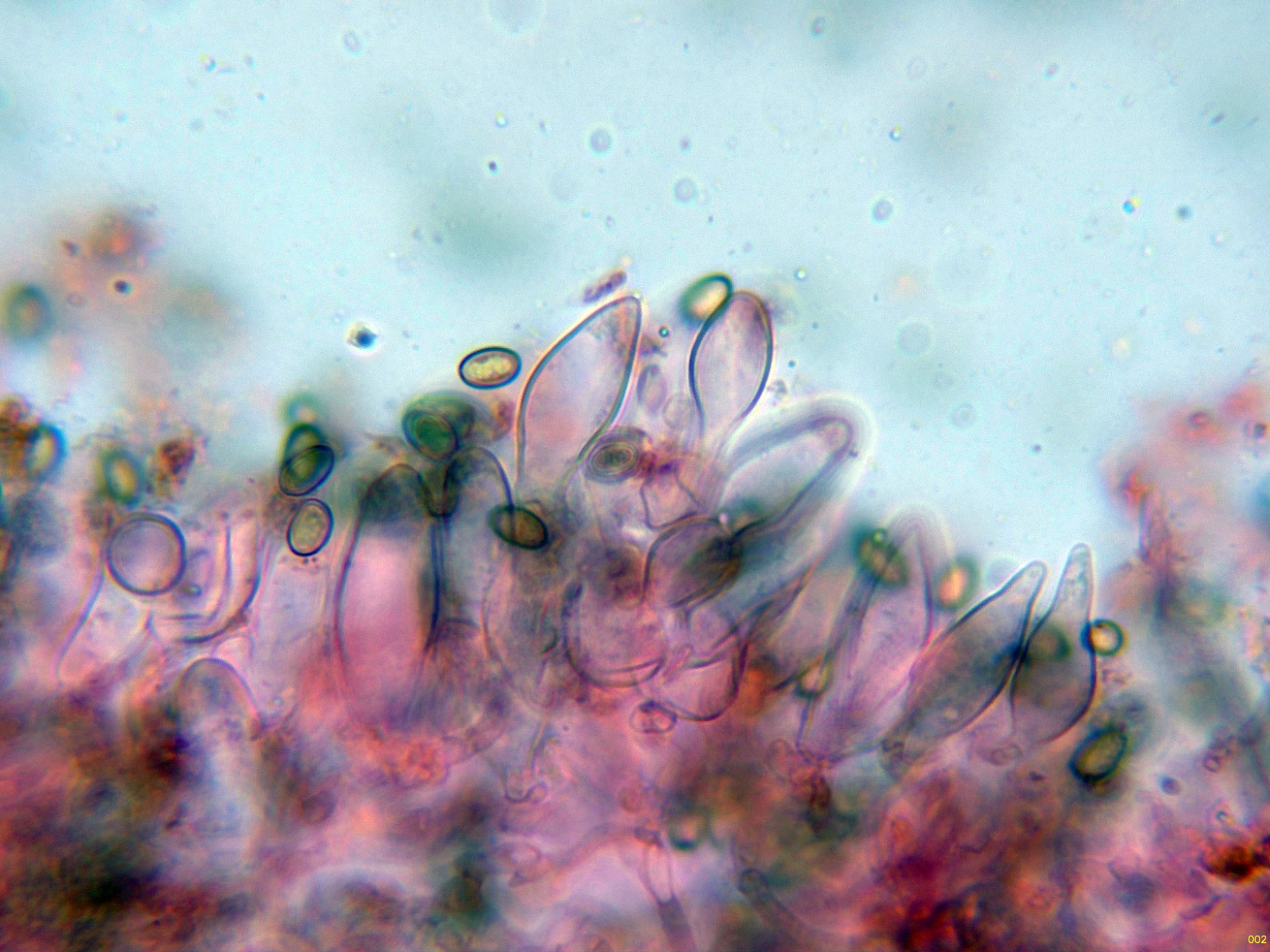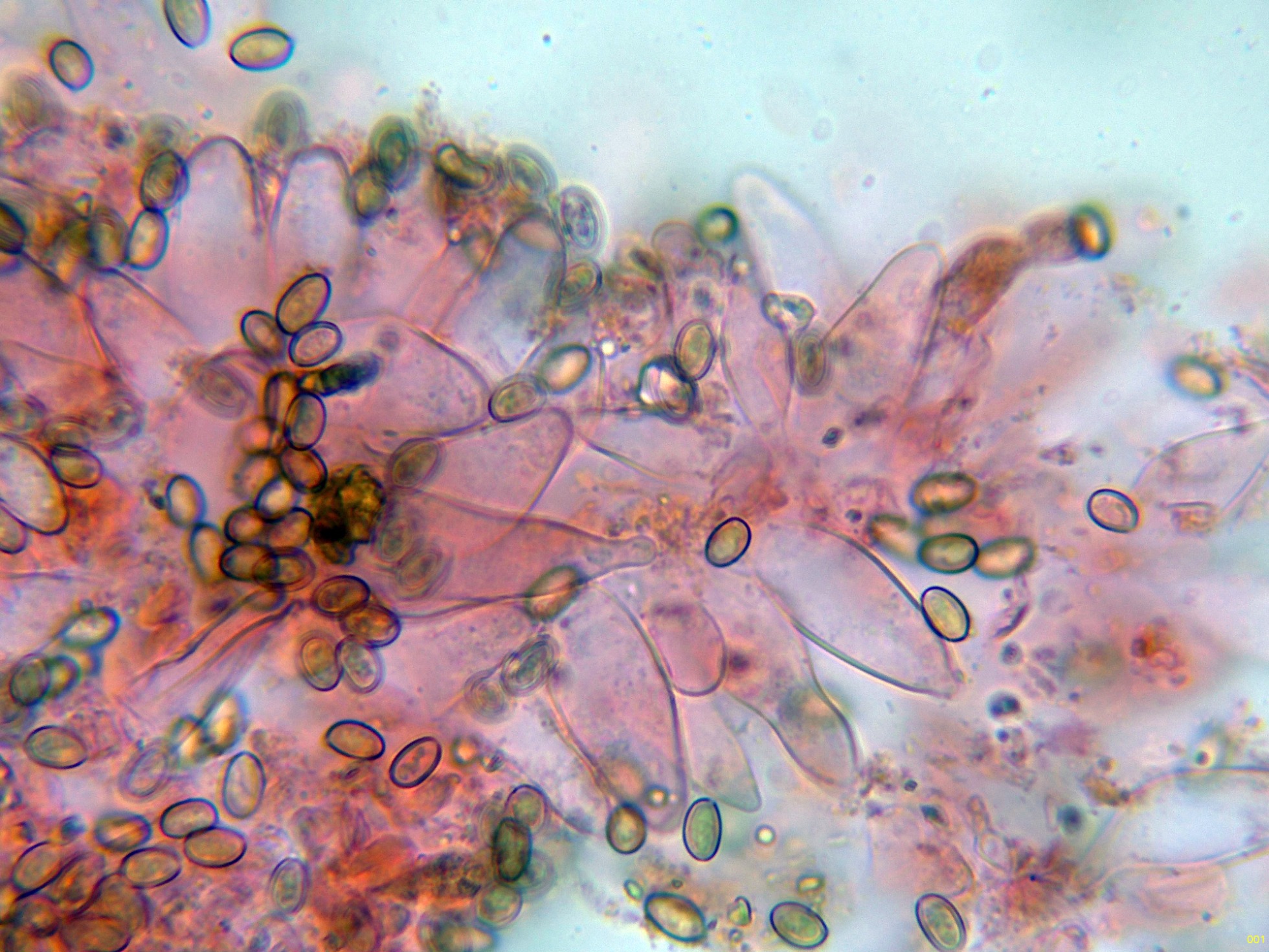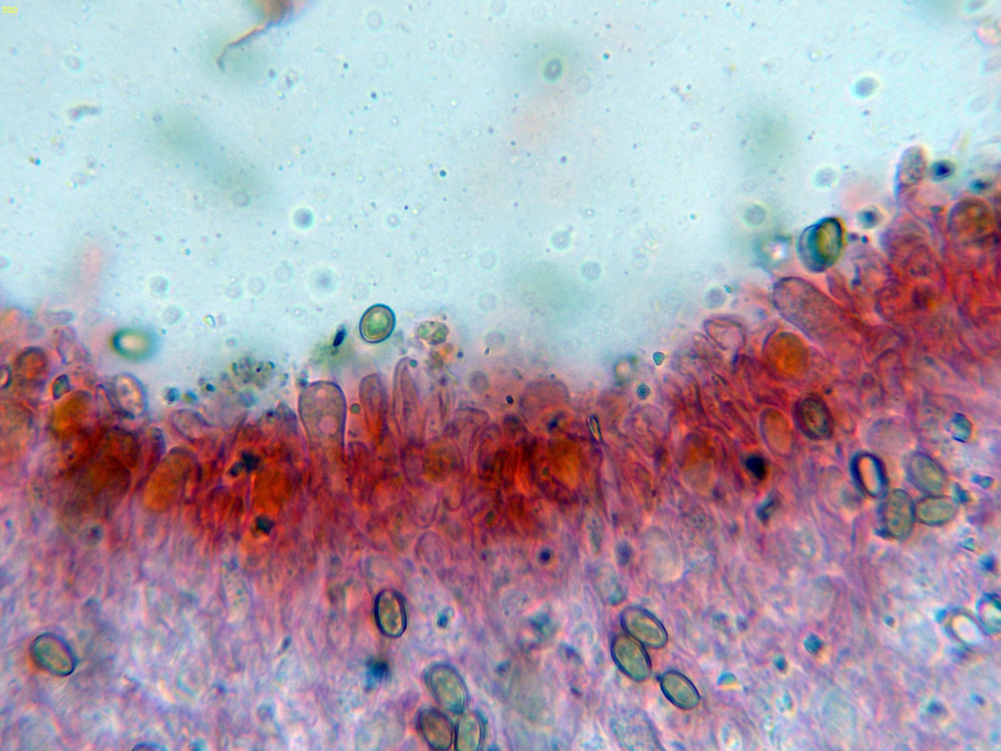 En la parte superior del pie se pueden observar unas escasas células terminales a modo de caulocistidios: