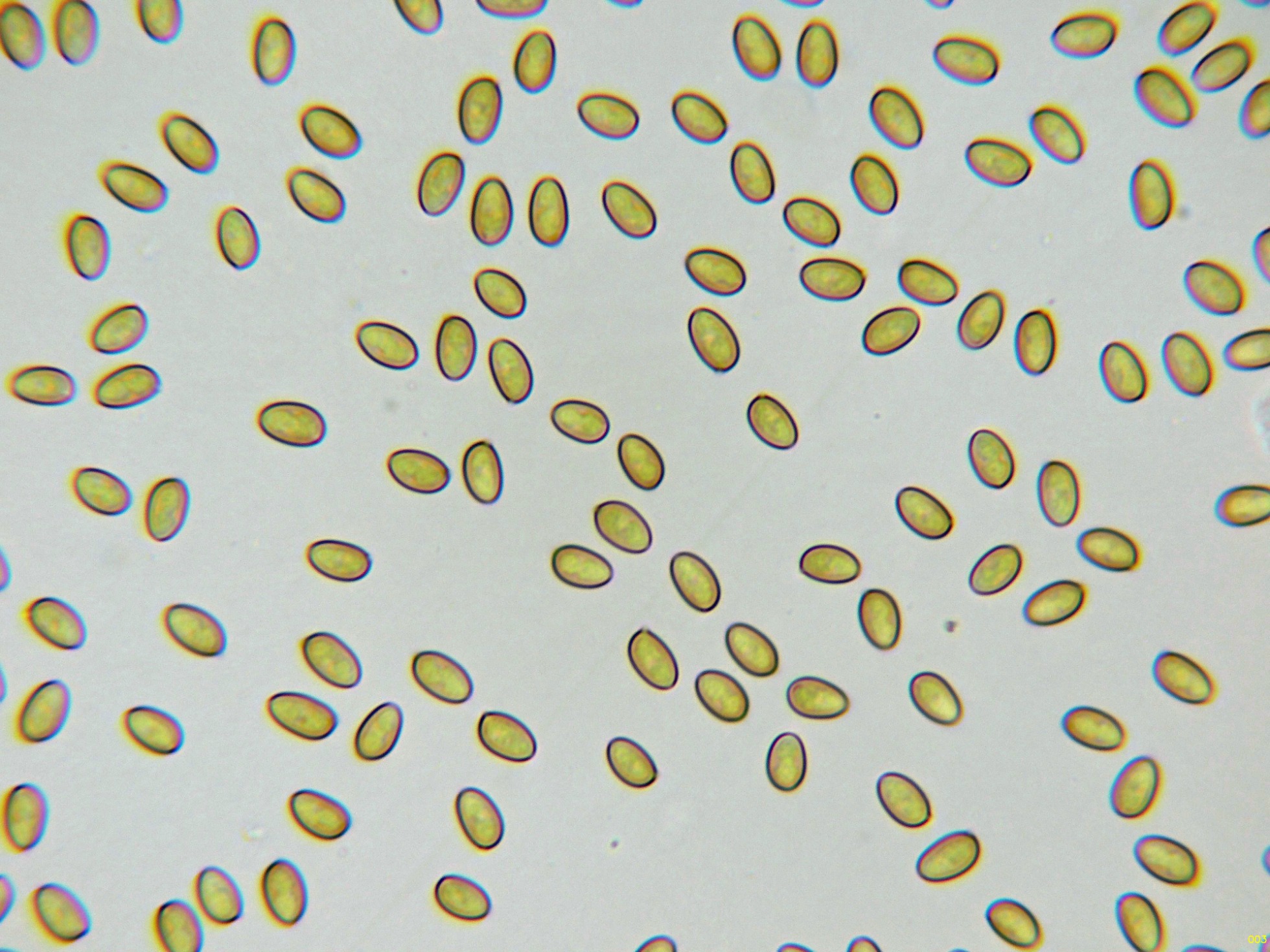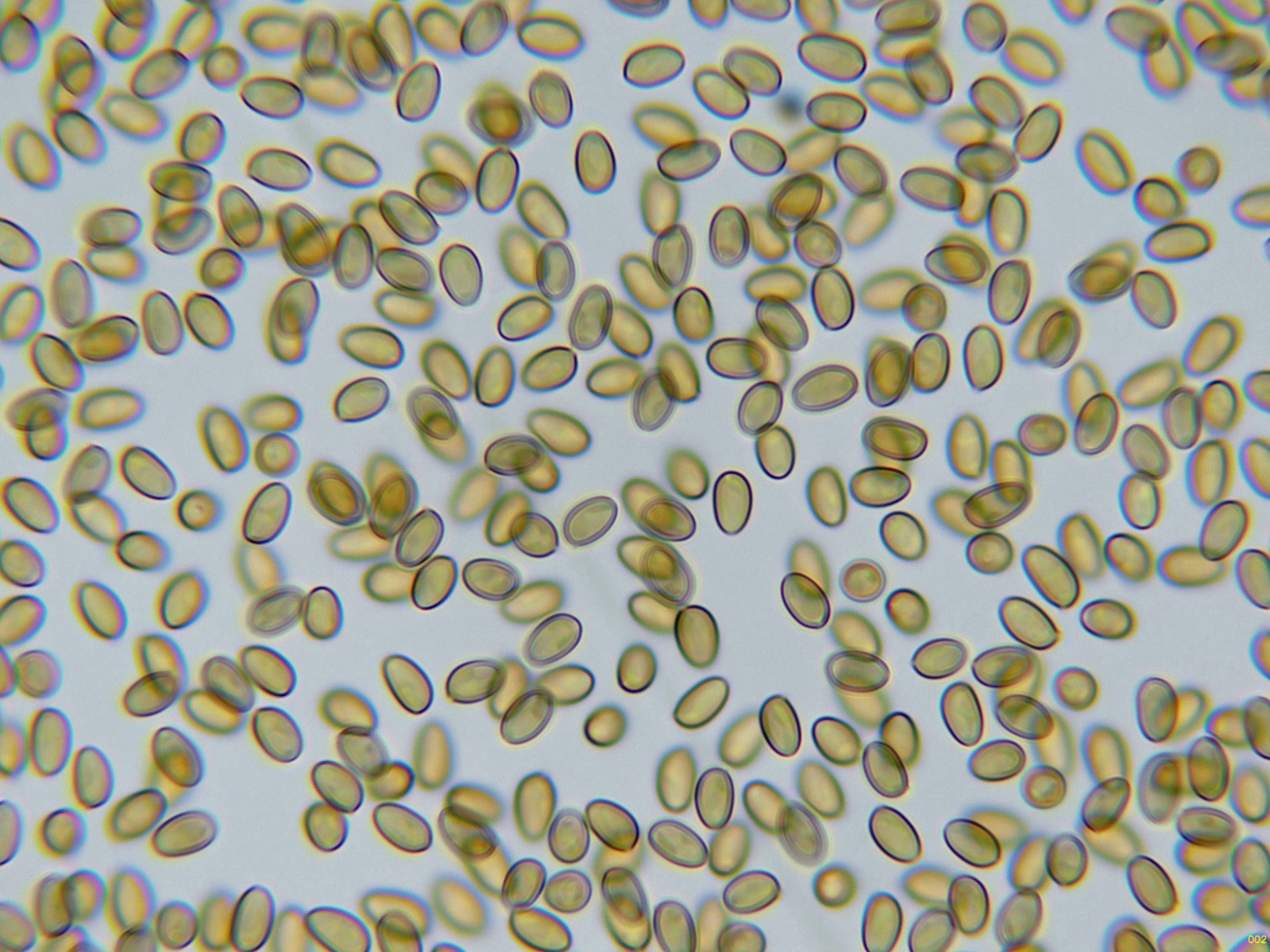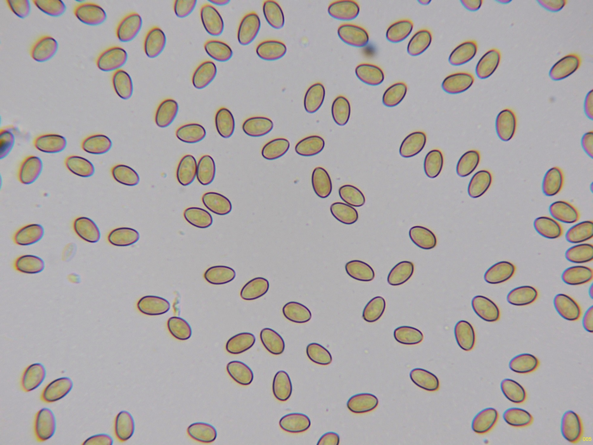 Las esporas en Reactivo de Melzer, sin prácticamente ninguna reacción aparente, inamiloides: