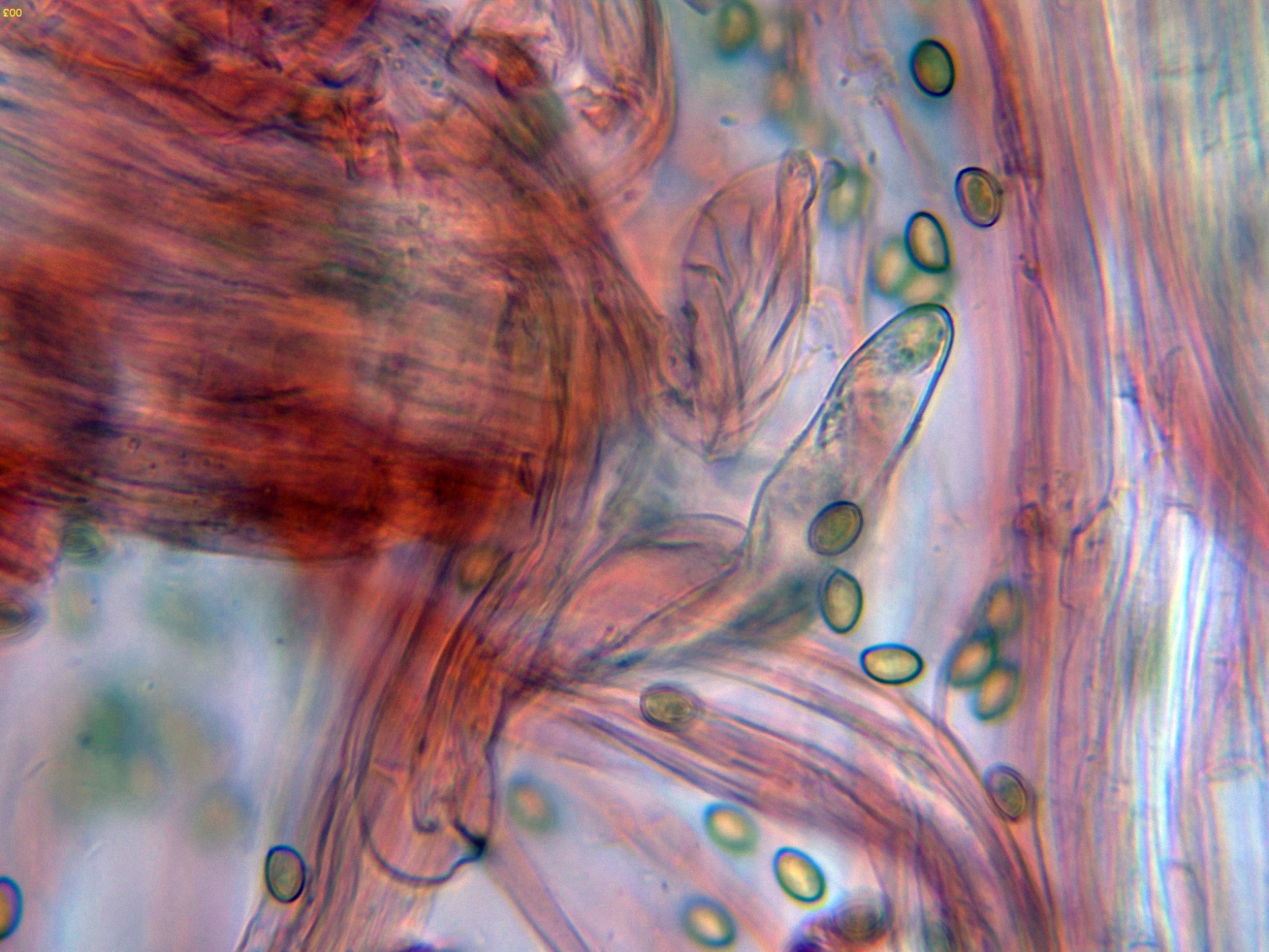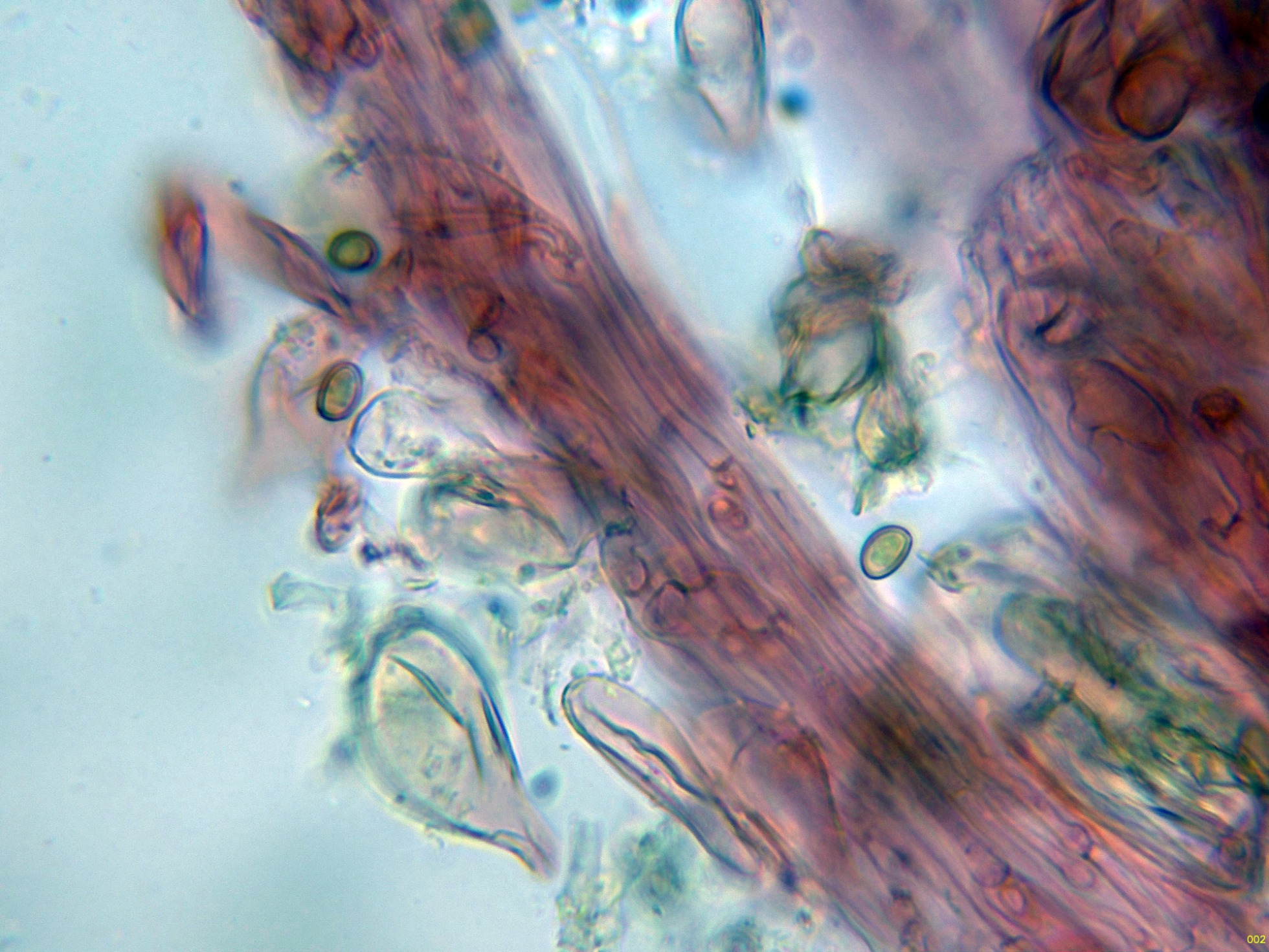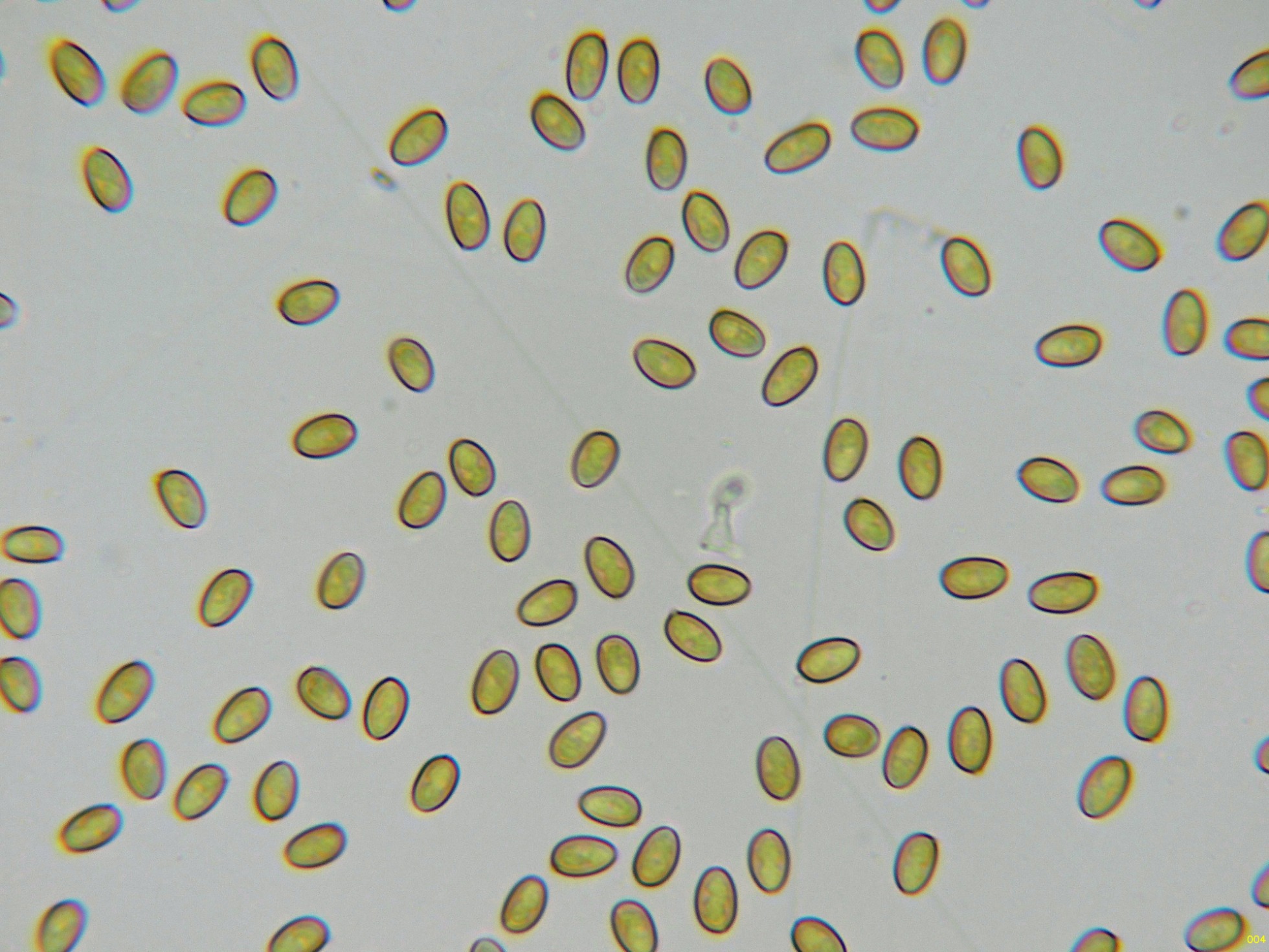 Las esporas en Reactivo de Melzer, sin prácticamente ninguna reacción aparente, inamiloides:
