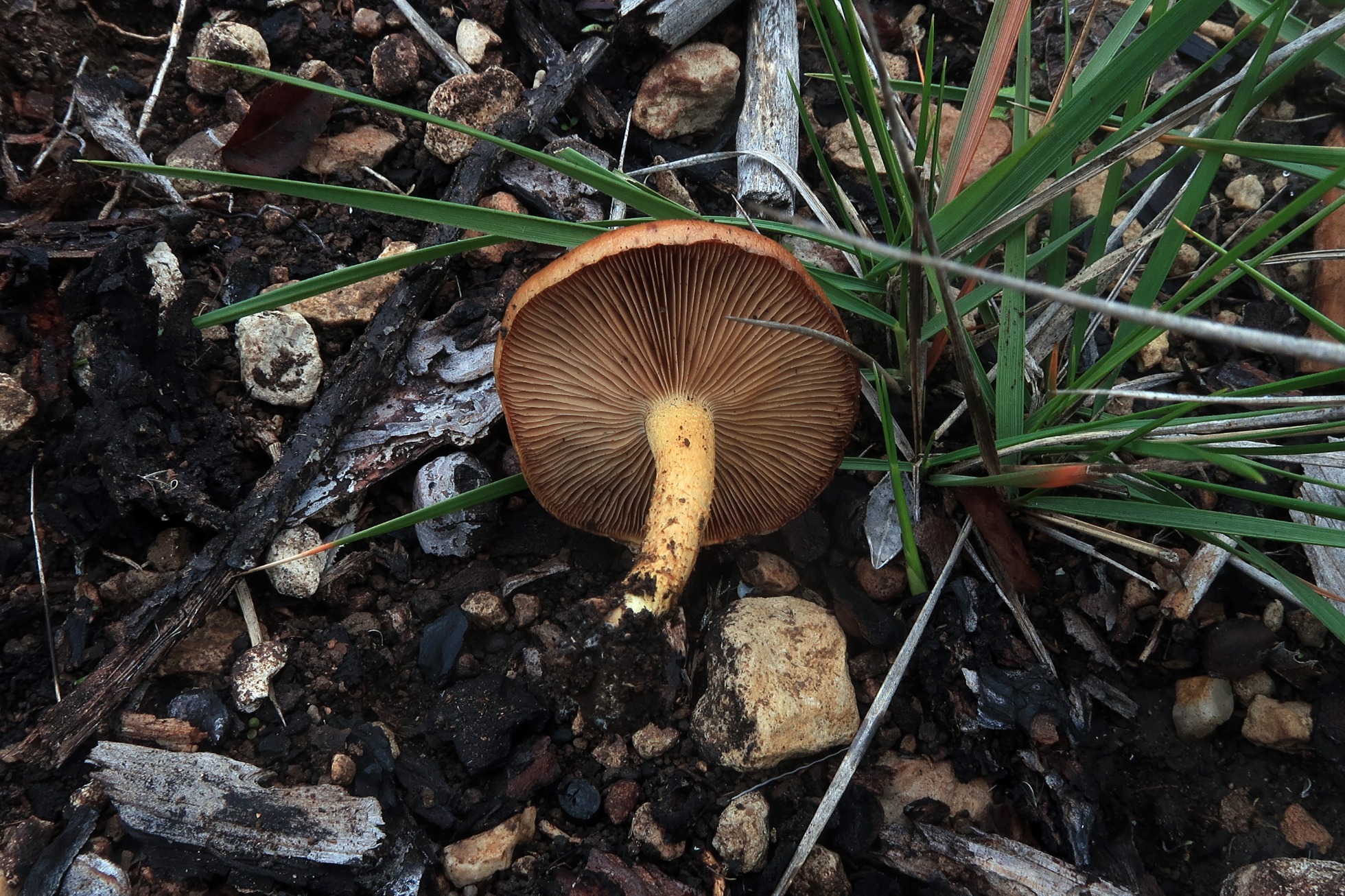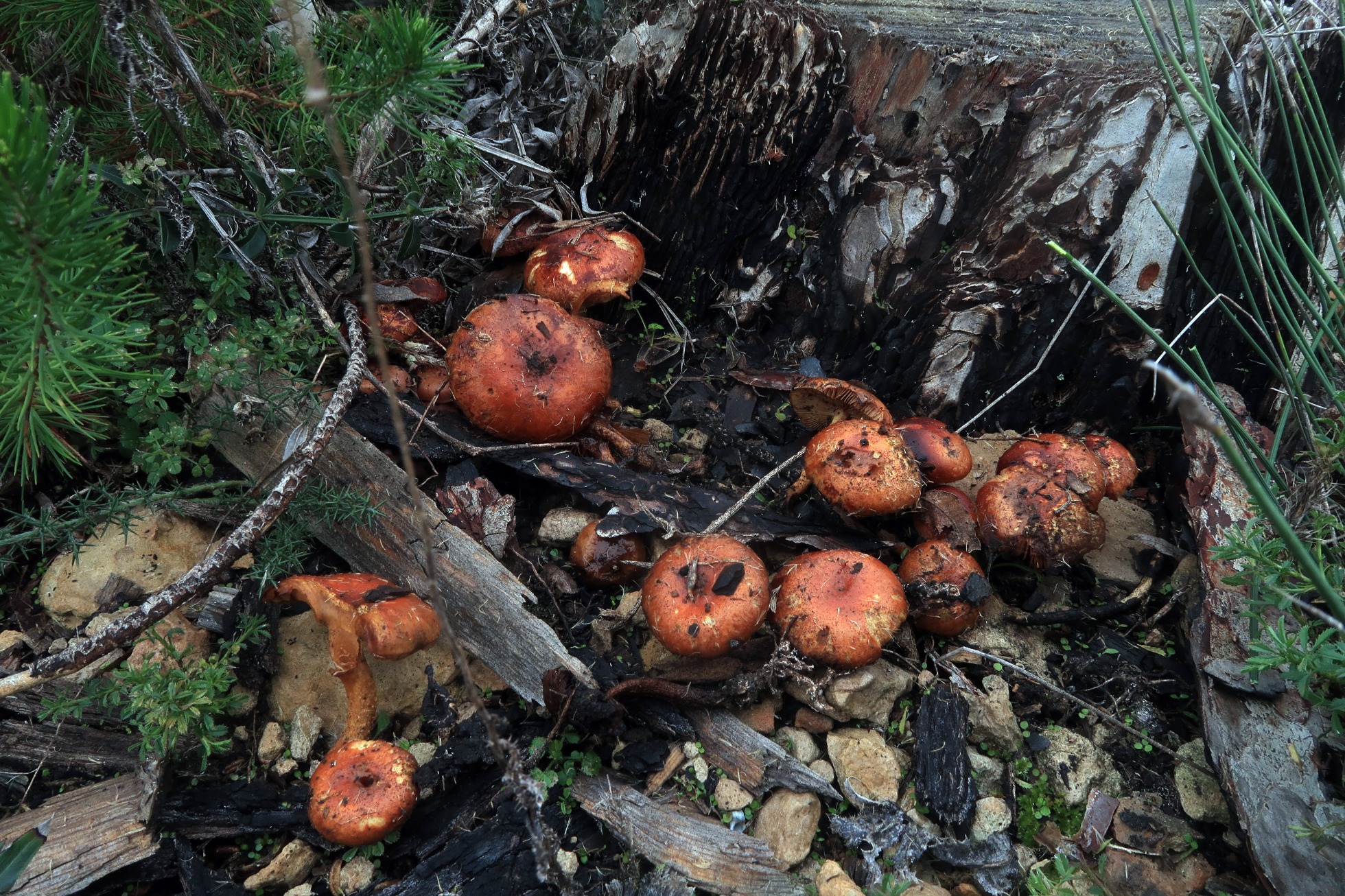 Una Pholiota propia de quemados que se me resistía, admito que el día 6 si decidí visitar una zona quemada, aprovechando el momento de aparición, fue con la única intención de ya una vez por todas poder tachar el cromo, lo que se dice "llegar y besar el Santo", la había a cientos, sobre suelo carbonizado tenemos la: