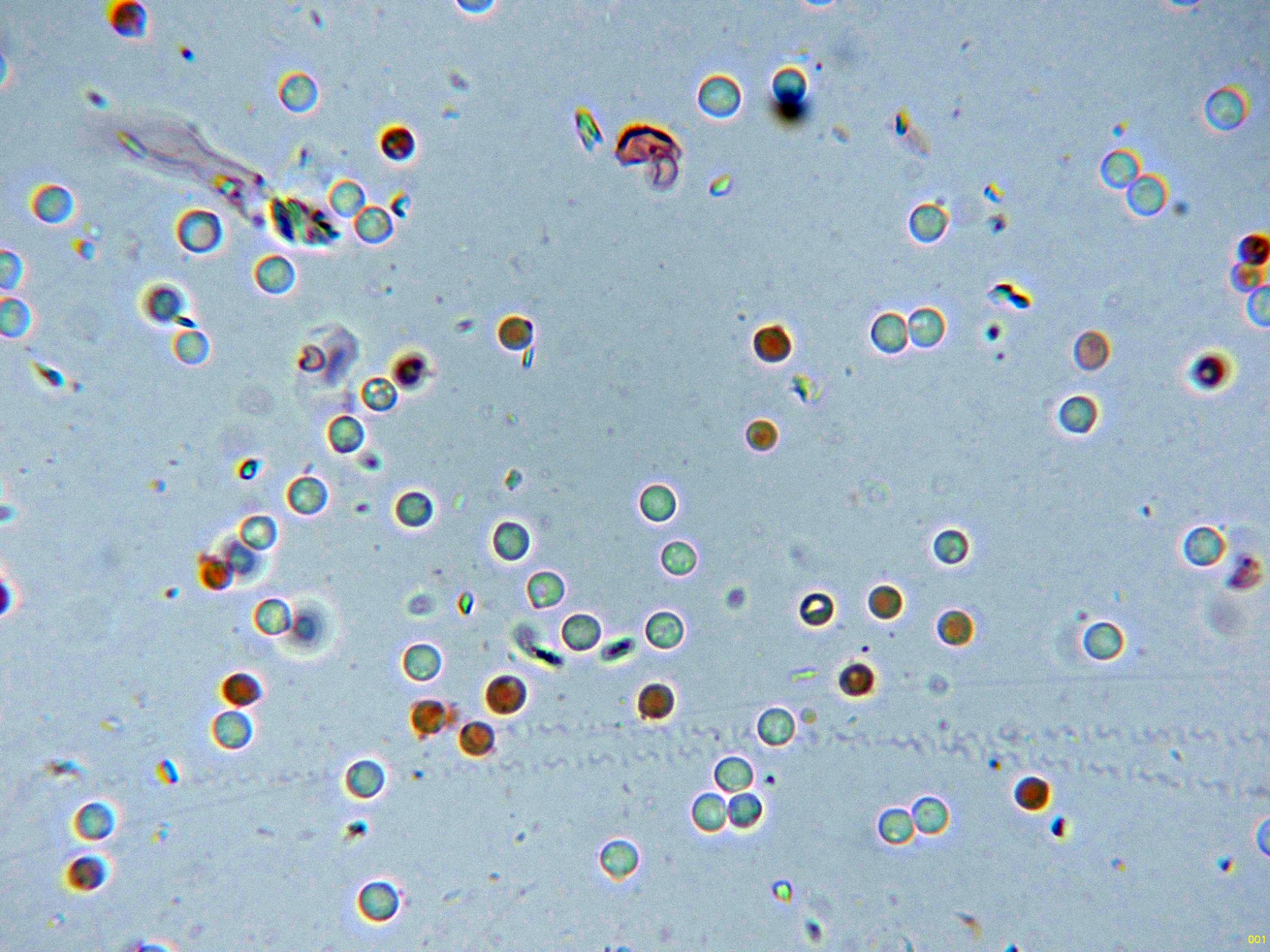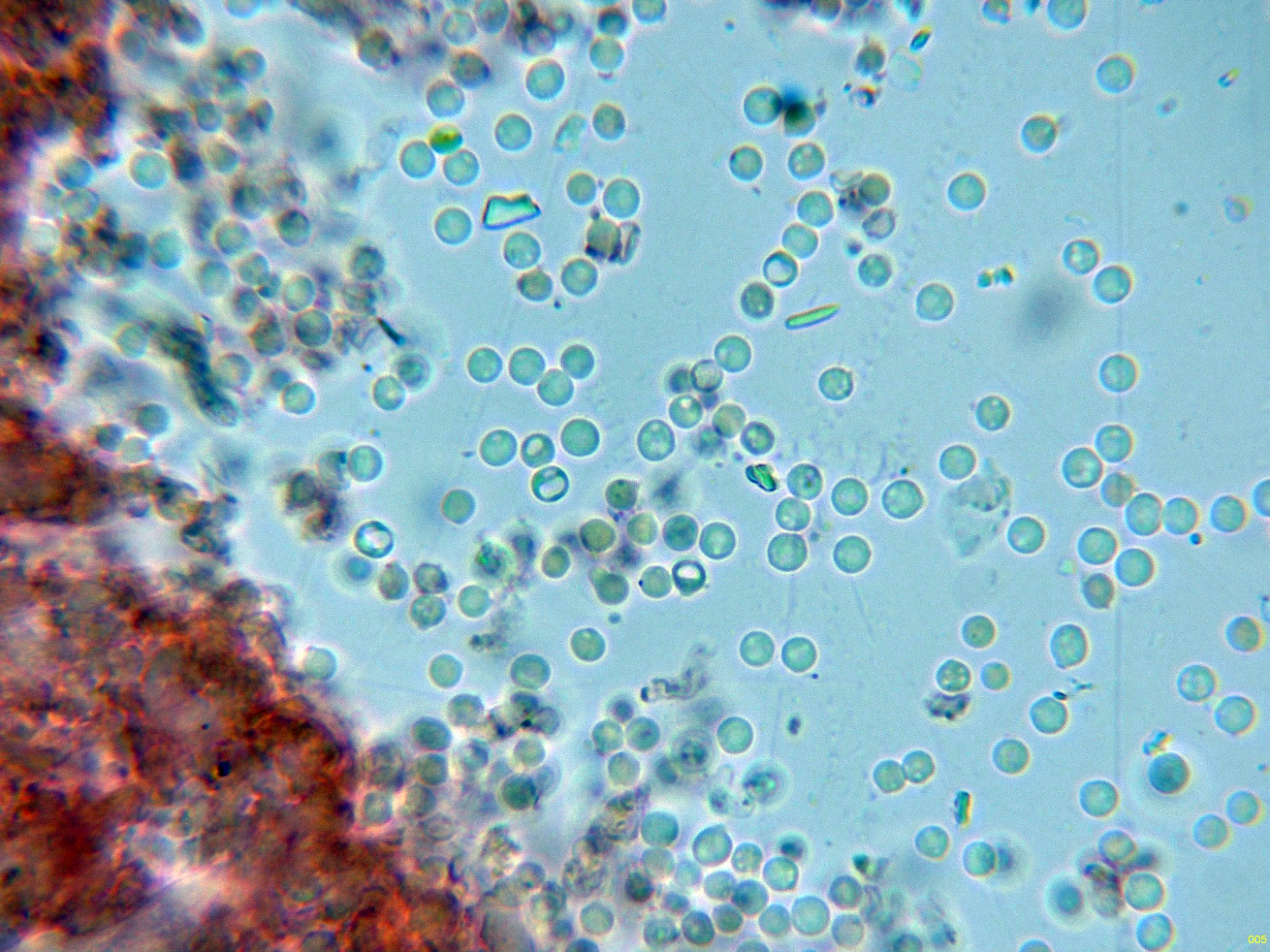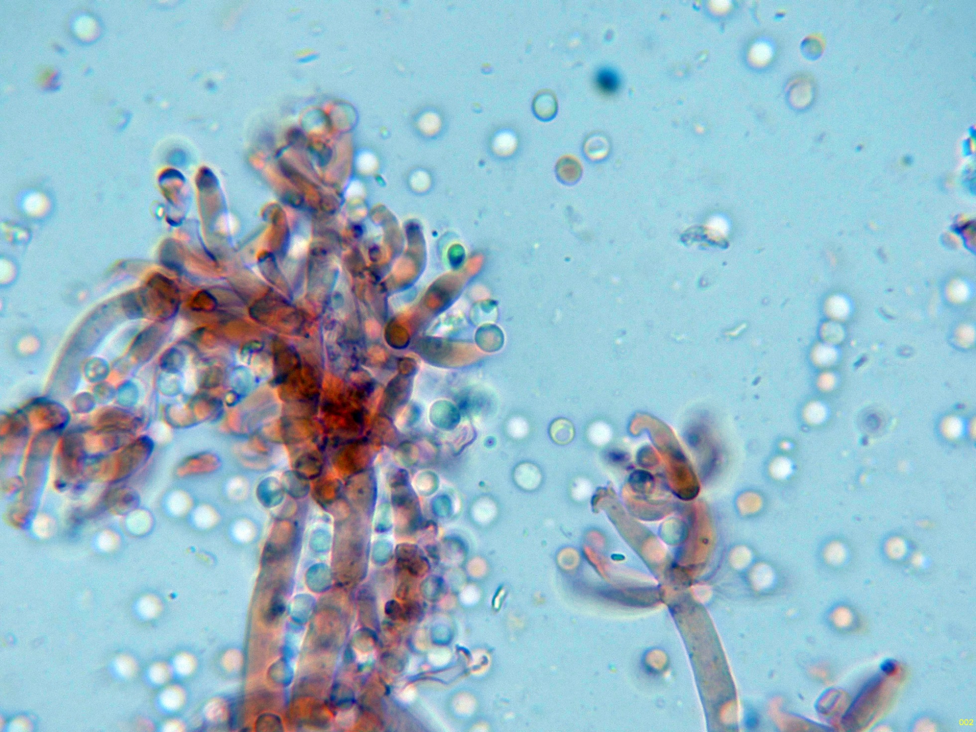 Sus pequeños conidios esféricos en solución de Rojo Congo: