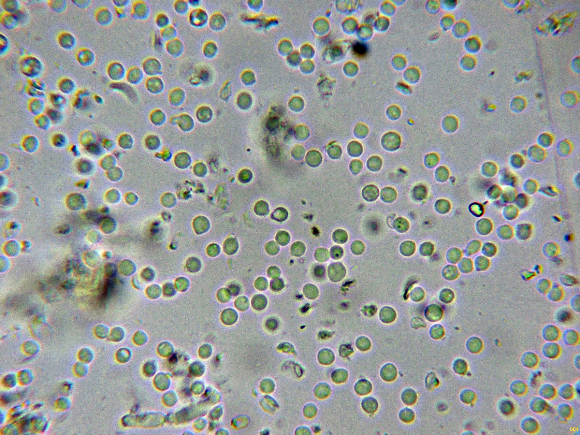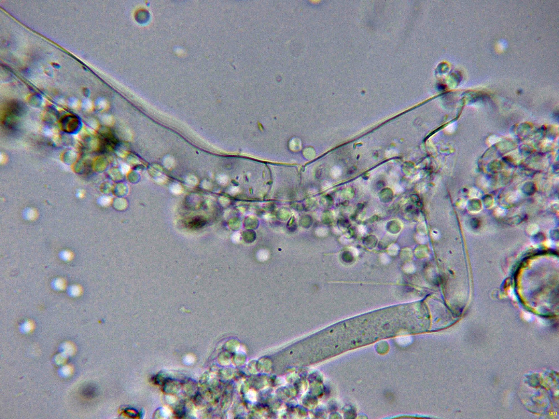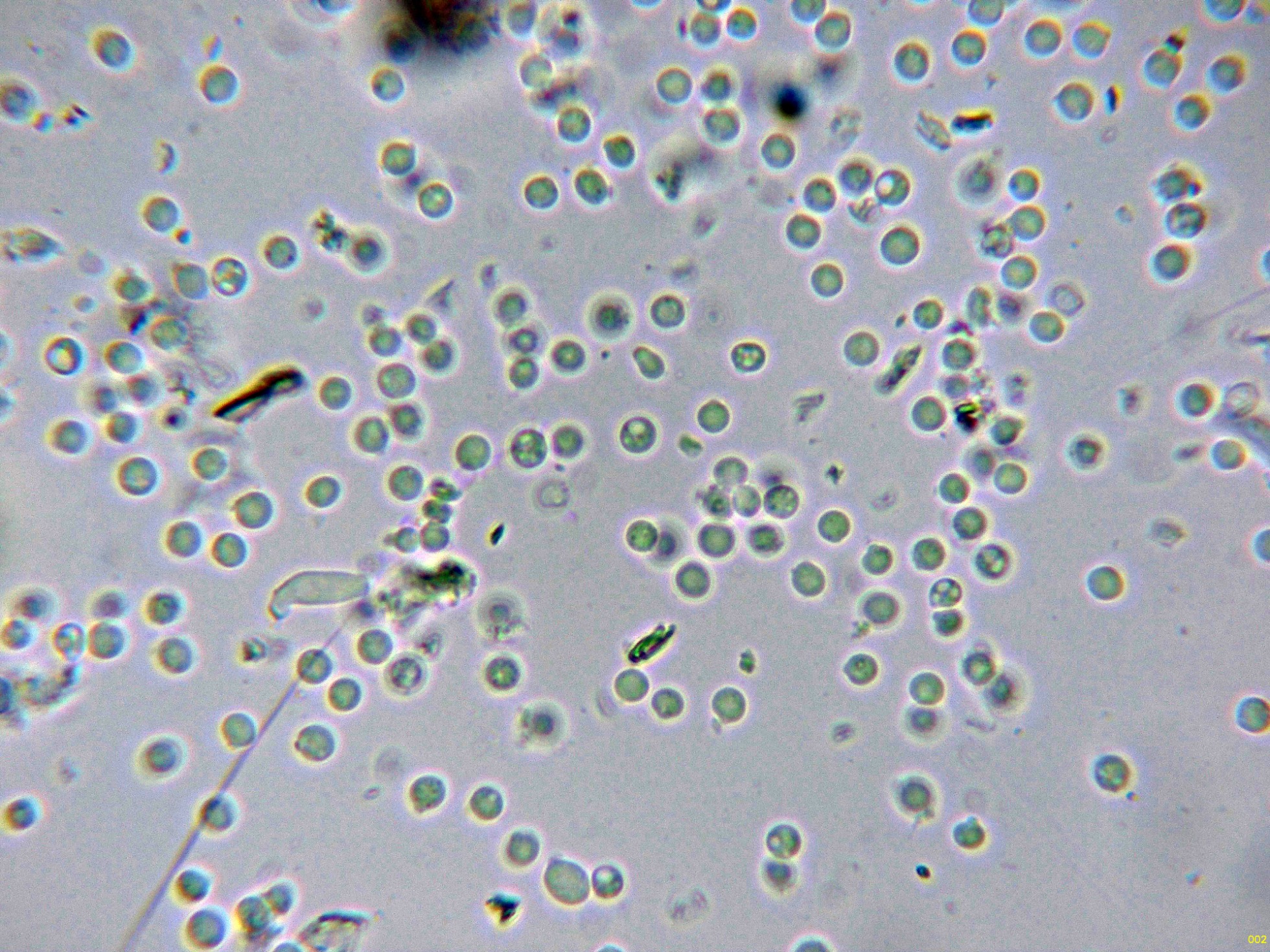 Sus pequeños conidios esféricos en solución de Rojo Congo: