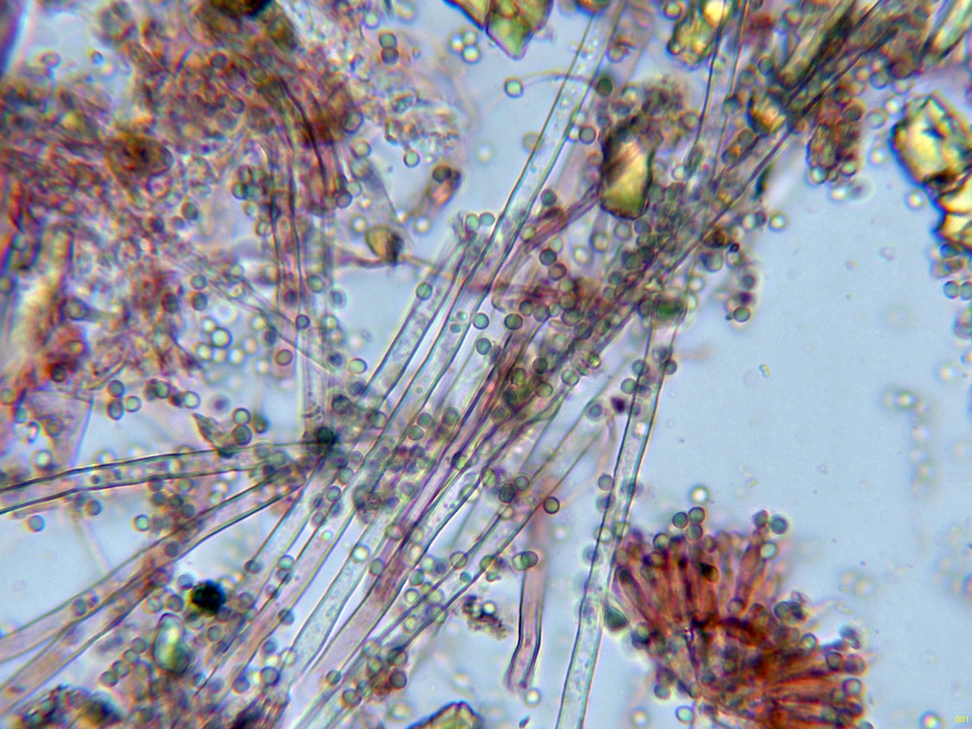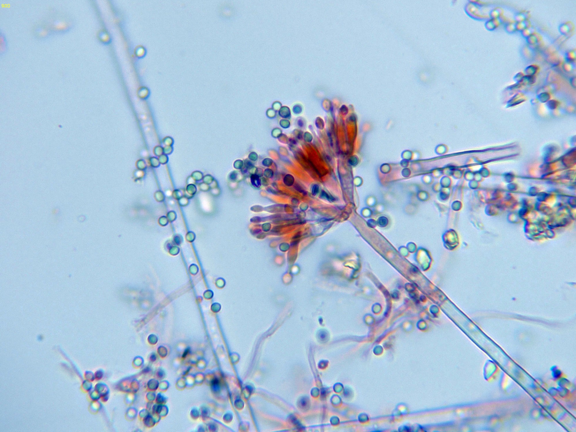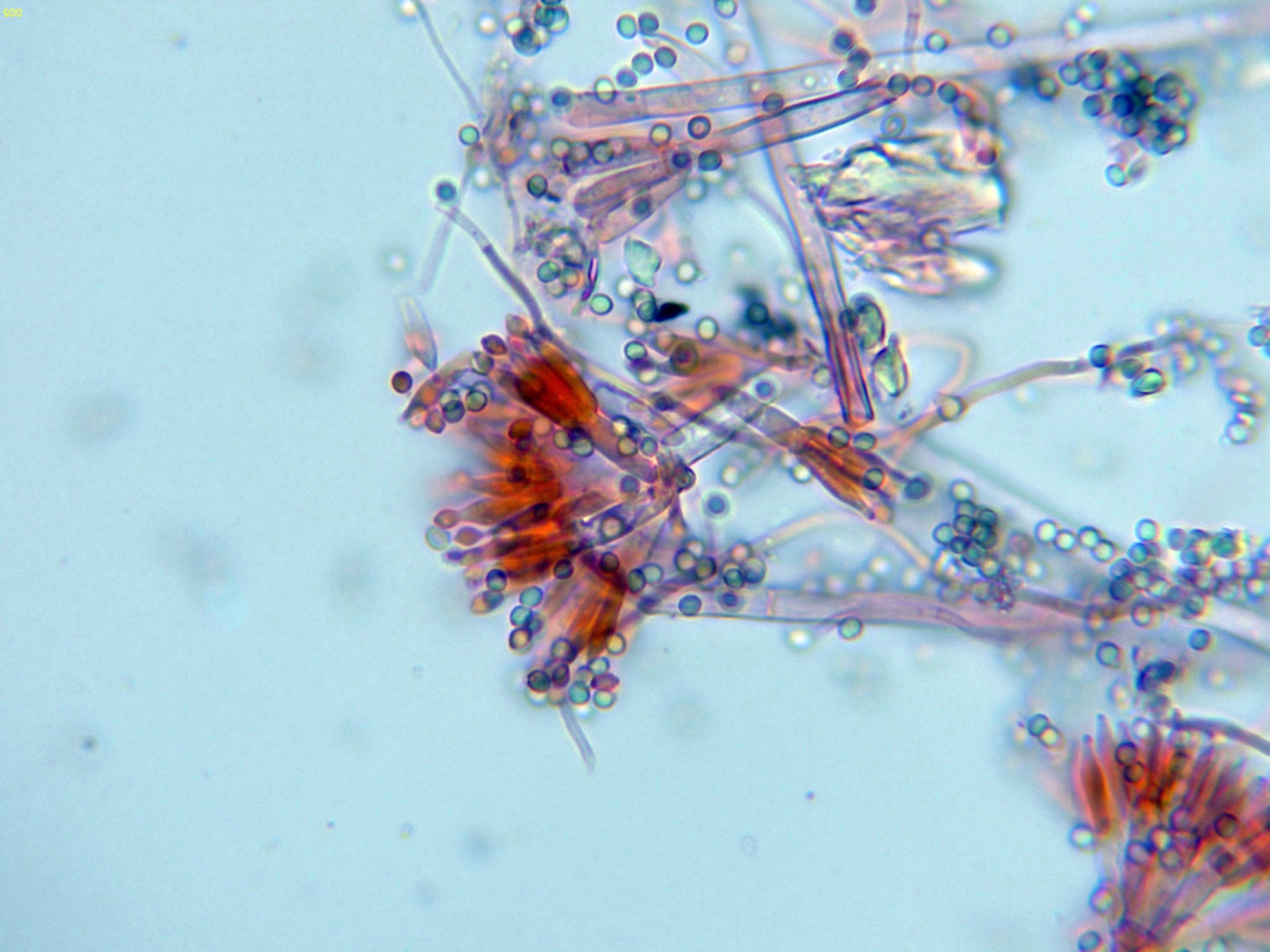 Estudio contrastado con la información del documento del 22 de septiembre de 2014, con el título "Polyphasic taxonomy of the genus Talaromyces", en el que se indican para el Talaromyces pinophilus unas medidas para las fiálides de 8.5–12 × 2–3 μm., unas medidas para las métulas de 10–11 × 2.5–3 μm. y unas medidas para los conidios de 2–3 × 2–3 μm., todos los parámetros muy acorde con los reflejados en el presente estudio. Añado una imágen con la microscopía del Talaromyces pinophilus extraída del mismo documento: