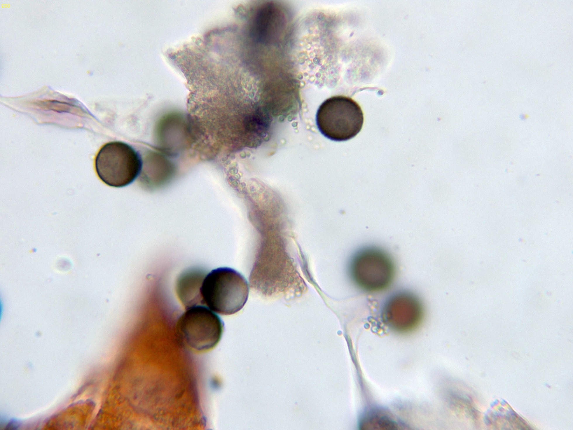 - Probablemente: Physarum newtonii T. Macbr. Microscopía.