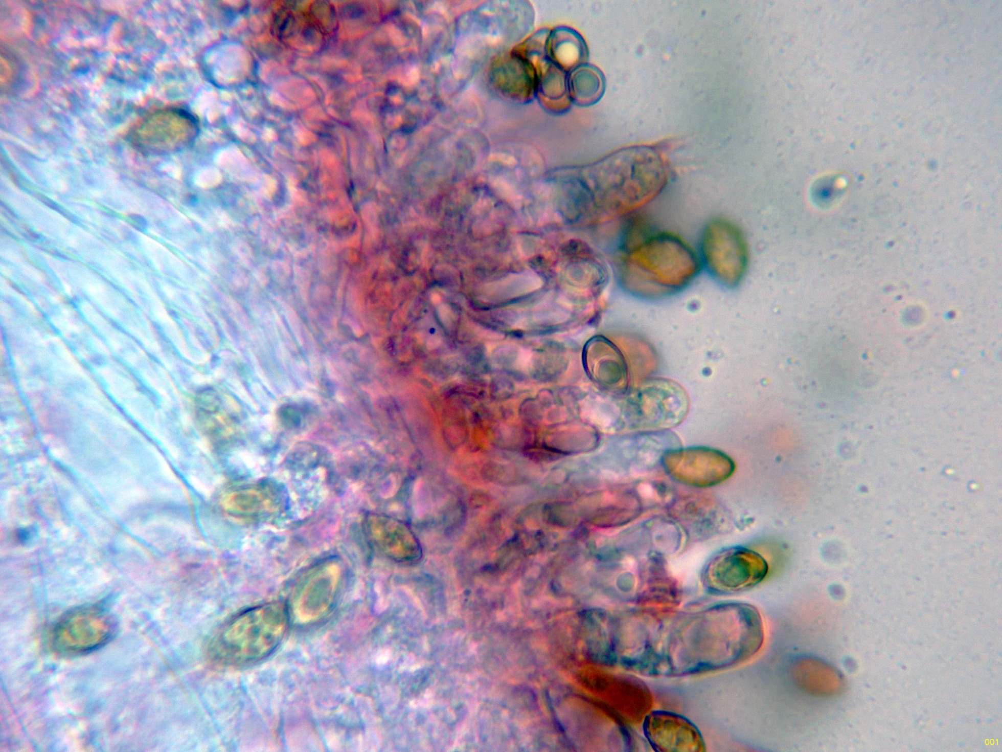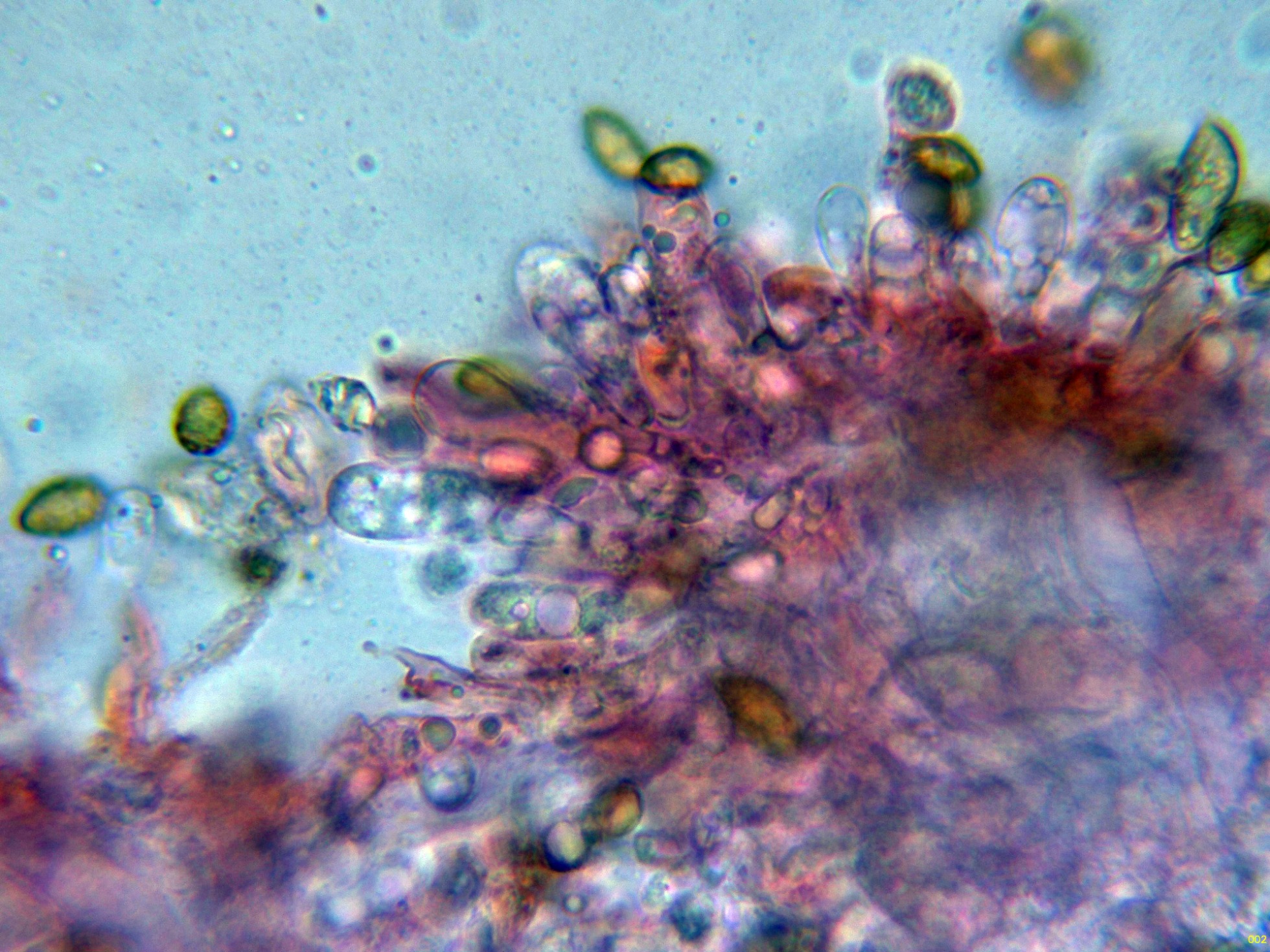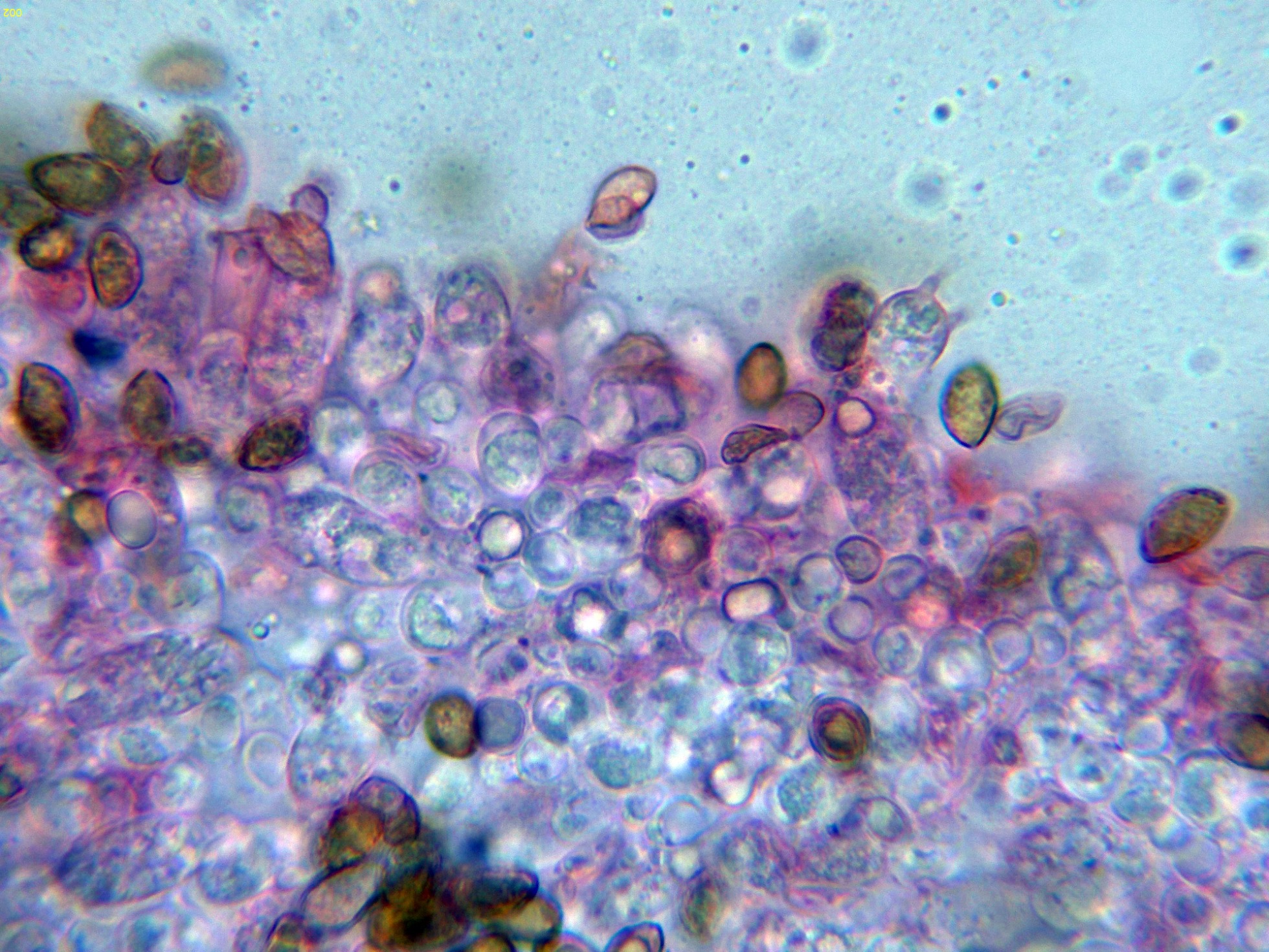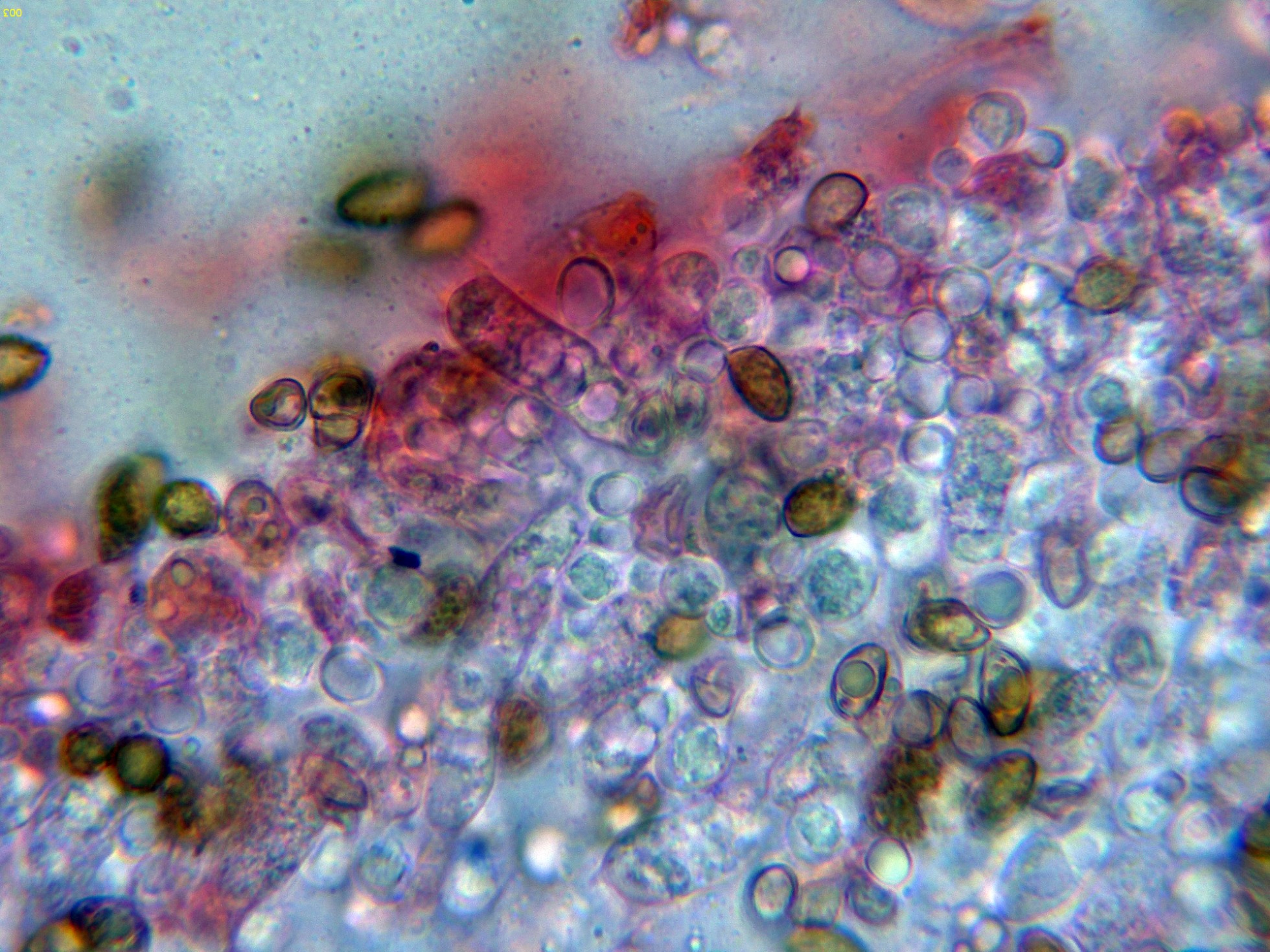 Las esporas en Reactivo de Melzer, con una reacción muy ligeramente dextrinoide, casi imperceptible: