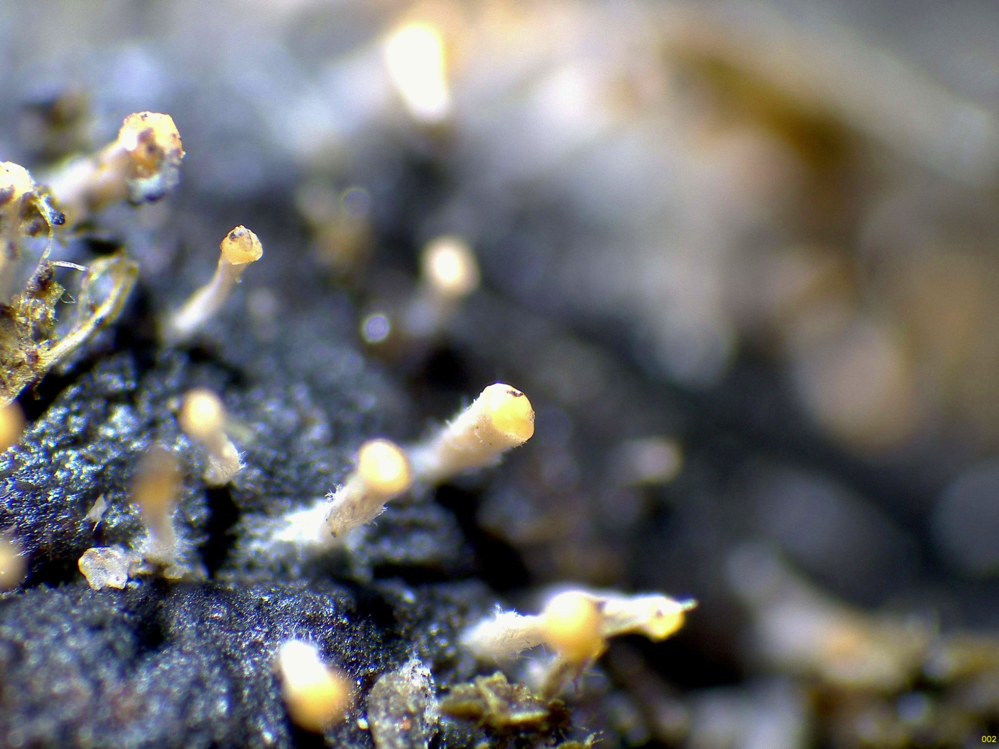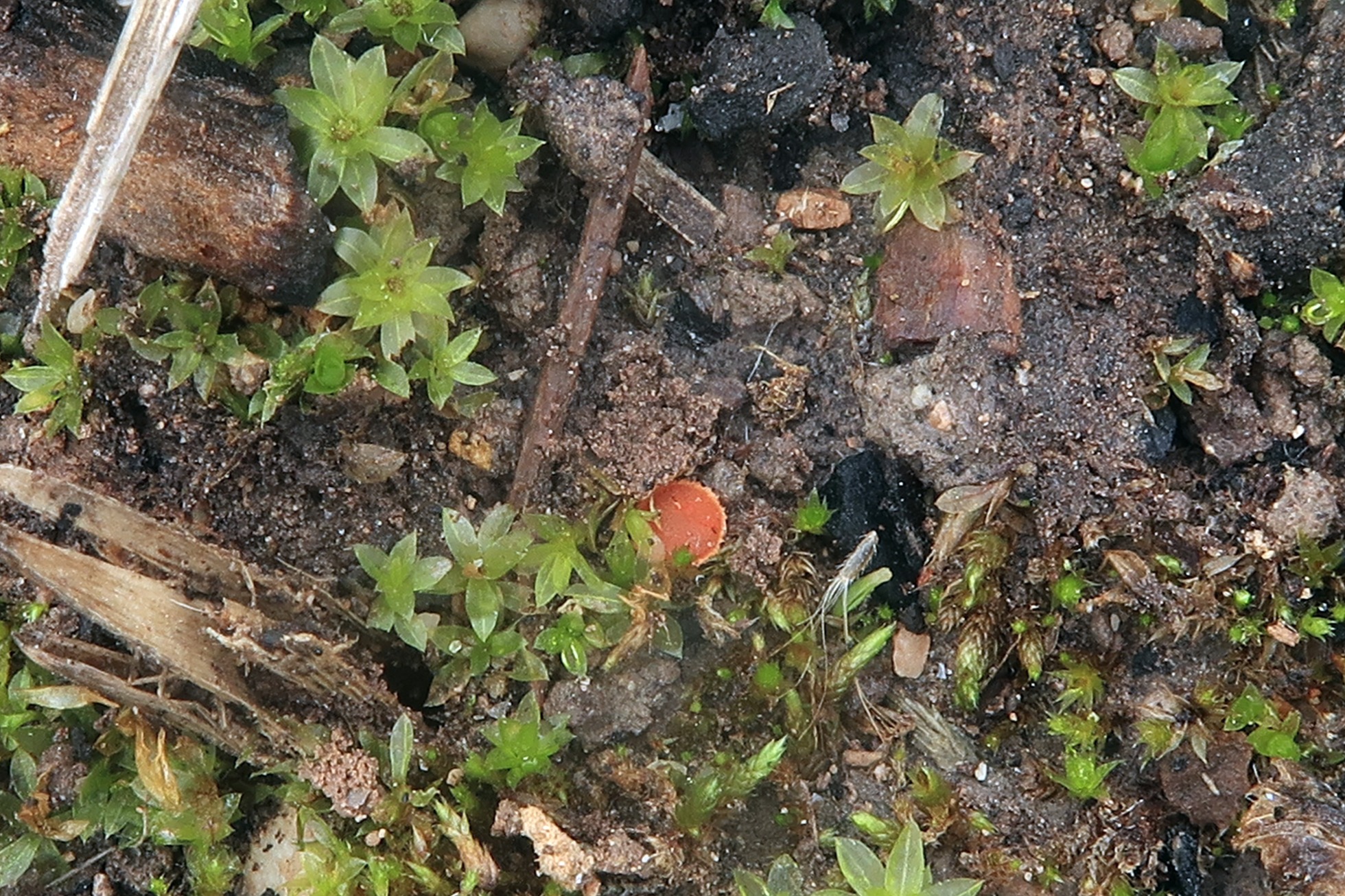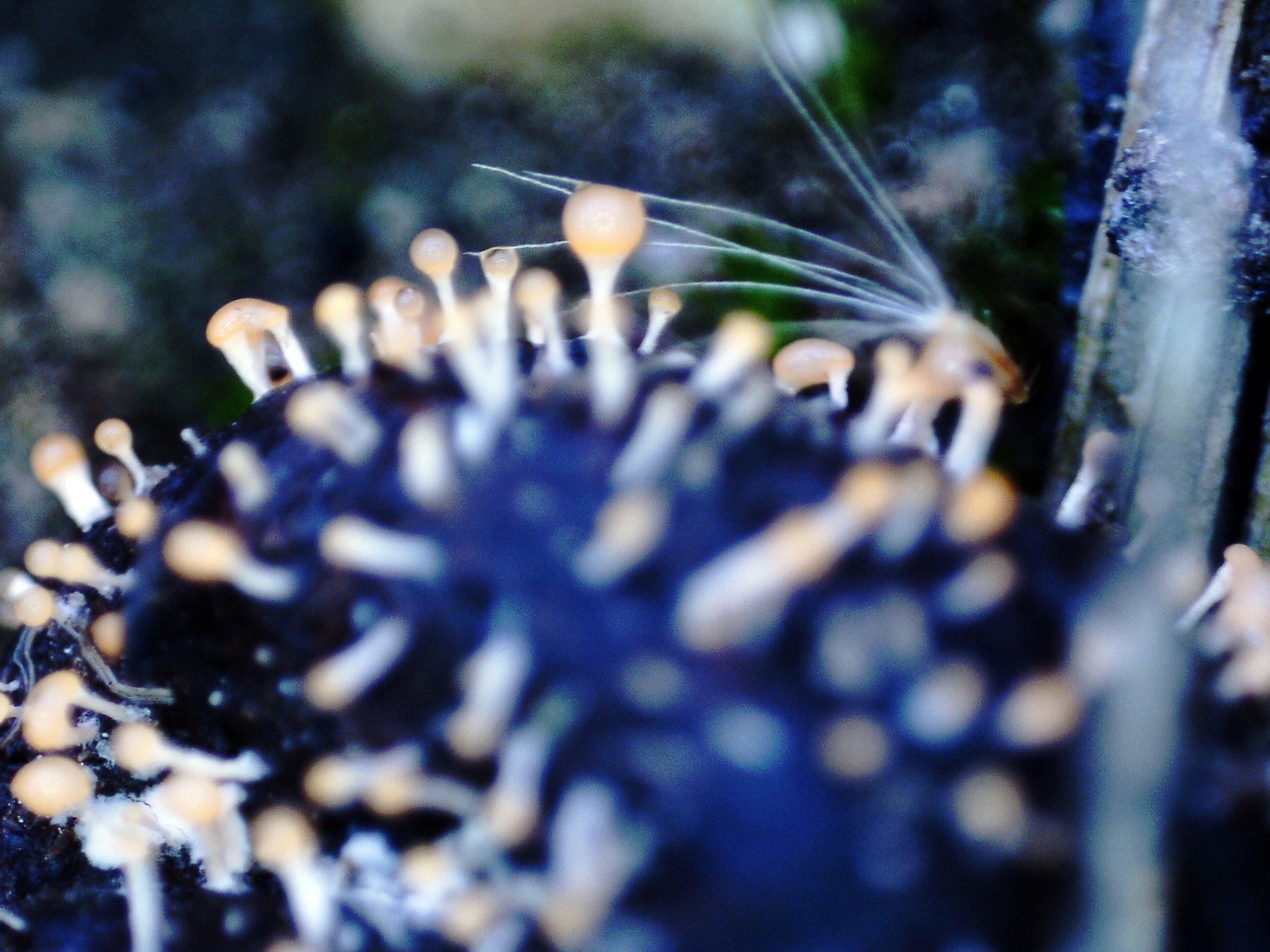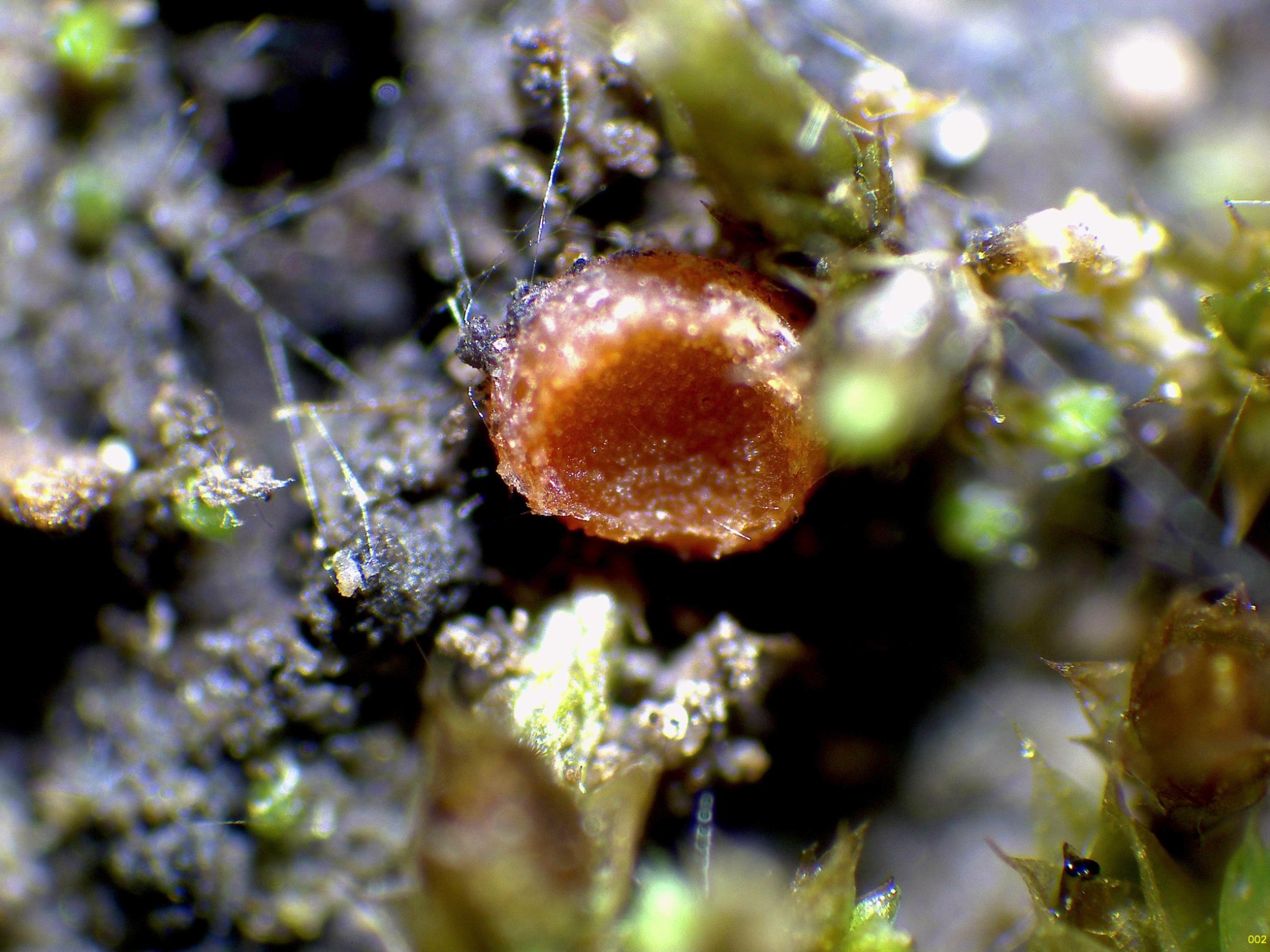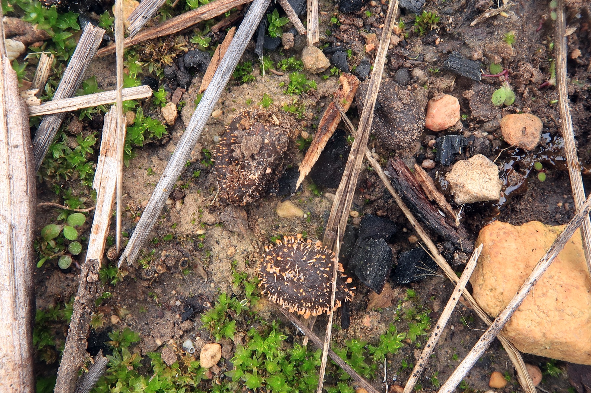 Un Ascomiceto sobre suelo quemado y parasitando briófitos de Funaria hygrometrica, la Lamprospora carbonicola.