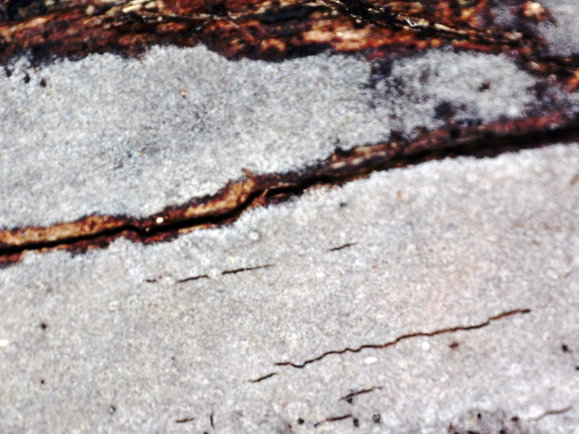 Y ya para terminar con este día, una Peniophora, también sobre tronco quemado, una de las Peniophoras que más veces me he encontrado, la Peniophora lycii.