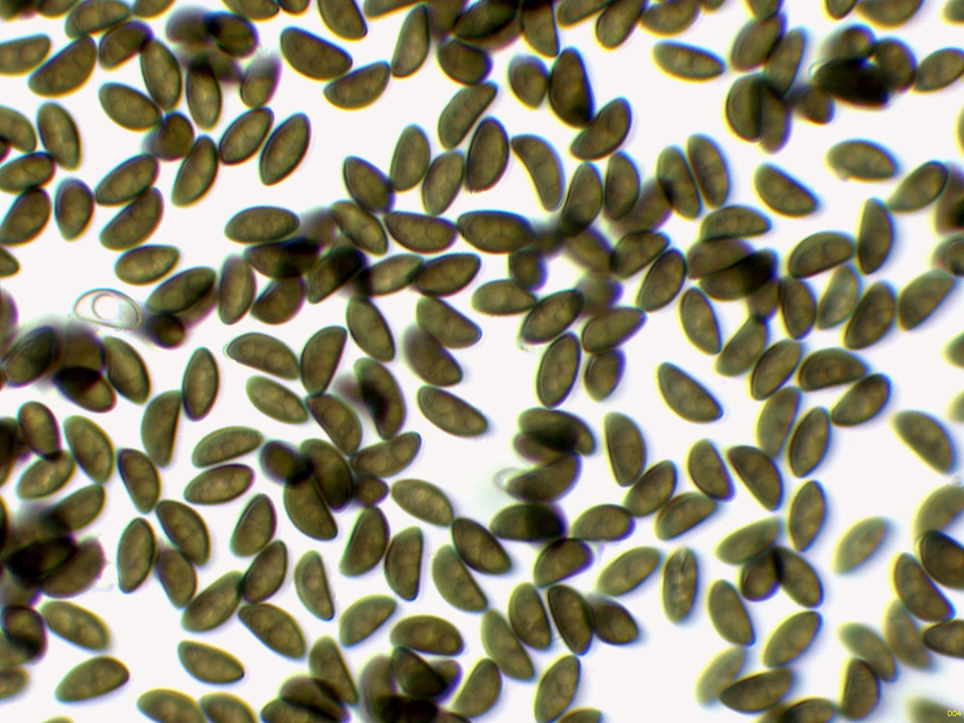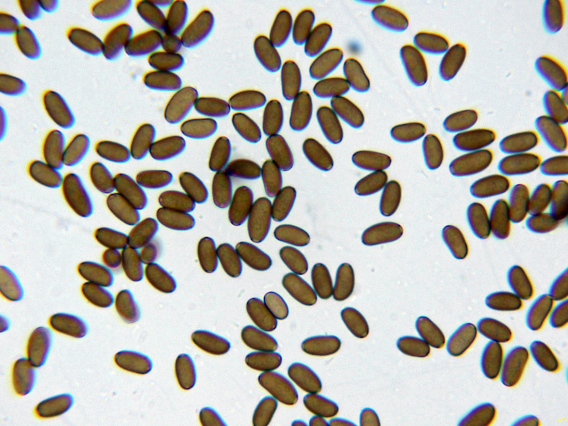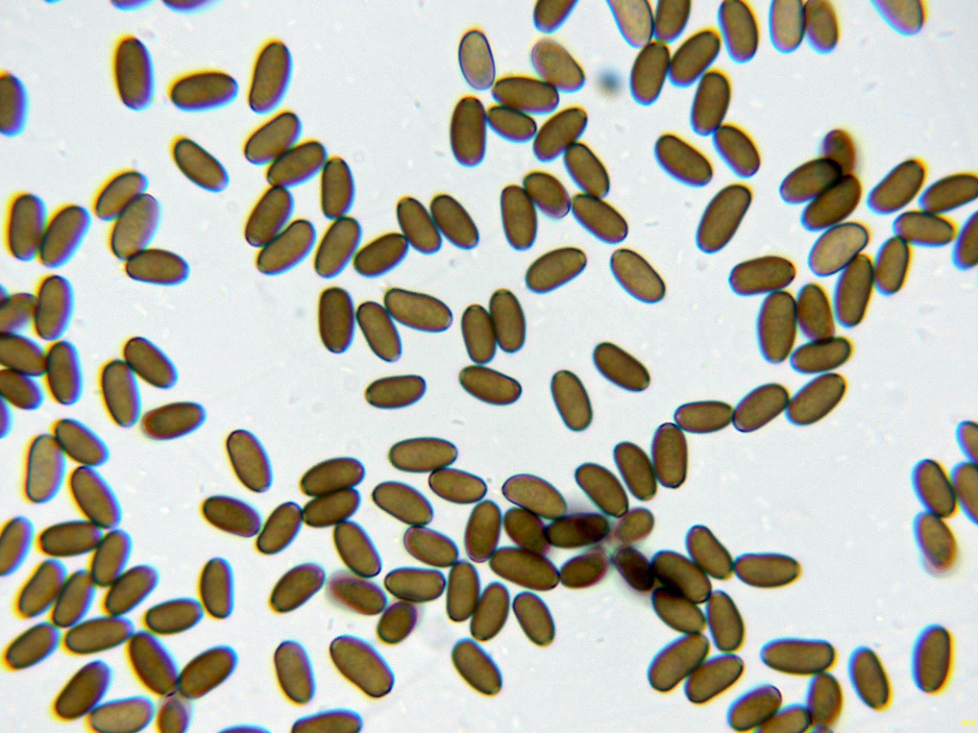 Una Psathyrella, aunque no me termina de encajar el momento de aparición, ya que se trata de una especie primaveral, todos los parámetros microscópicos apuntan a la Psathyrella spadiceogrisea: