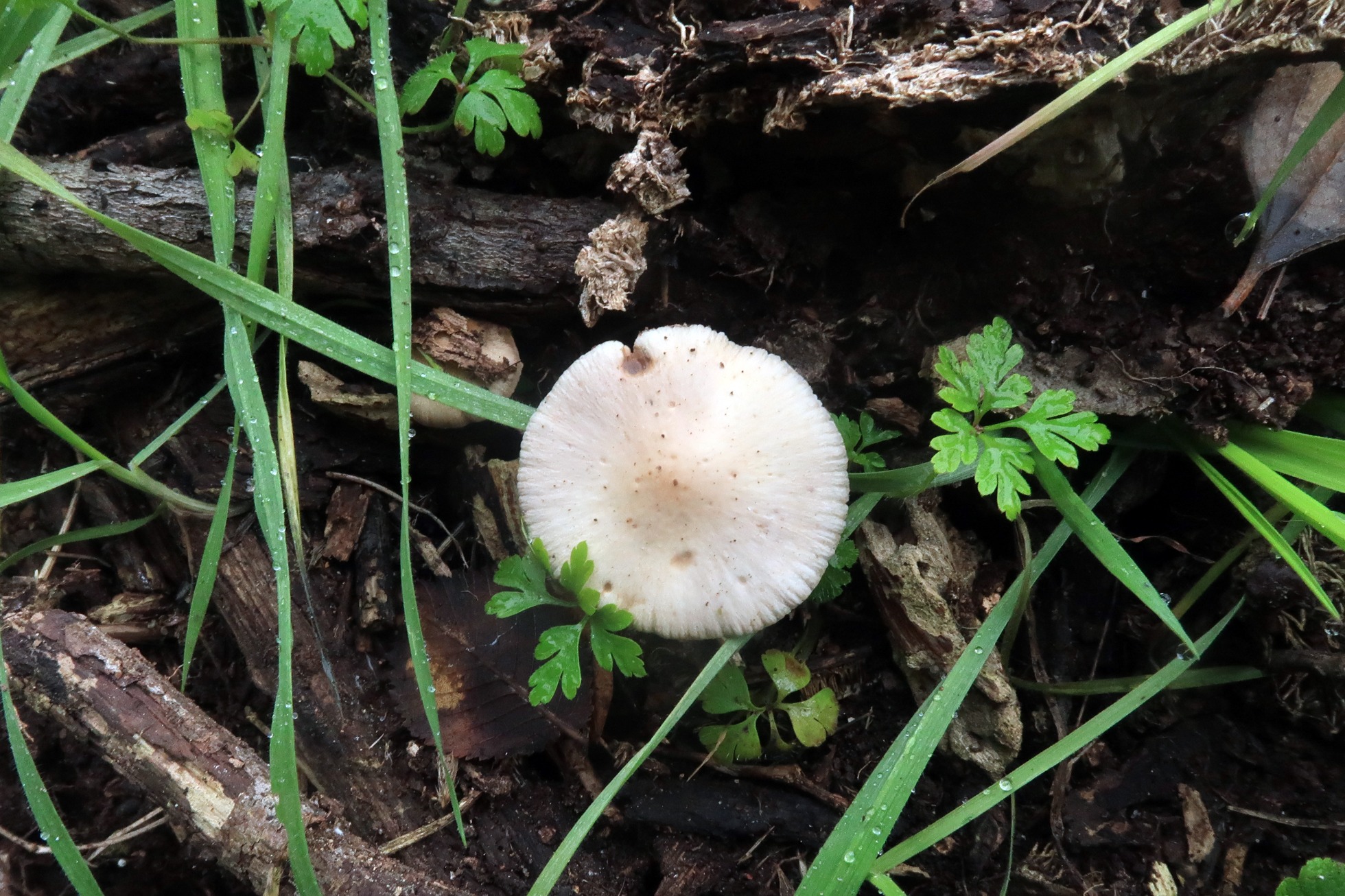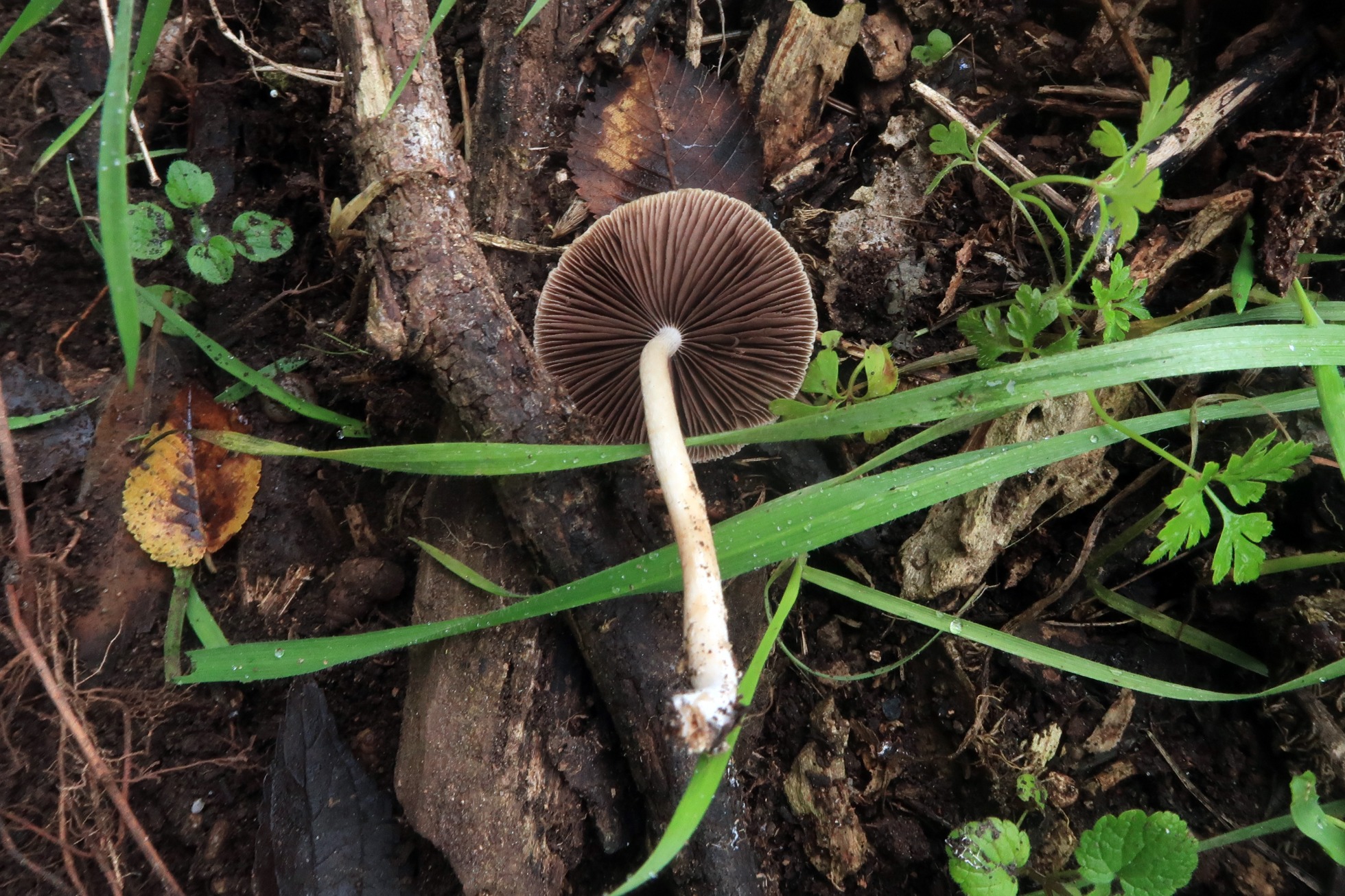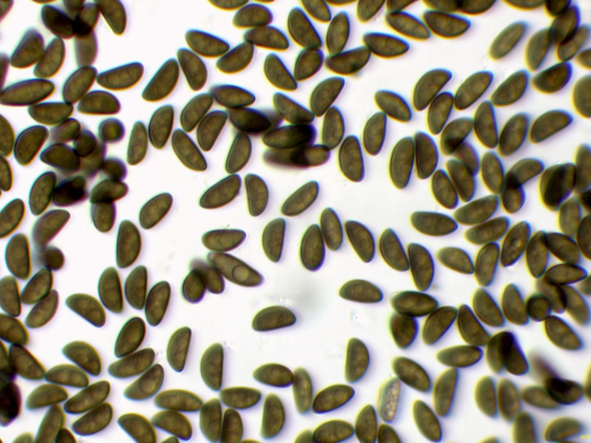 Una Psathyrella, aunque no me termina de encajar el momento de aparición, ya que se trata de una especie primaveral, todos los parámetros microscópicos apuntan a la Psathyrella spadiceogrisea: