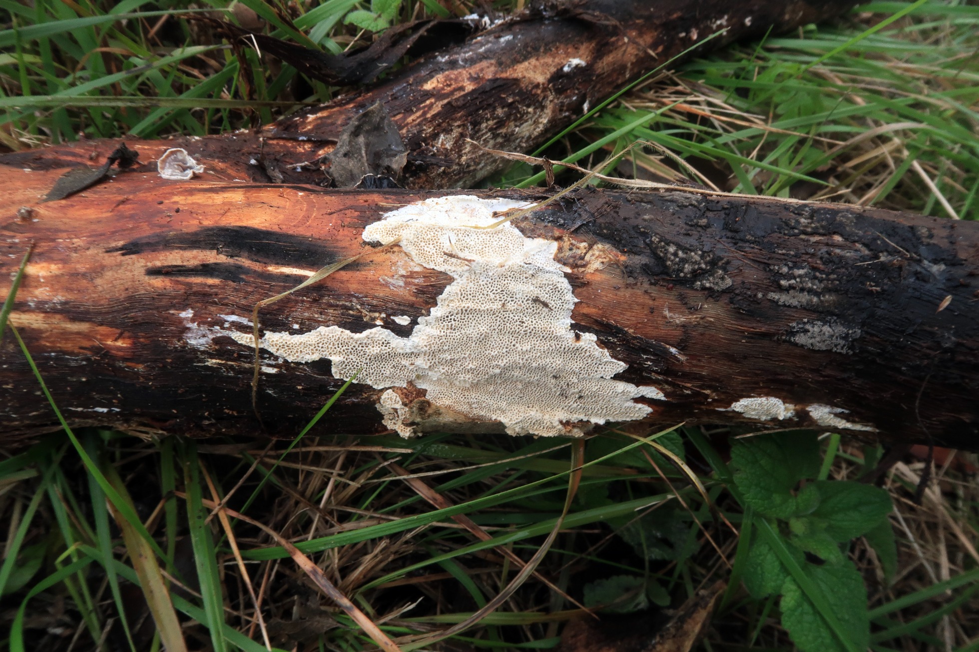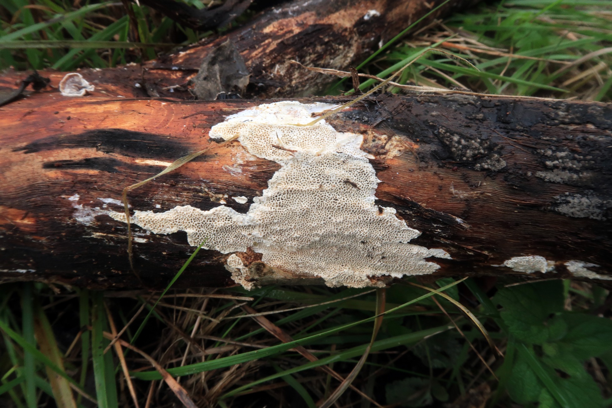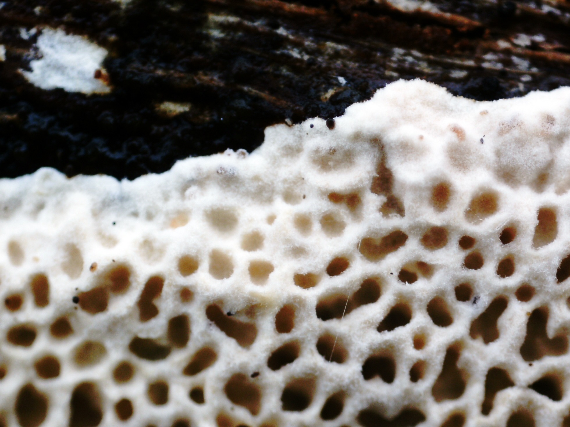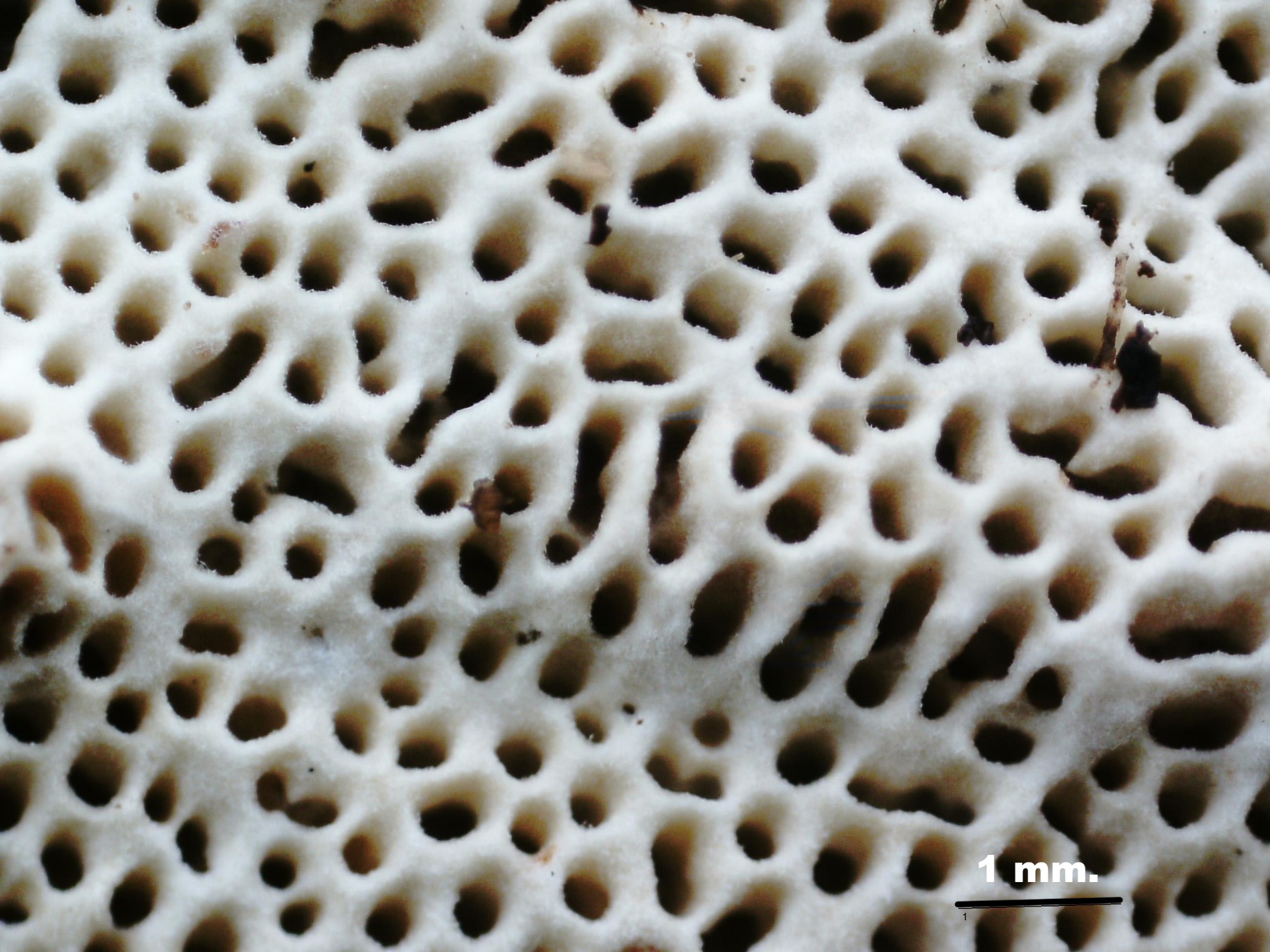 Seguimos ya con los basidiomicetos, el primero un polyporal, que siguiendo escrupulosamente las Claves del monográfico de Ryvarden, me conducen a la Antrodia macra :