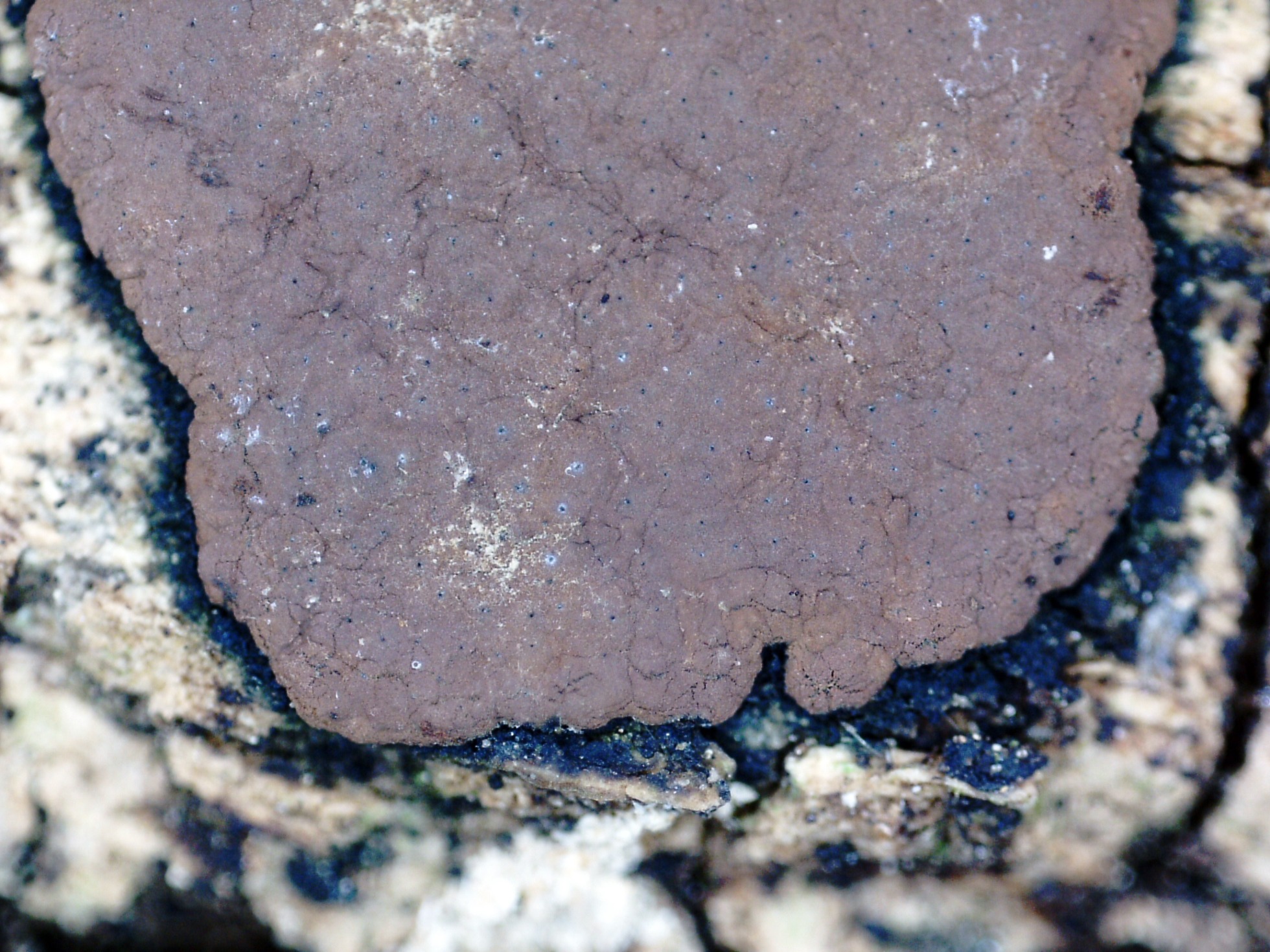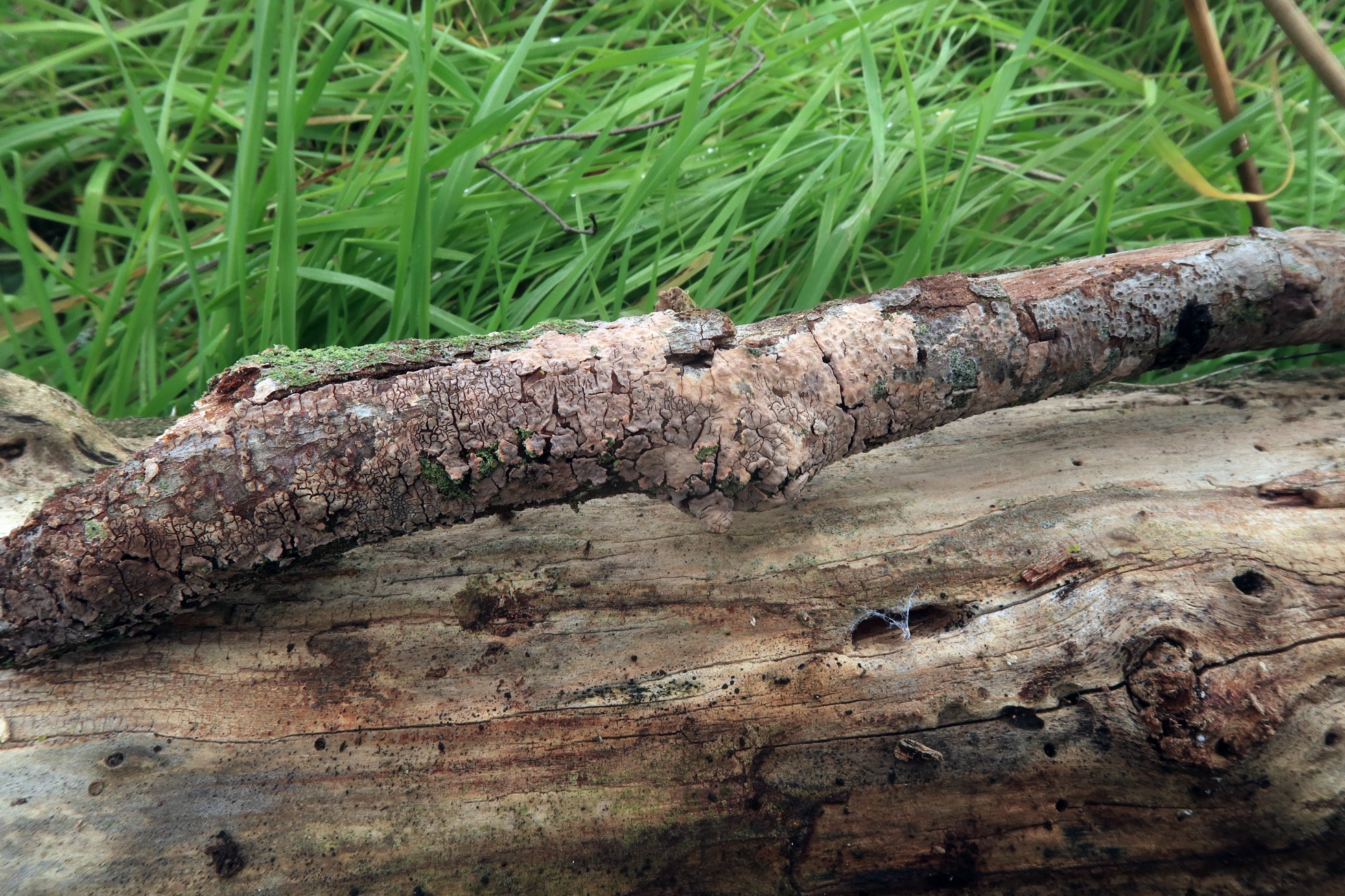 Una Peniophora, aunque no pude observar sus característicos lamprocistidios, todos los demás elementos microscópicos apuntan a la Peniophora quercina, ante la duda lo dejo en mis archivos abierto como Peniophora cf. quercina: