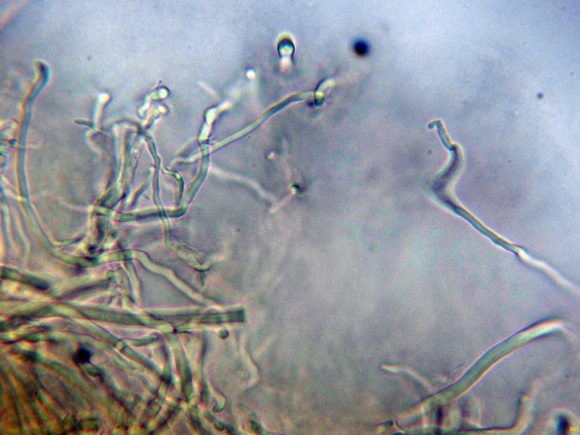 Las hifas del estípite, sin caulocistidios observados: