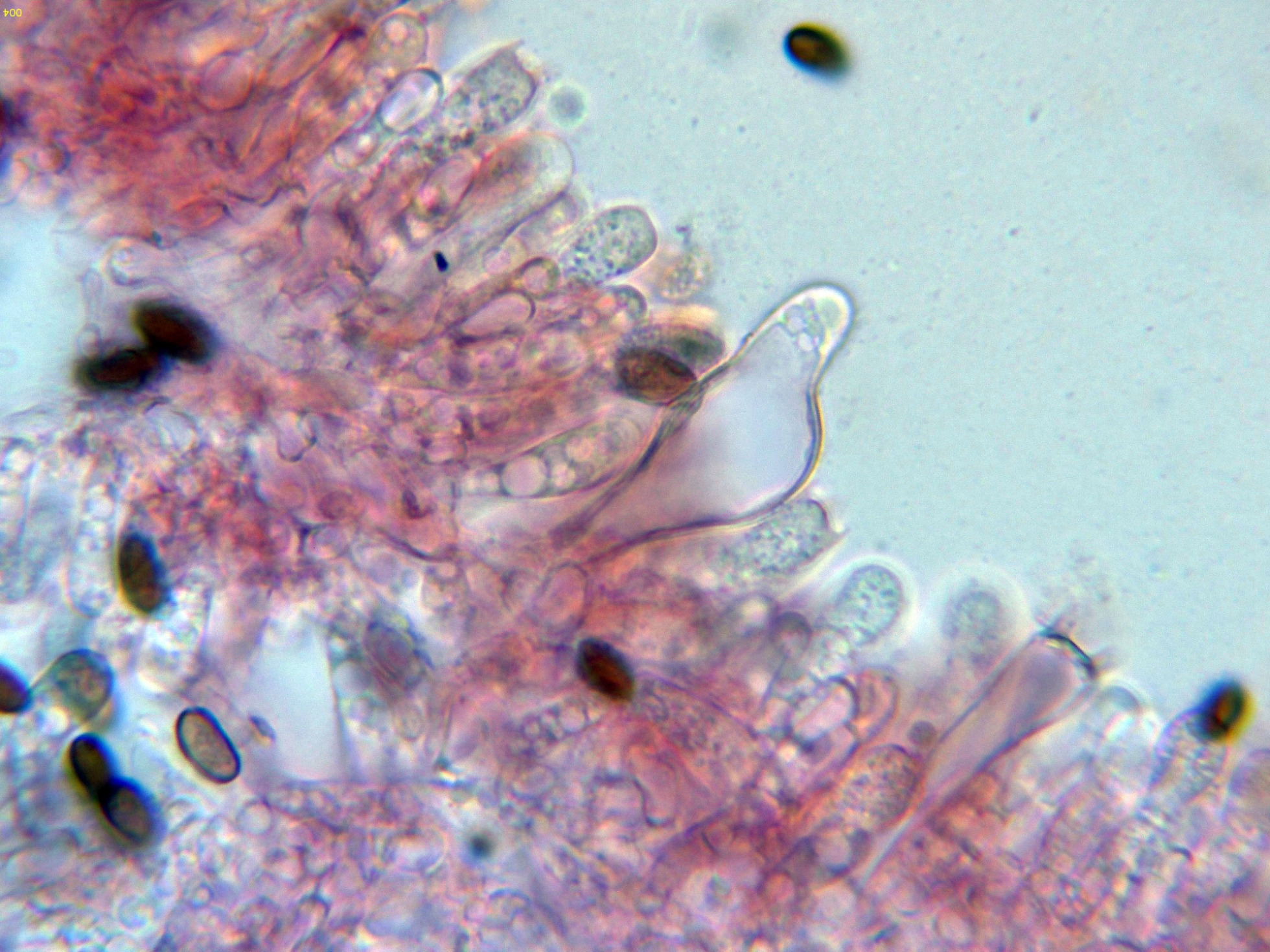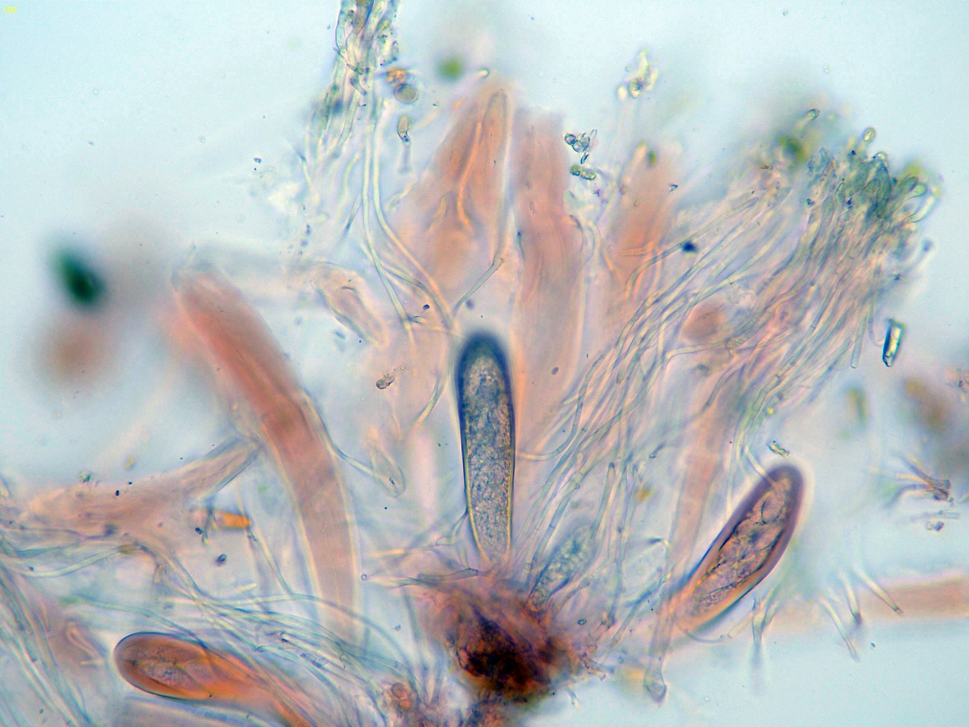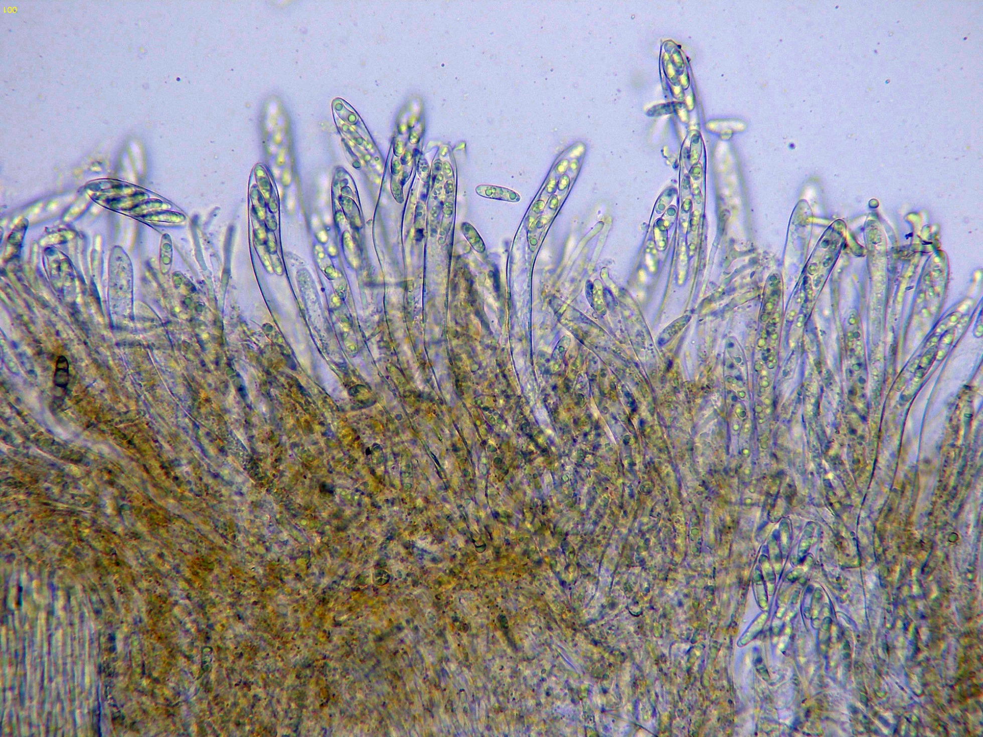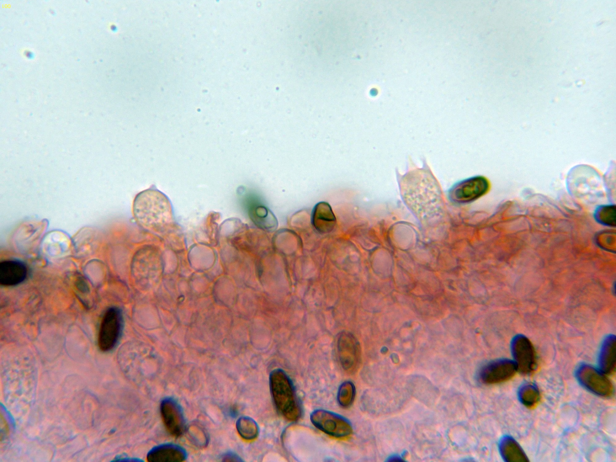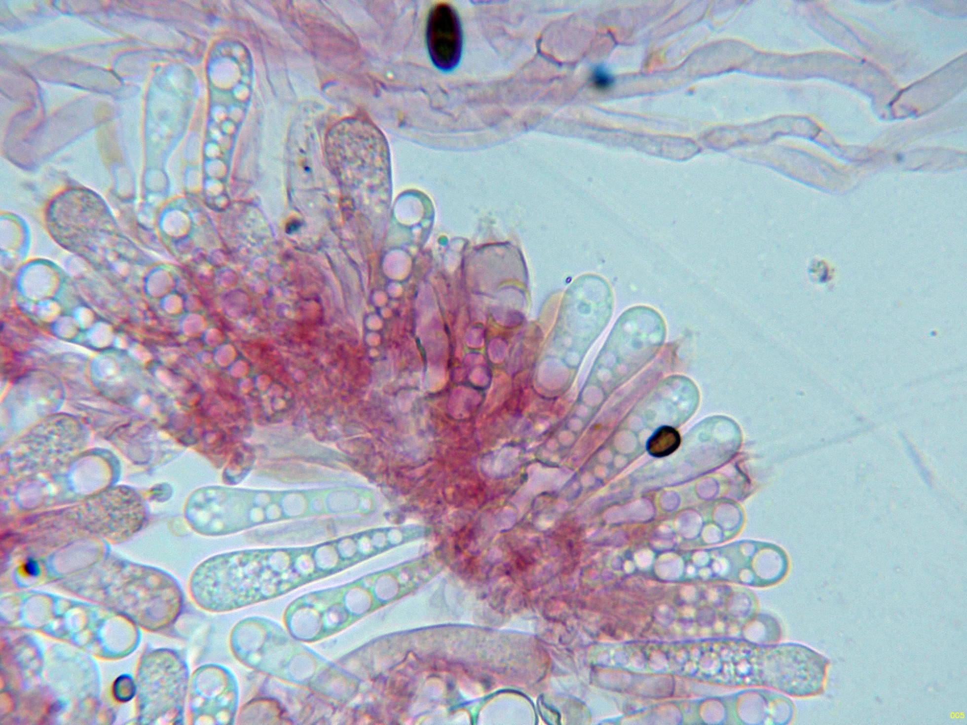 Los ascos en reactivo de Melzer, aunque debería presentar una reacción amiloide del aparato apical (no observada en este estudio), las Claves del género indican ya que en muchos casos esta reacción no sería evidente.