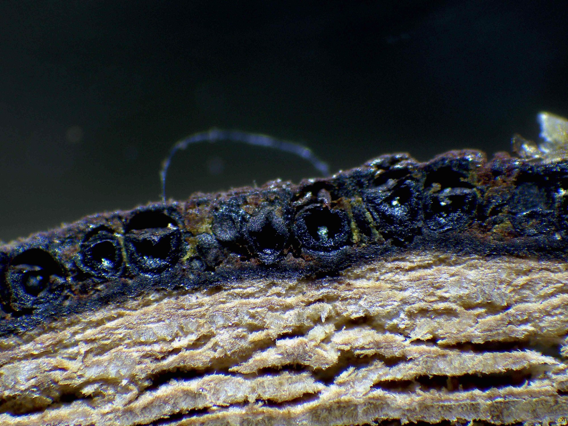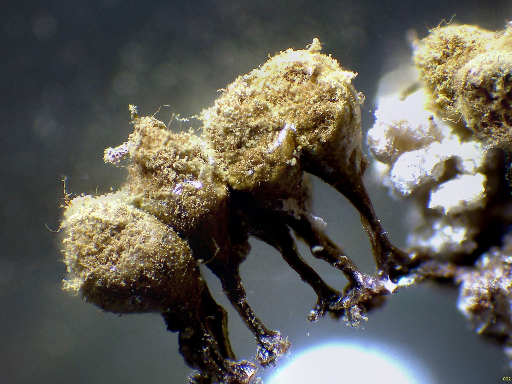 Un fusionado en visión lateral de los esporocarpos a 40 aumentos: