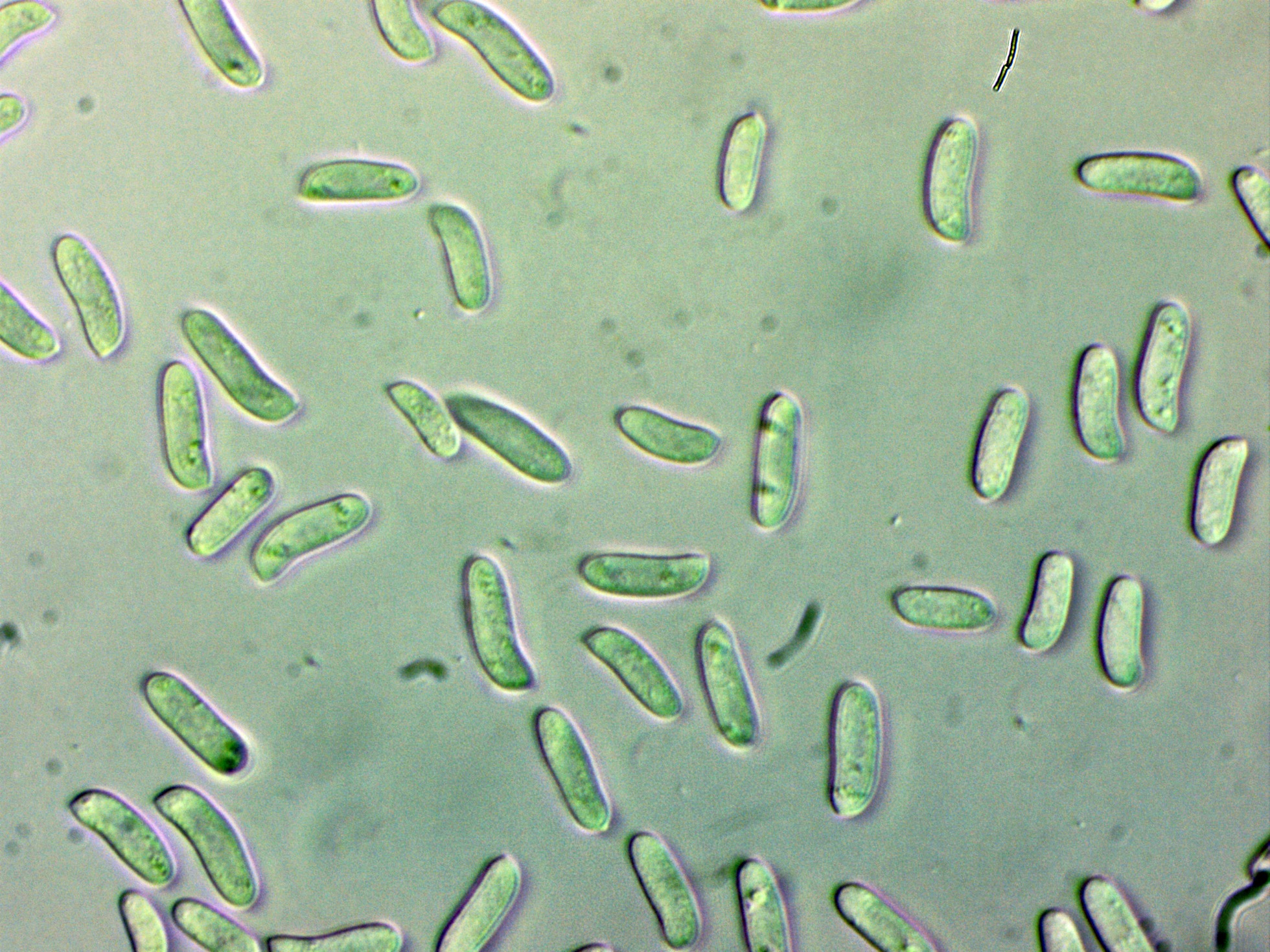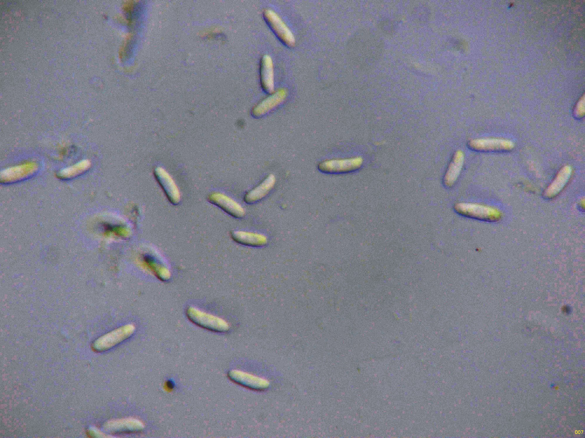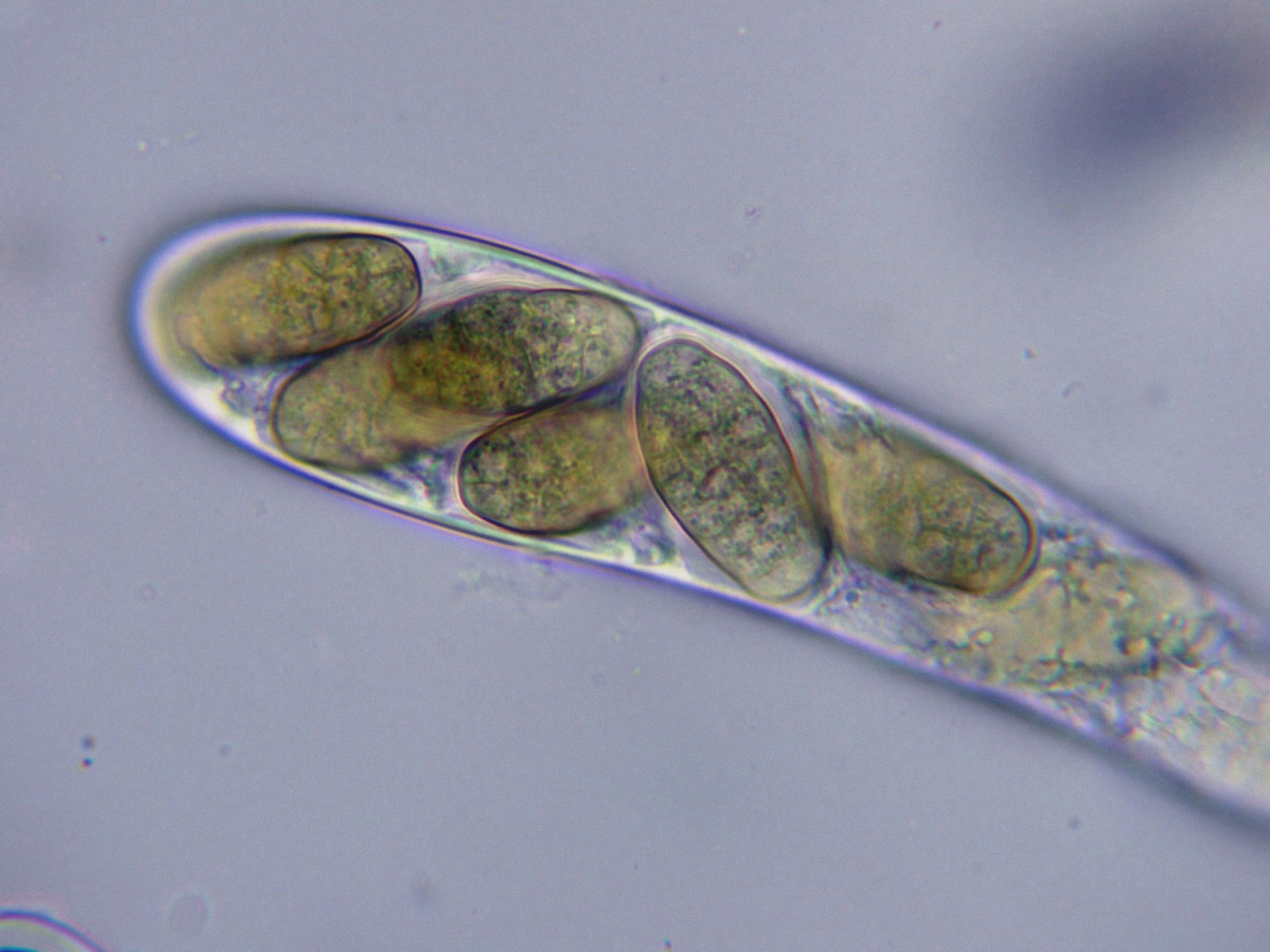 No conseguí obtener esporas por medio de la esporulación natural, por lo que me tuve que conformar con medir las esporas maduras dentro del asco, estas esporas maduras con unas medidas de: