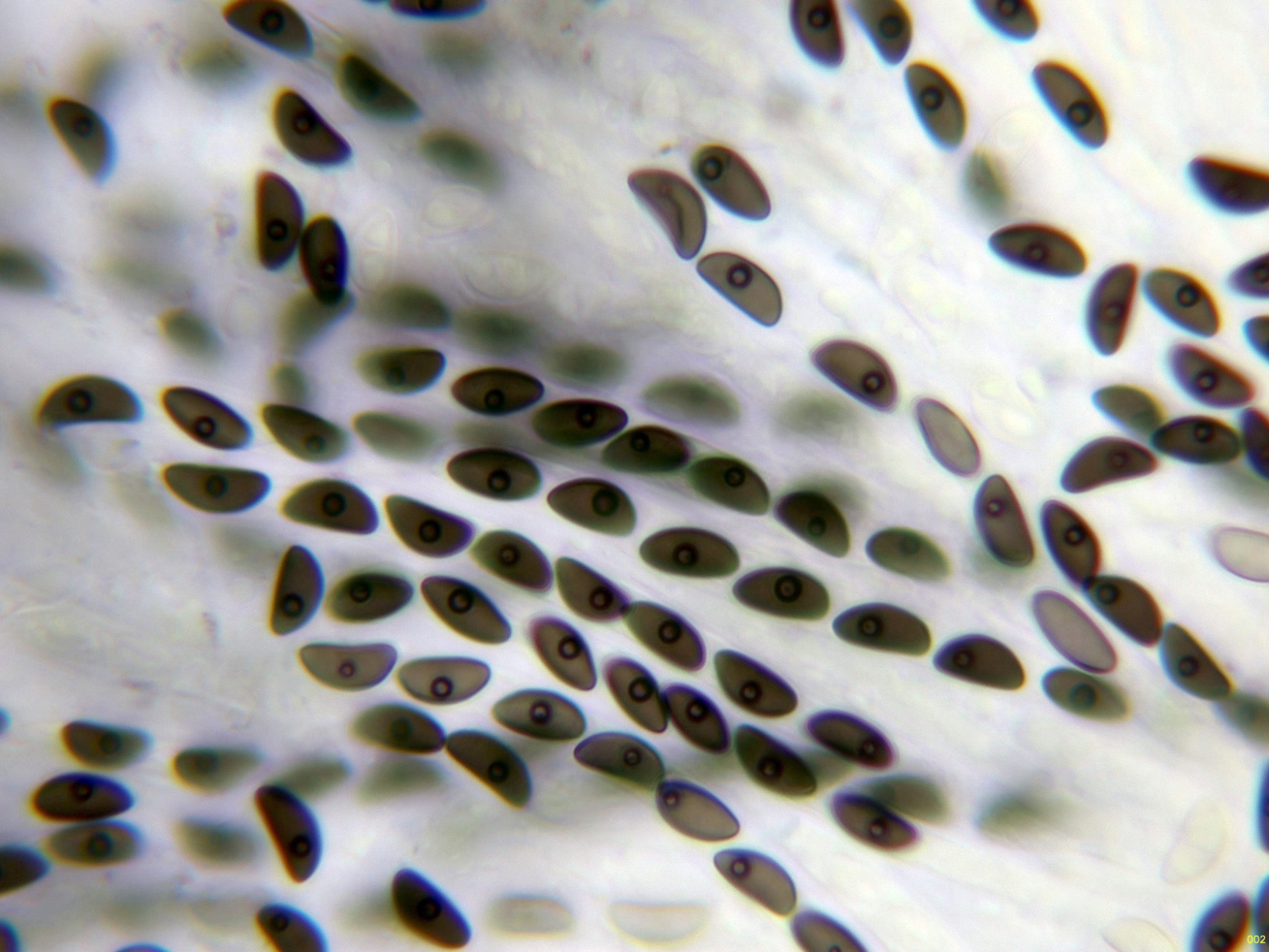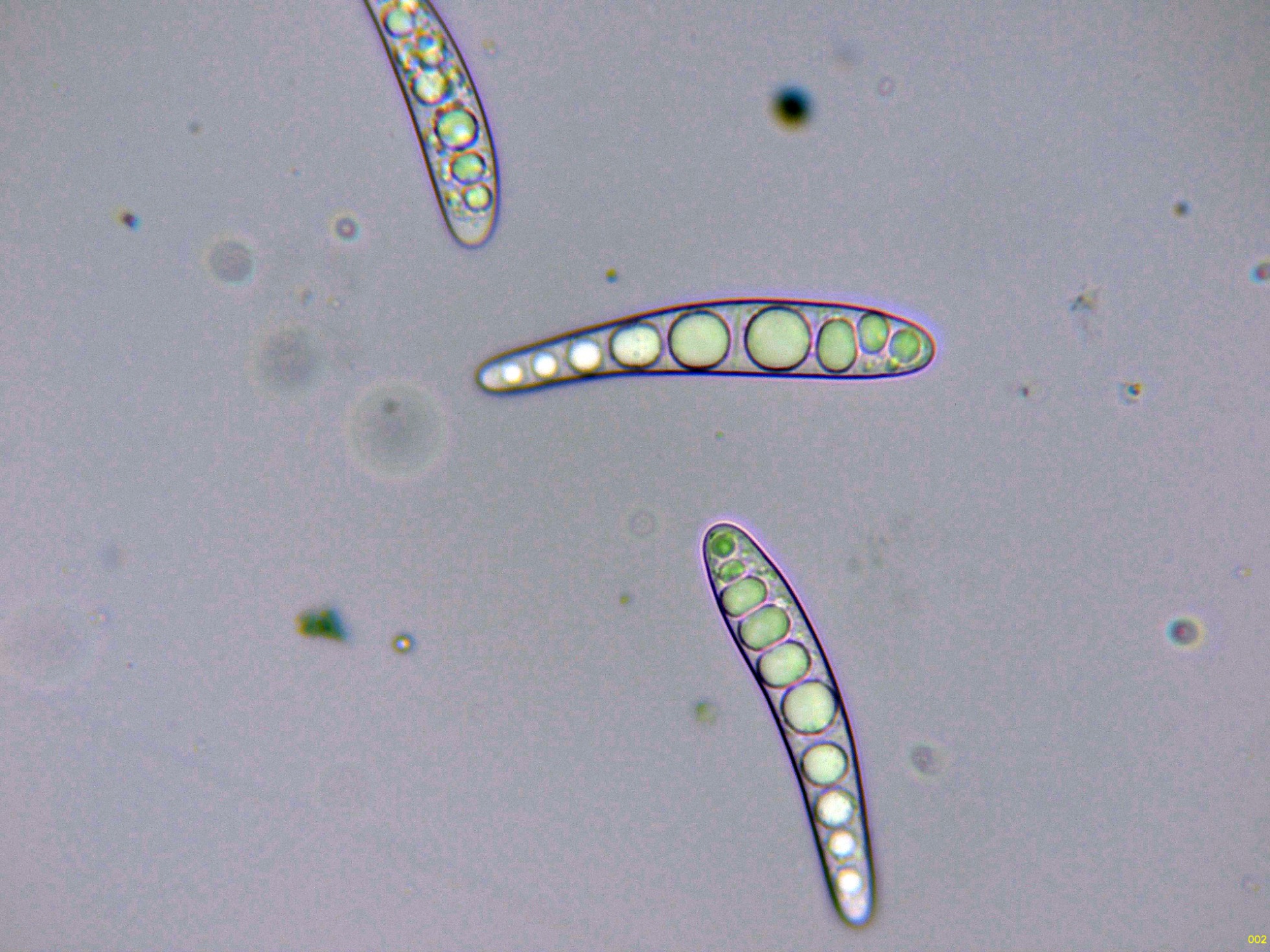 Los ascos en reactivo de Melzer, sin ninguna reacción aparente del aparato apical.
