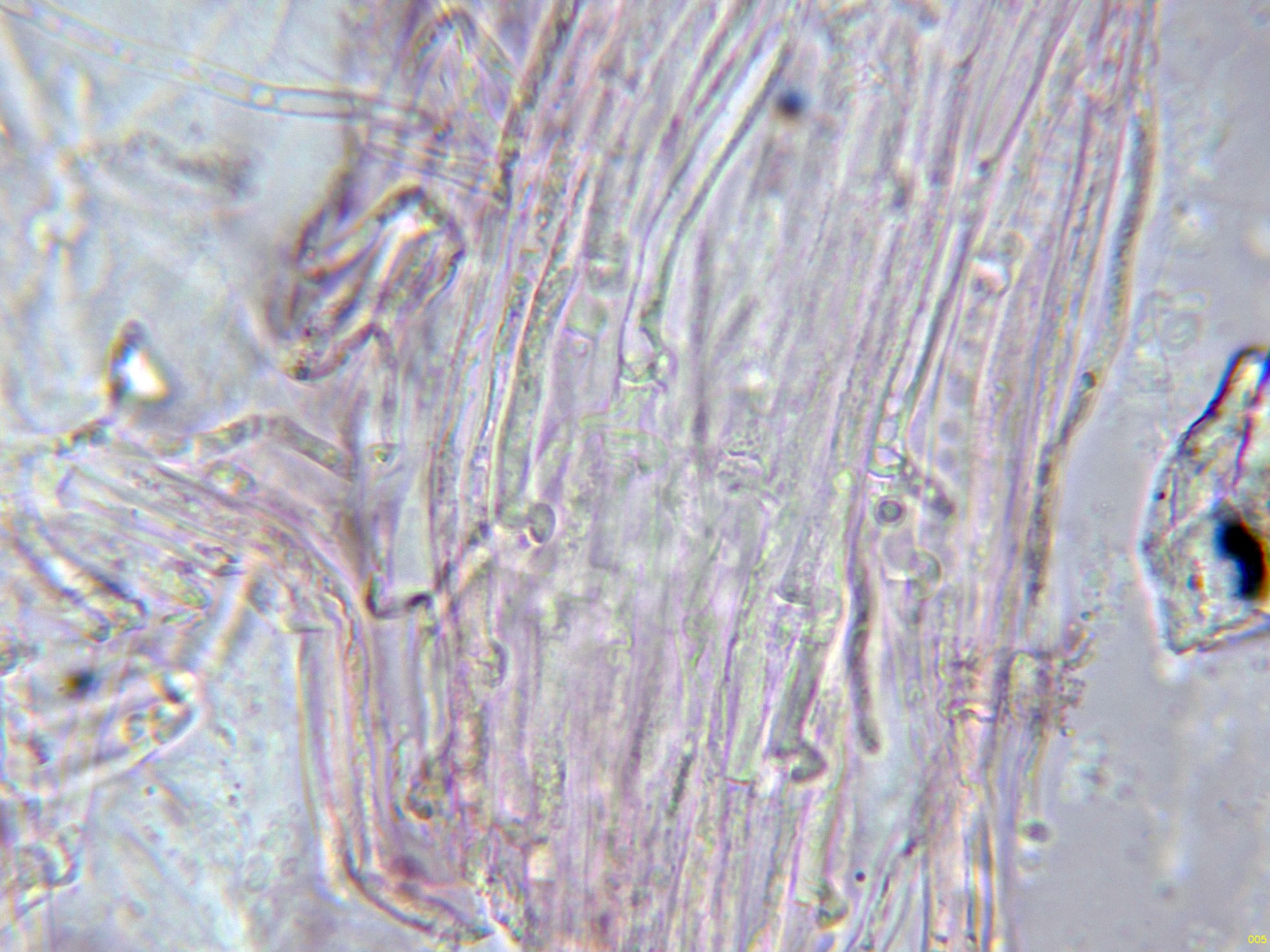 Las hifas del pileo que se corresponden a un sistema hifal dimítico con las hifas generativas fibuladas:
