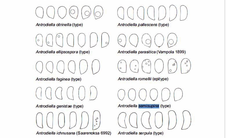 Añado una captura de imágen del trabajo de Ryvarden con un dibujo de la morfología esporal de la Antrodiella semisupina: