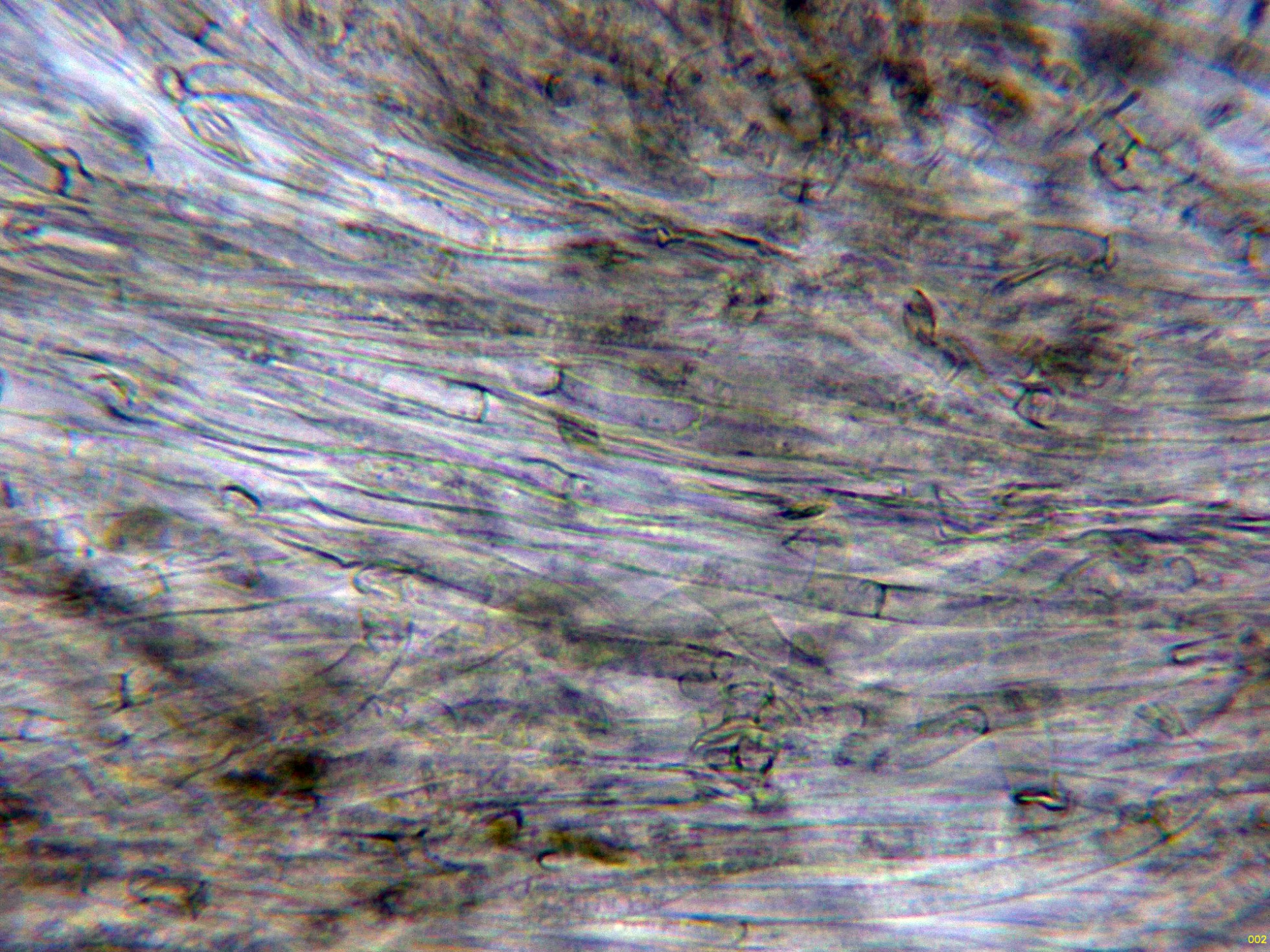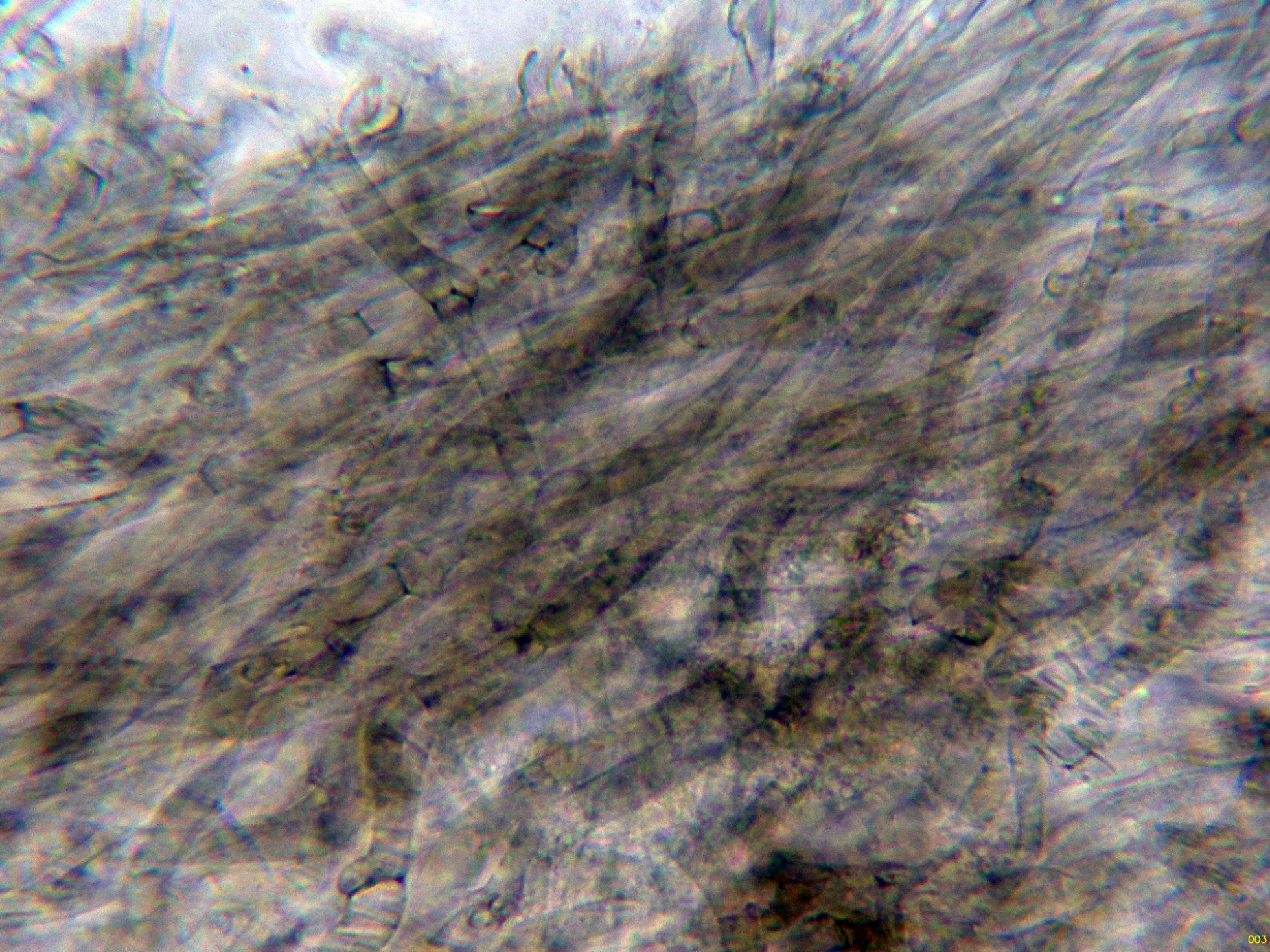 Suprapellis filamentosa, con hifas entrelazadas, con fíbulas y provistas de pigmento incrustante.